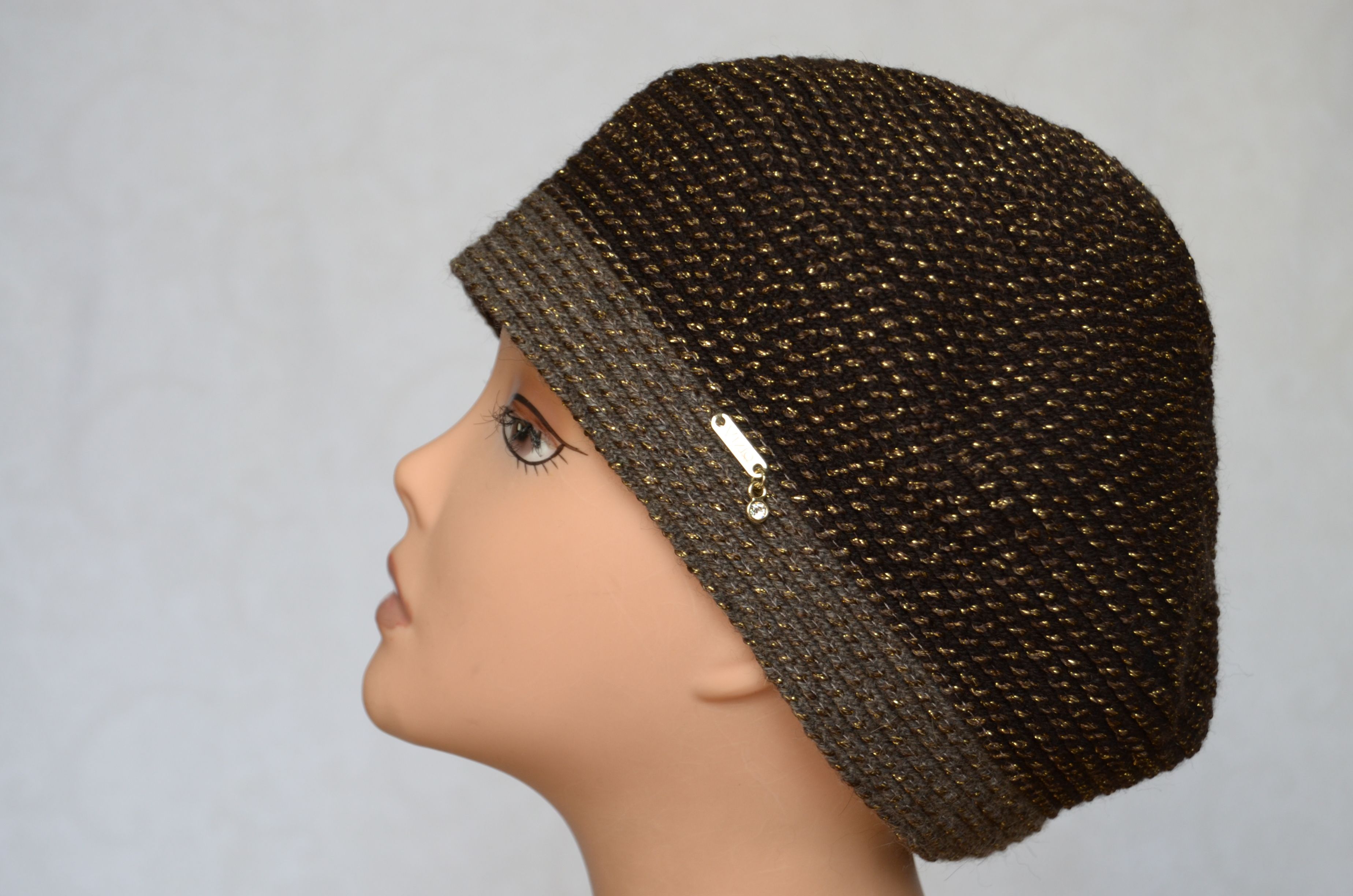 Тюбетейка вязаная для женщин Италия Vizio 6318 коричневая шапка в виде тюбетеки купить в интернет магазине головных уборов для женщин