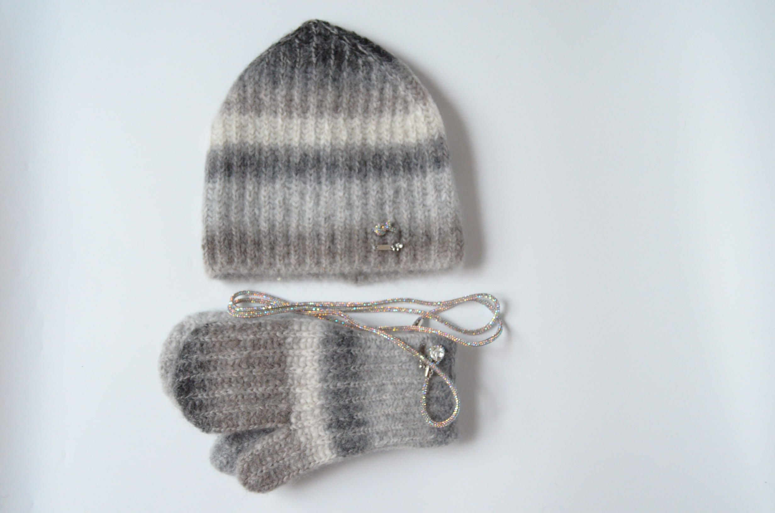 Варежки вязаные женские из мохера и альпака с украшением