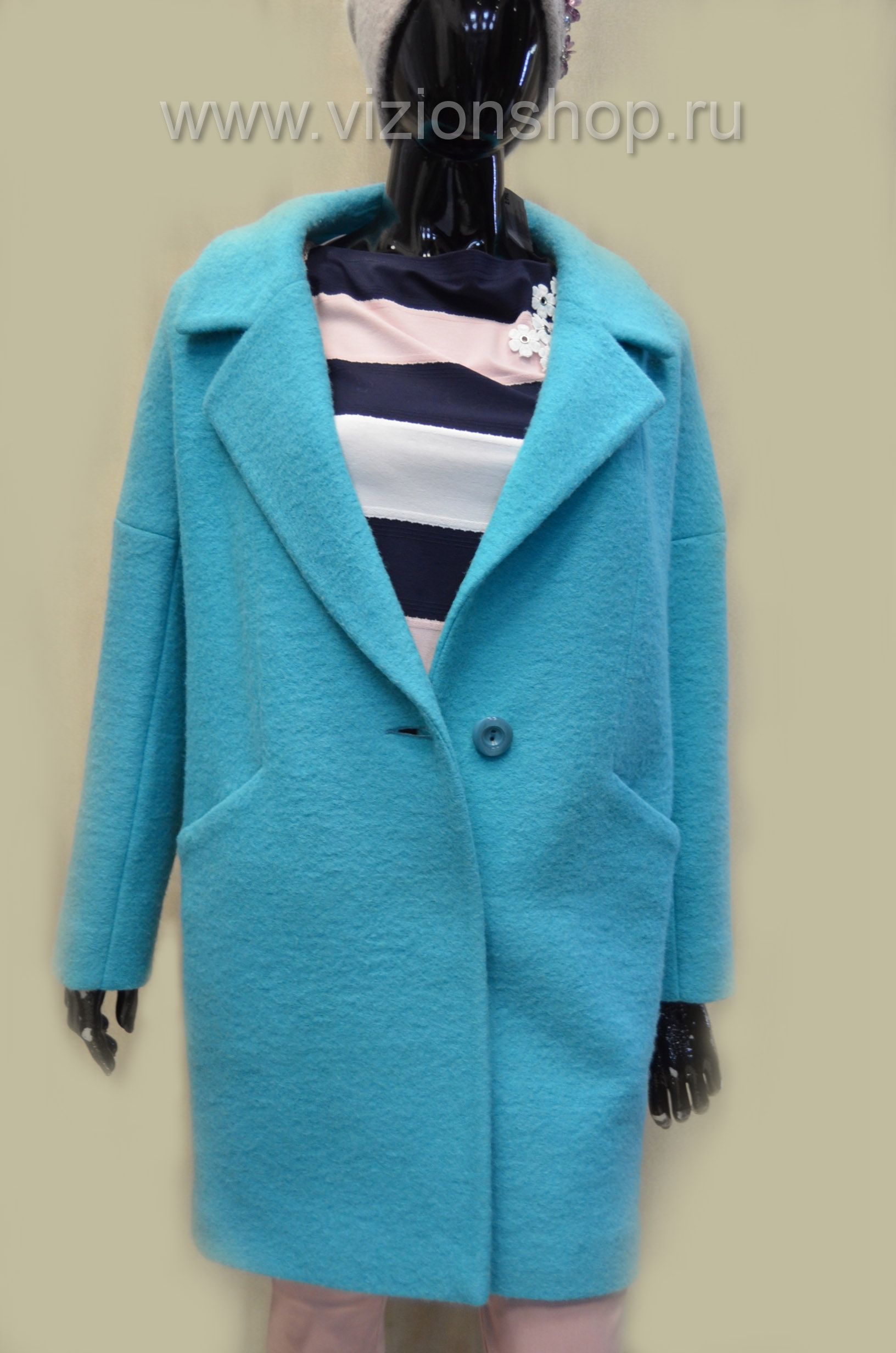 Весеннее пальто Арти Мода Пенза Arti Moda 1534 бирюзового цвета в магазине российского пальто в Москве