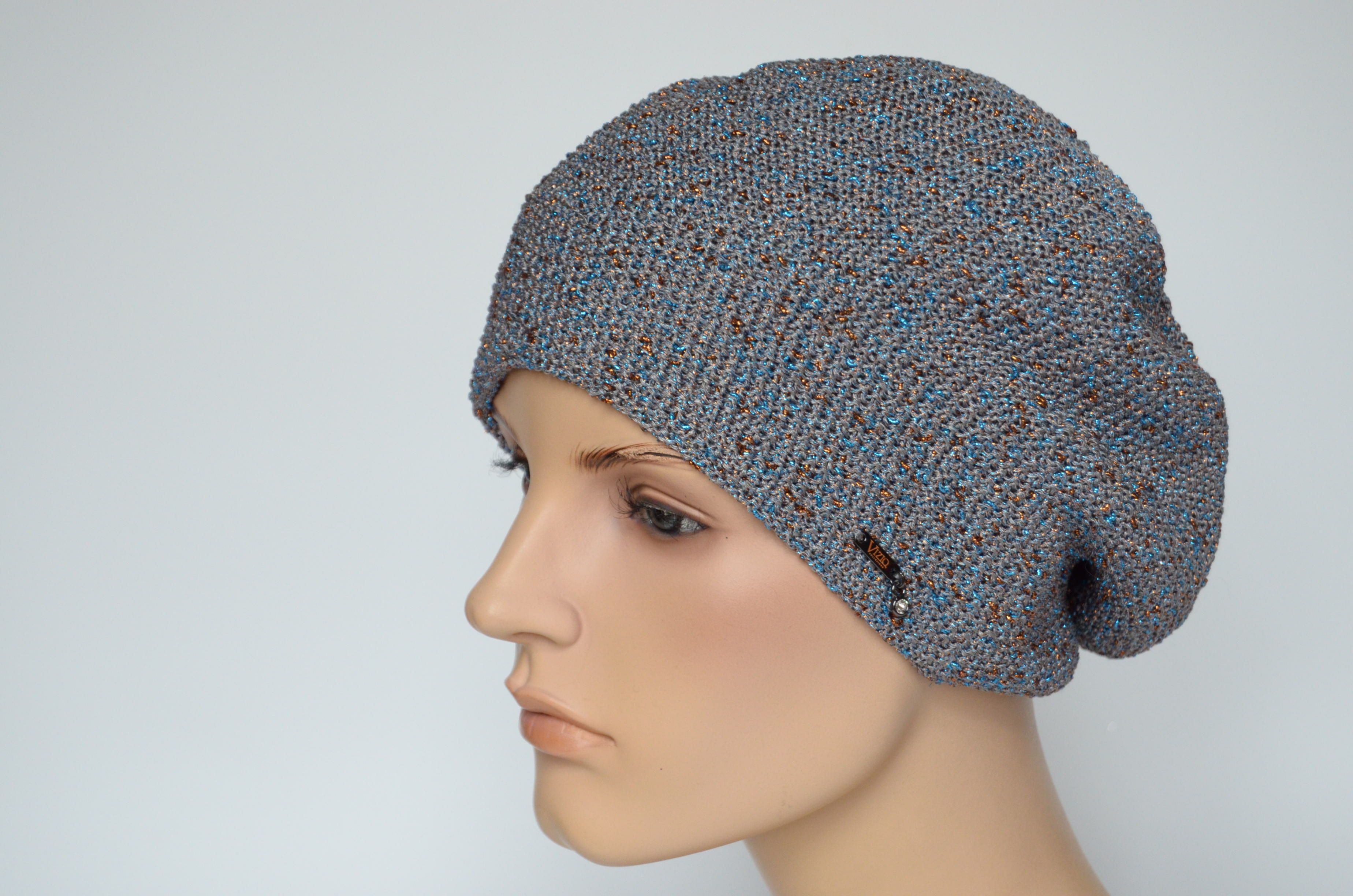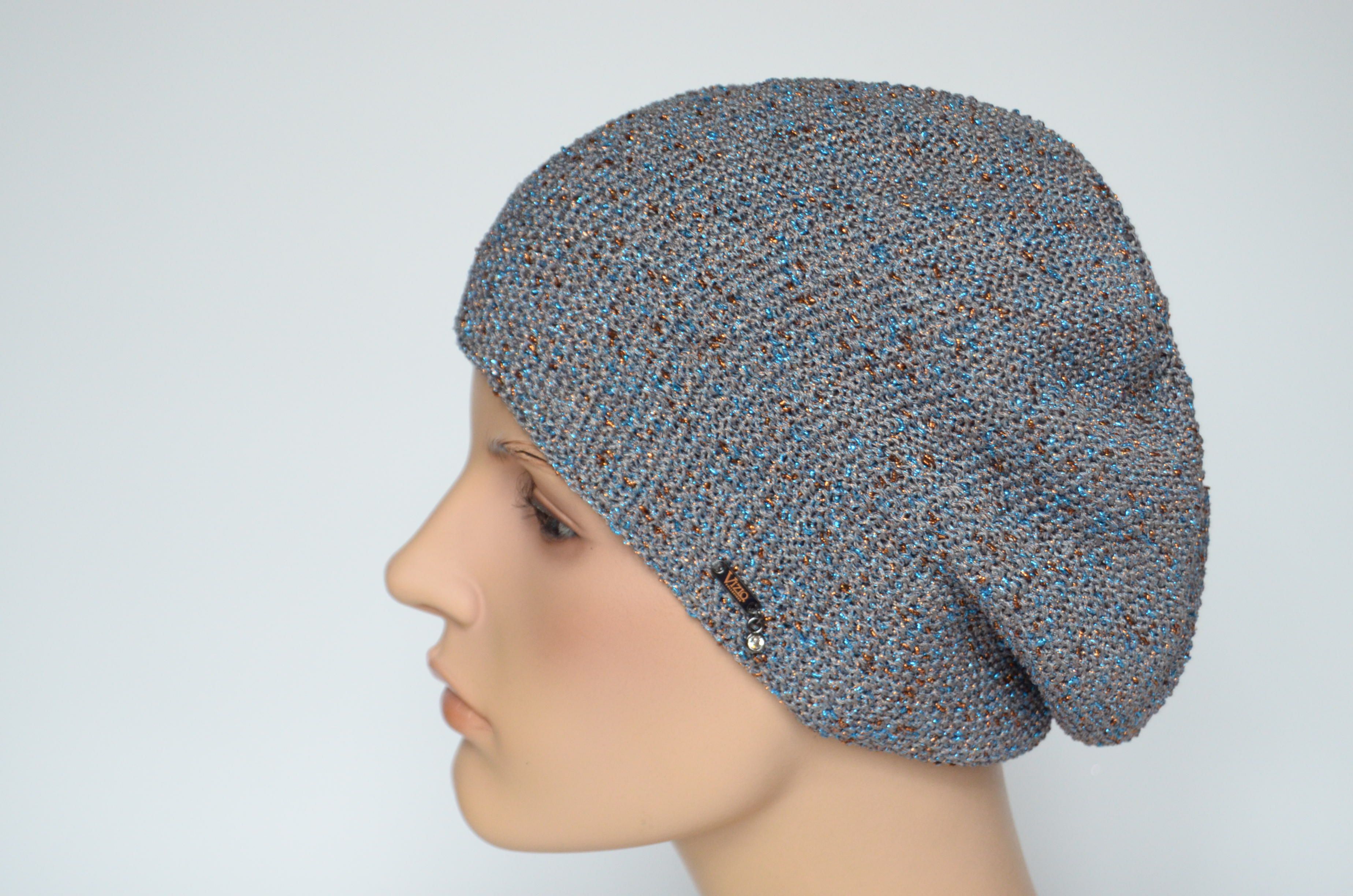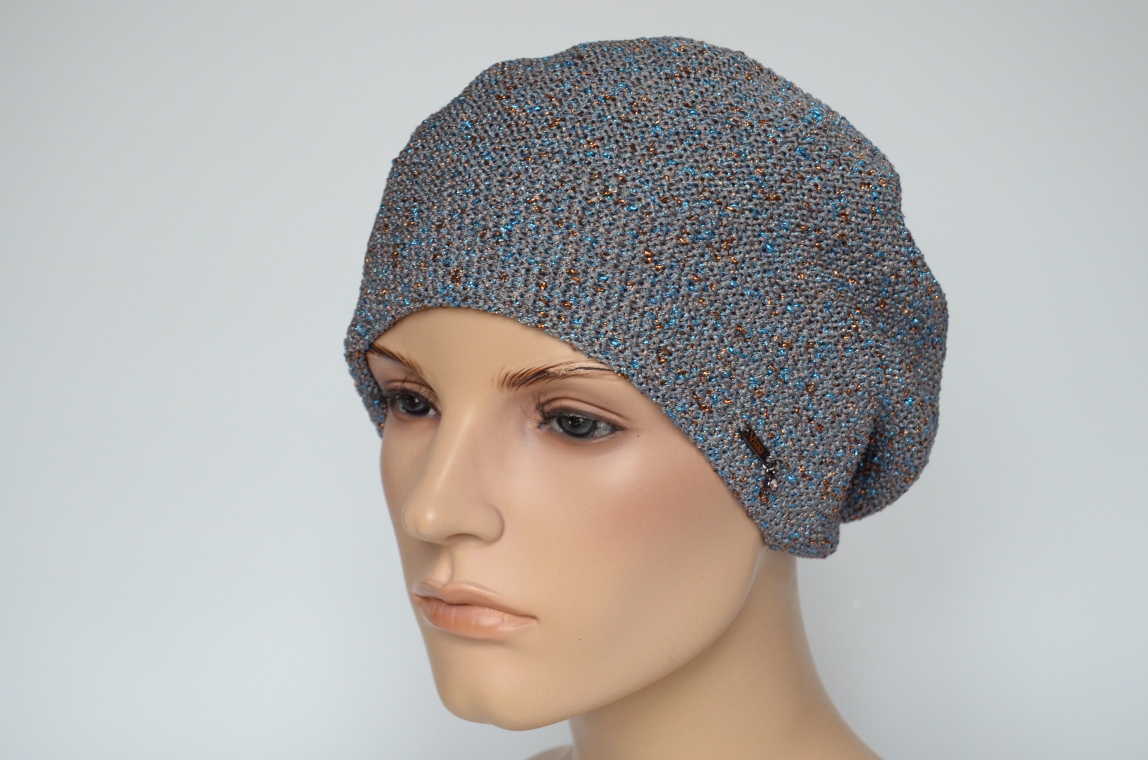 Итальянский женский берет весна - осень Vizio Италия 7085 В серый с голубым купить в магазине модных головных уборов для женщин в Москве или с доставкой по России