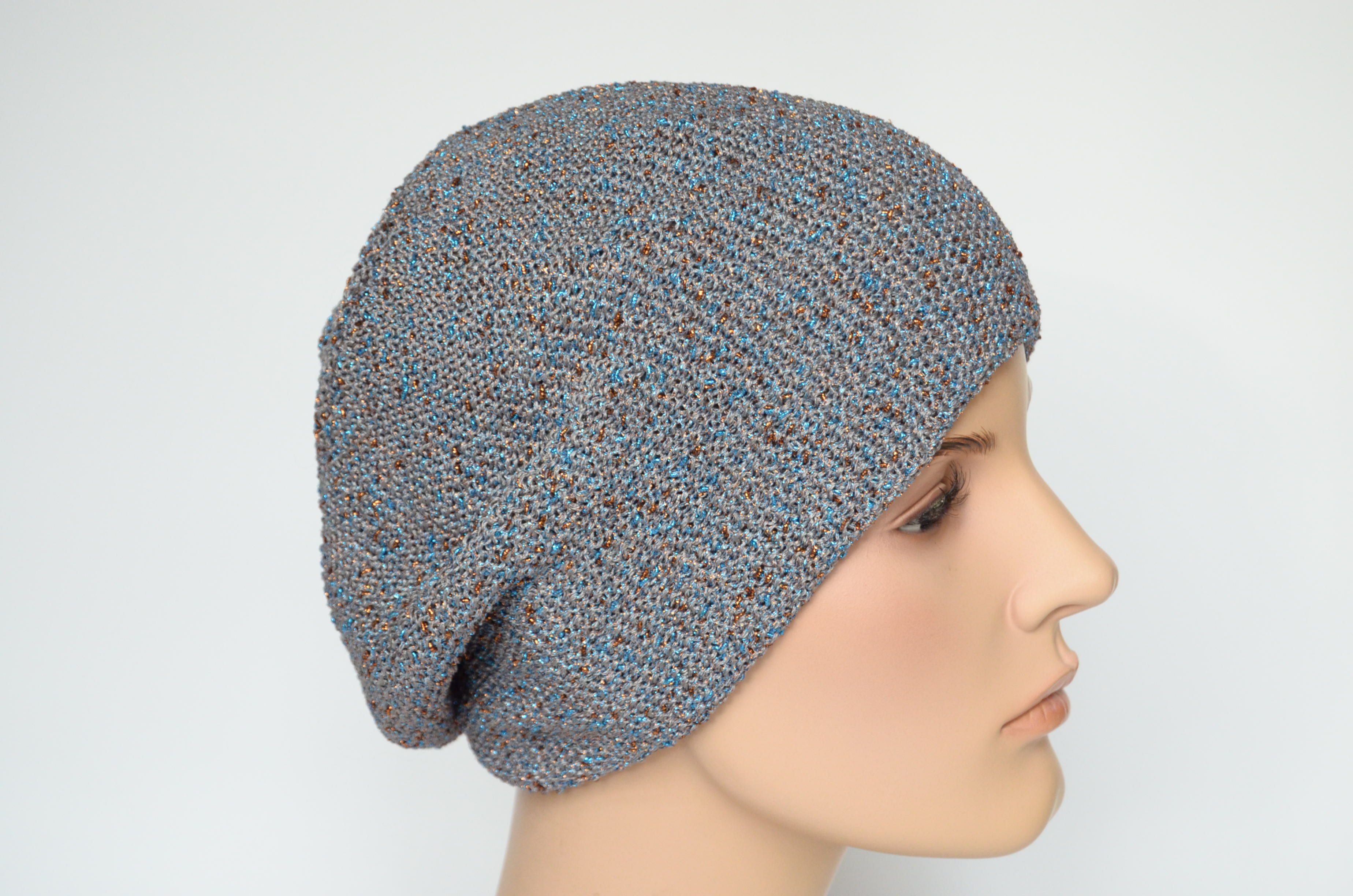 Вязаный берет серого с голубым цвета Vizio 7085 коллекция итальянских головных уборов для женщин весна - осень - зима Италия Визио