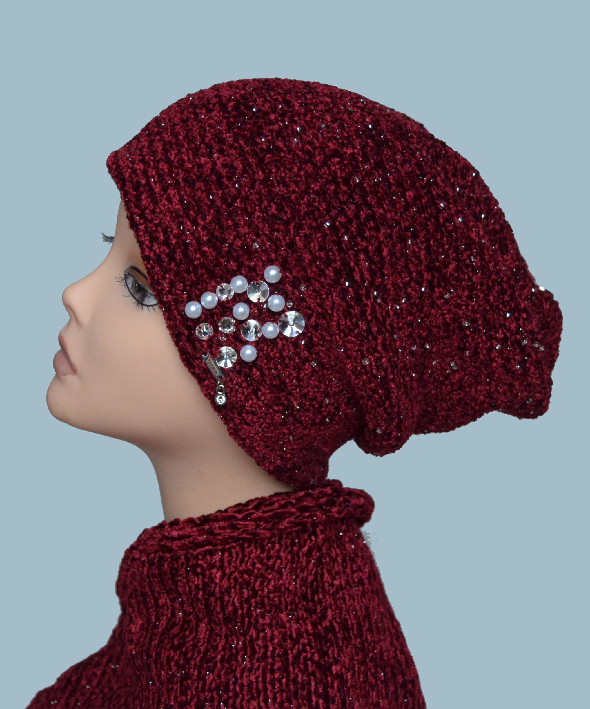 Стильная шапка зимняя Италия Vizio 6103 вязаная женcкая бордовая от итальянского дизайнера модных шапок и беретов Италии для женщин Vizio Collezione