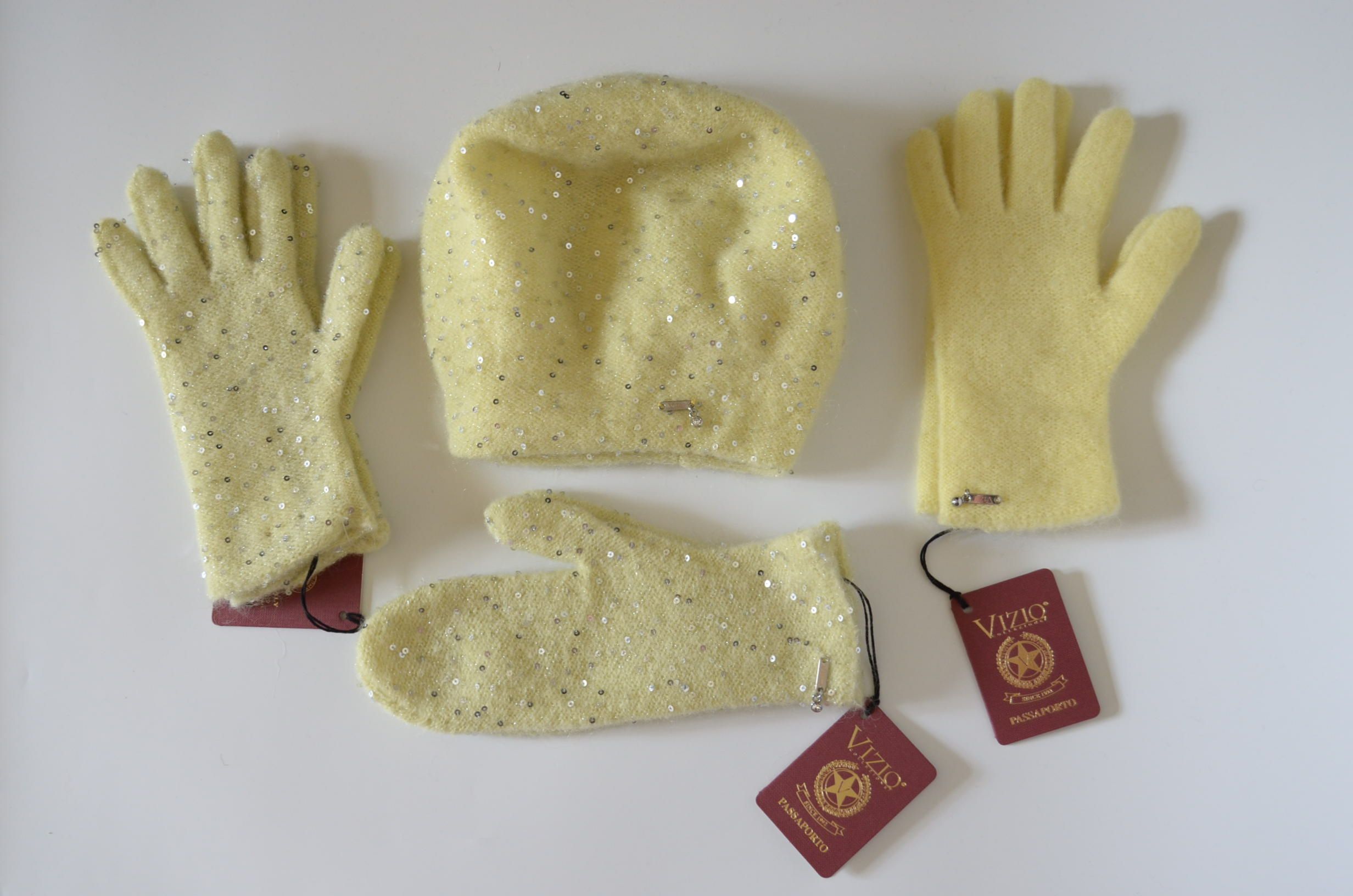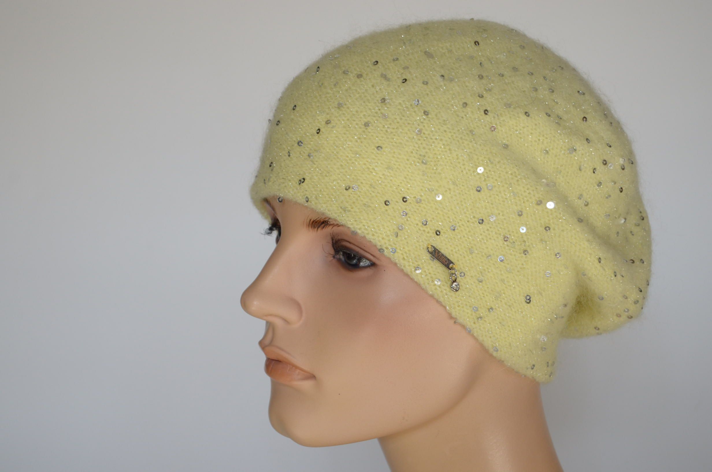 Приобрести женский желтый зимний берет с пайетками Vizio Италия 1042 вы можете в магазине итальянских головных уборов для женщин в Москве или с доставкой по России