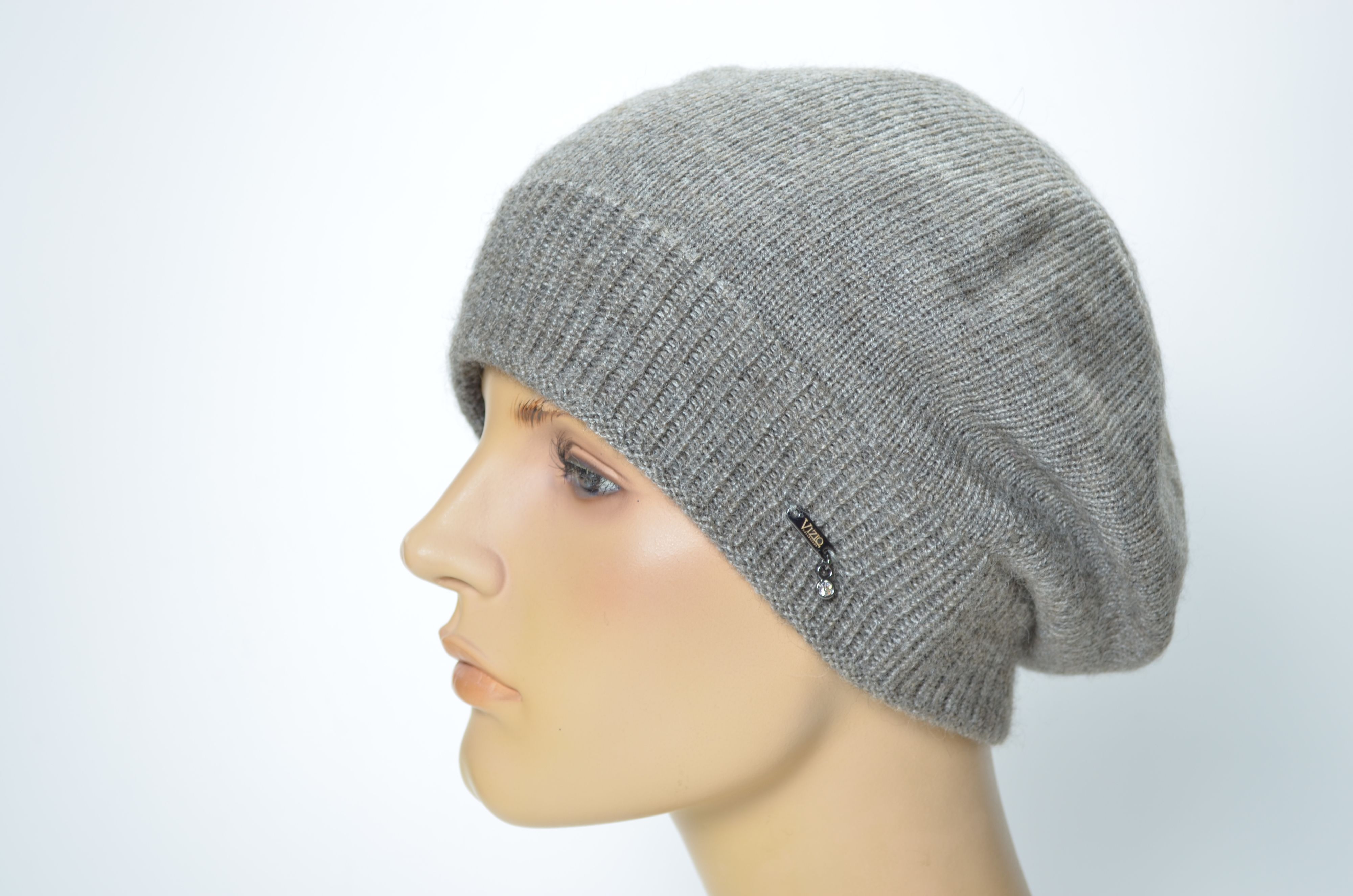Ореховый берет Vizio Италия 1440 (1129 или 9015 ) вязаный из альпака и шелка коллекция итальянских головных уборов Визио осень - зима 2024 - 2025
