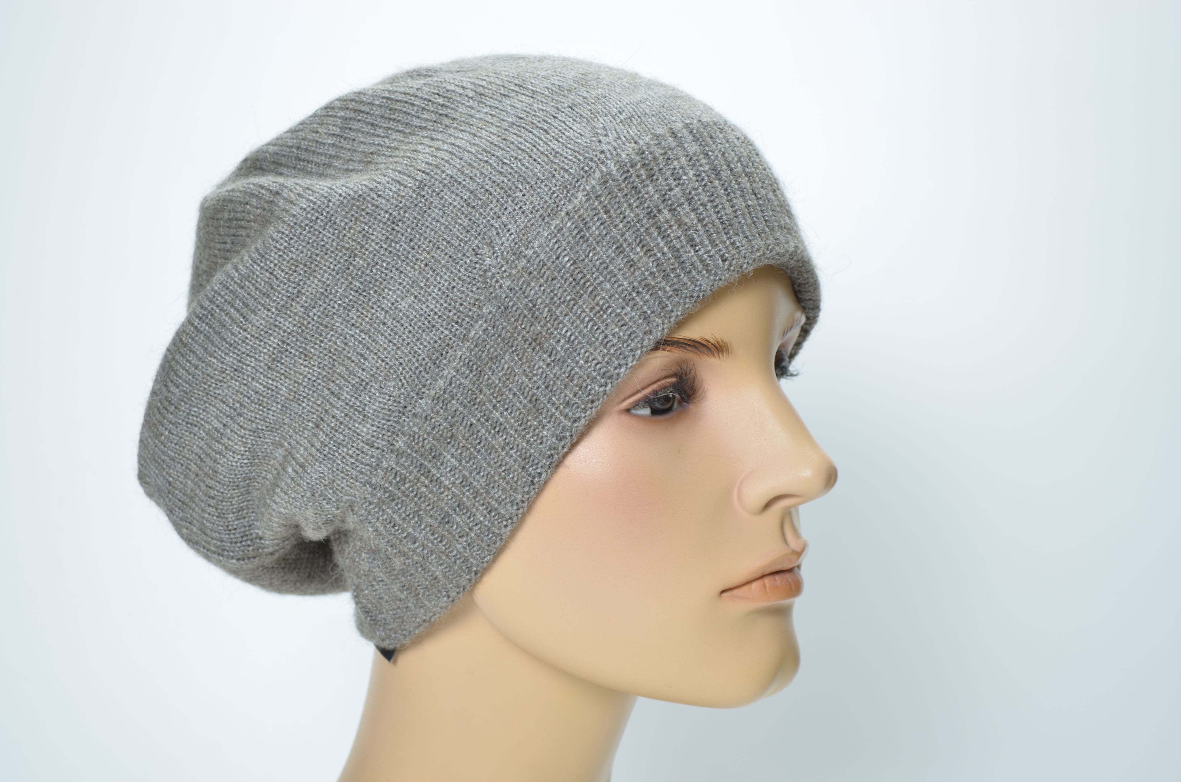 Вязаный зимний берет из альпака и шелка орехового цвета