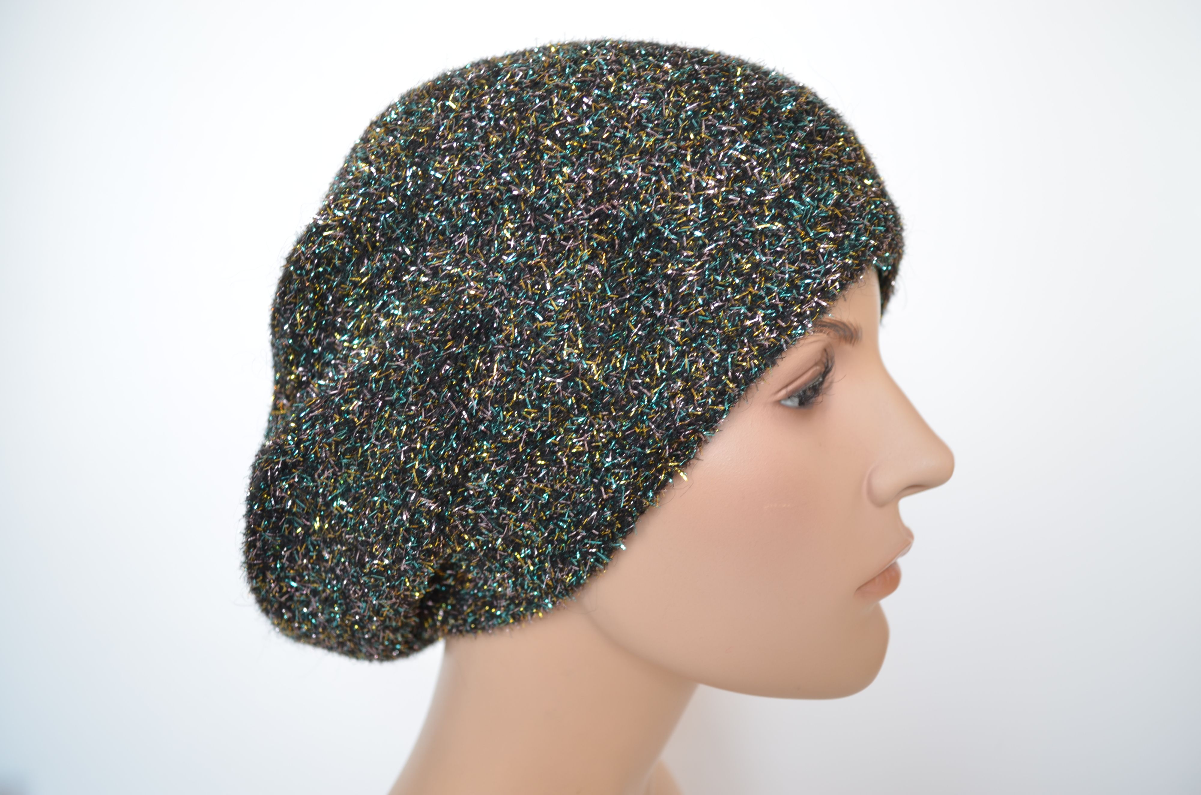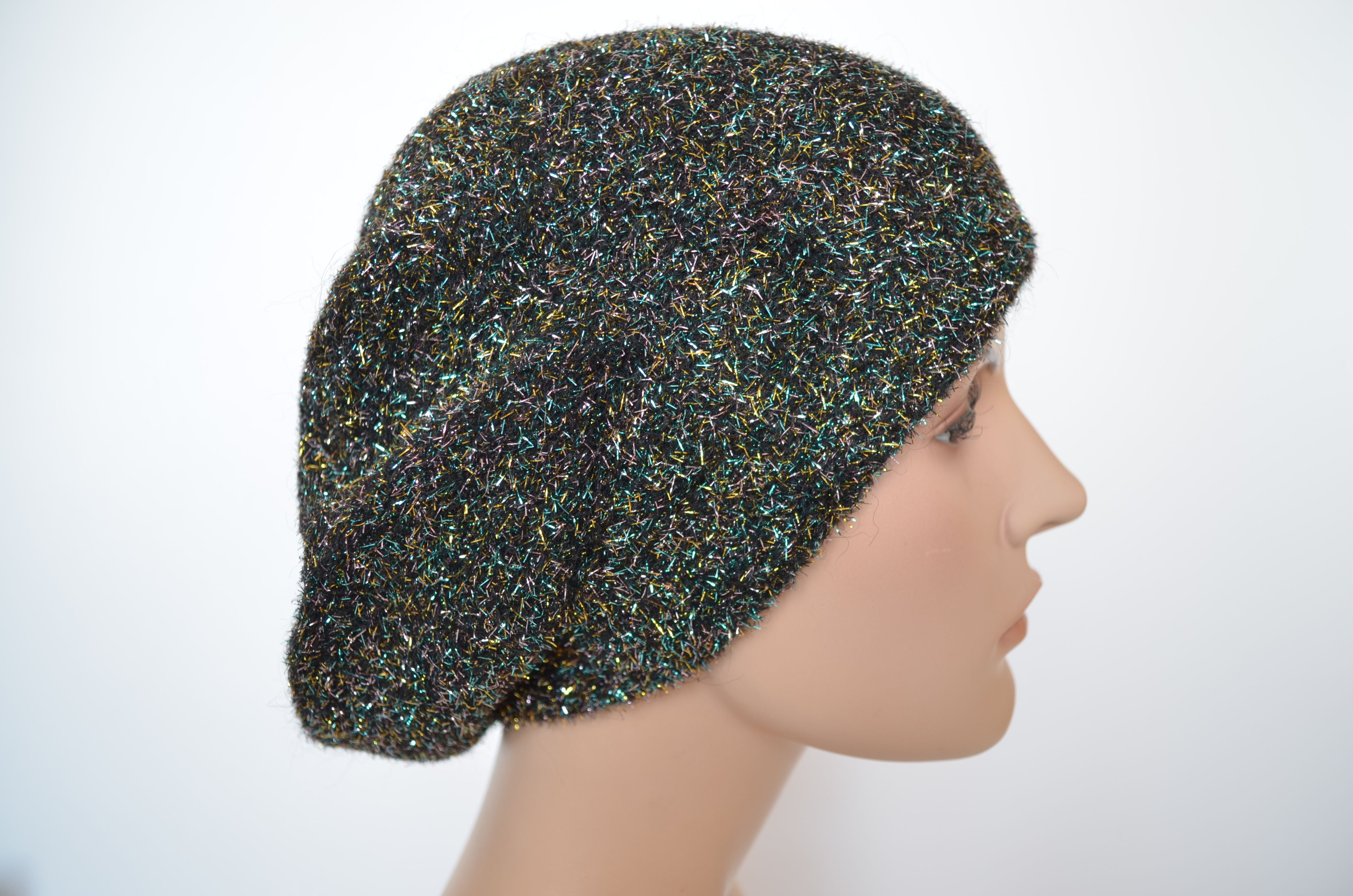 Женский разноцветный берет зимний с блестками