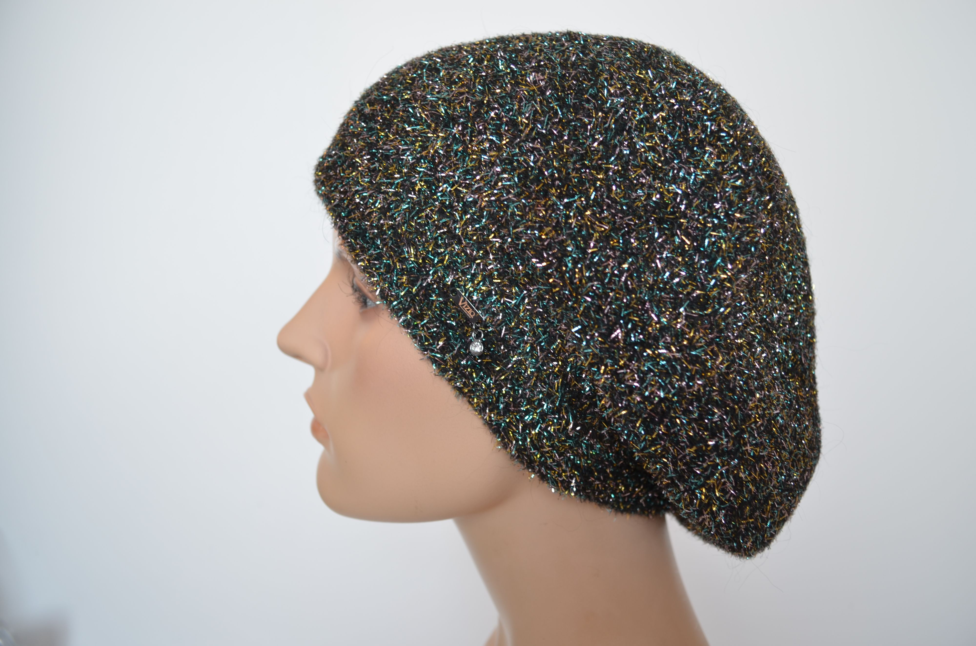 Берет с блестками Vizio Италия 1627 разноцветный из новой коллекции зимних беретов бренда головных уборов Италии Vizio Collezione