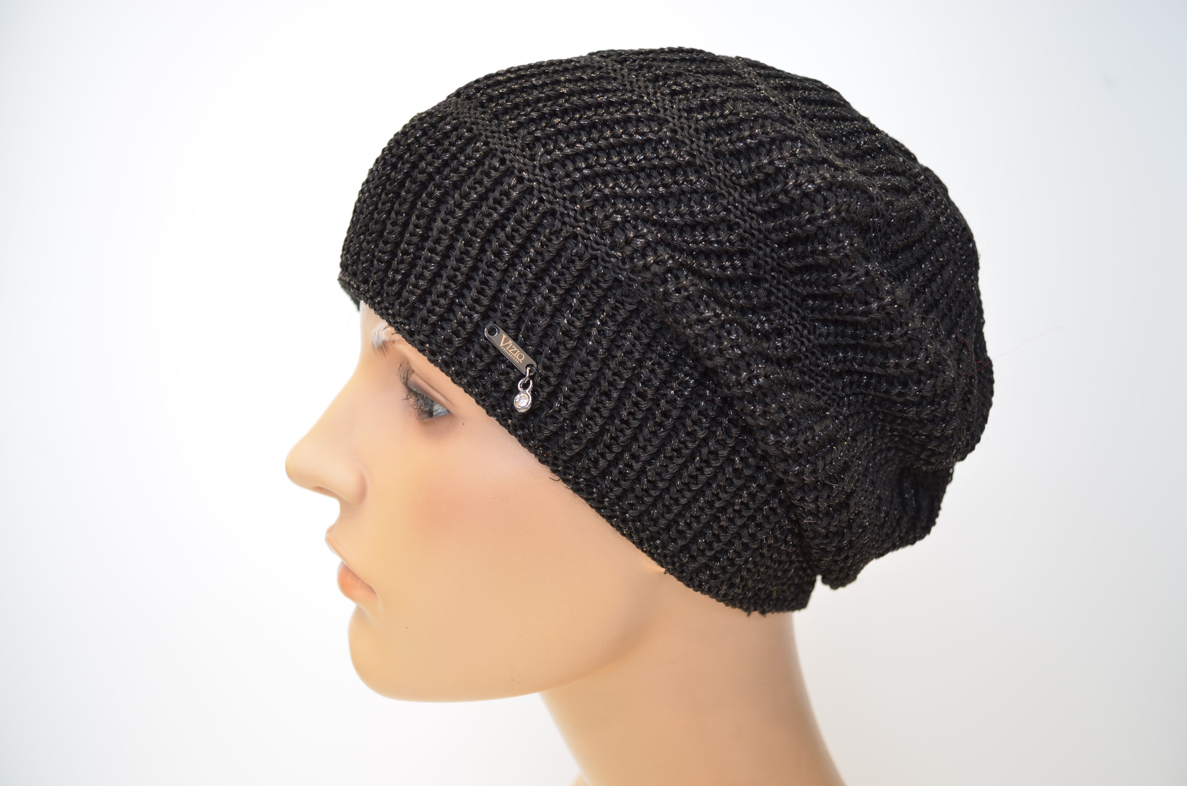 Женский вязаный берет весна лето осень 2026 из вискозы черного цвета Vizio 1801 B коллекция итальянских головных уборов Визио Vizio Collezione 2026 года