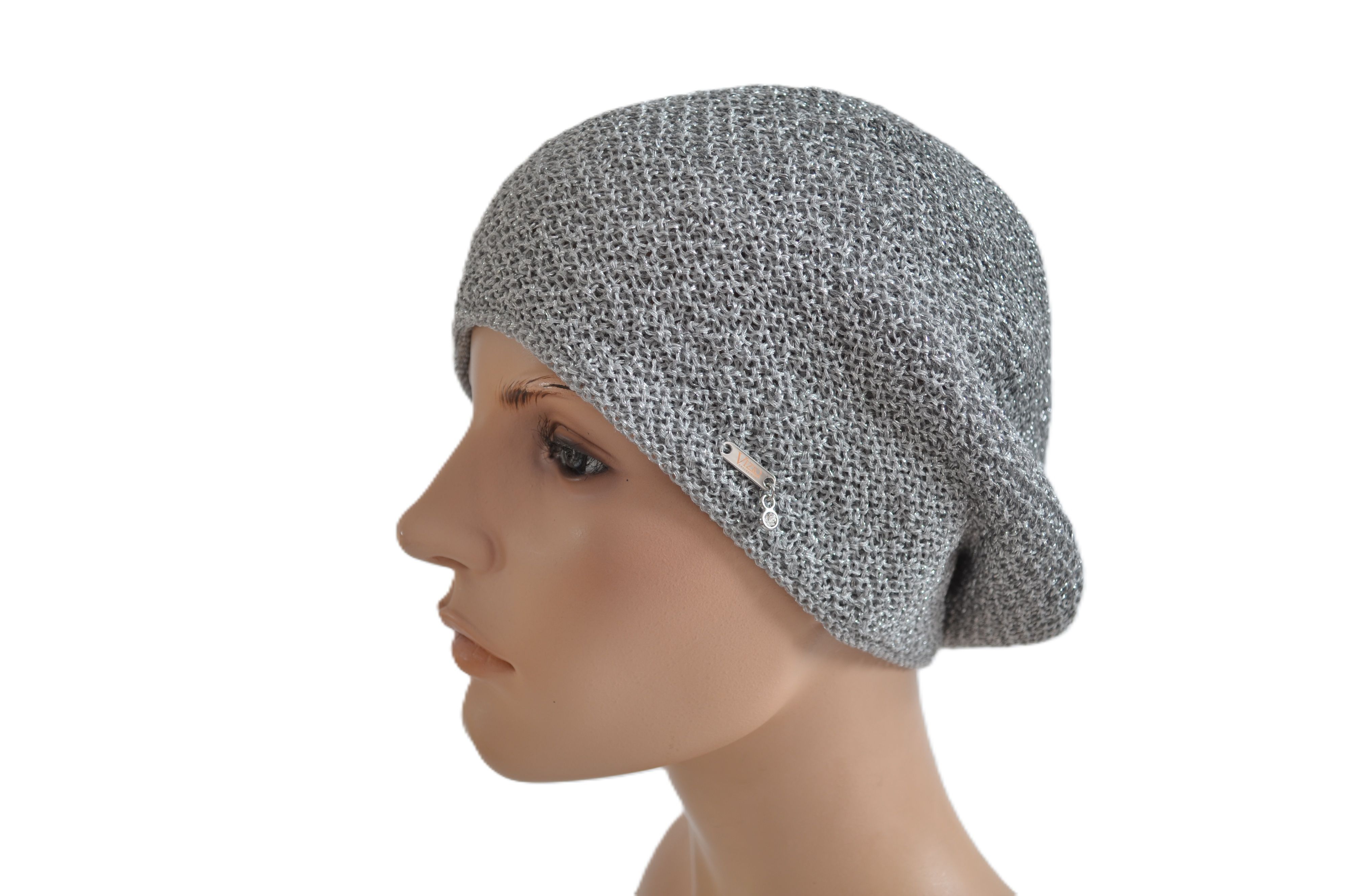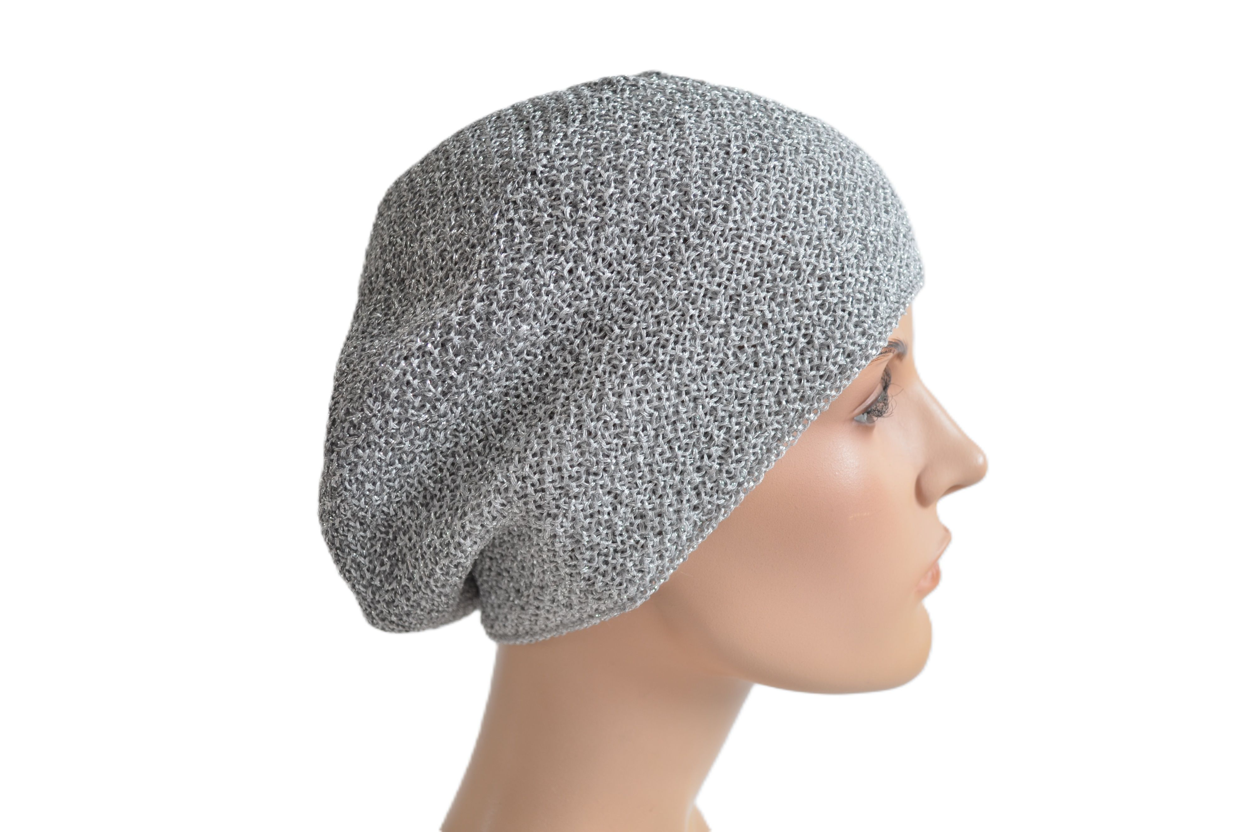 Женский берет вязаный серого цвета весна - лето - осень вискоза