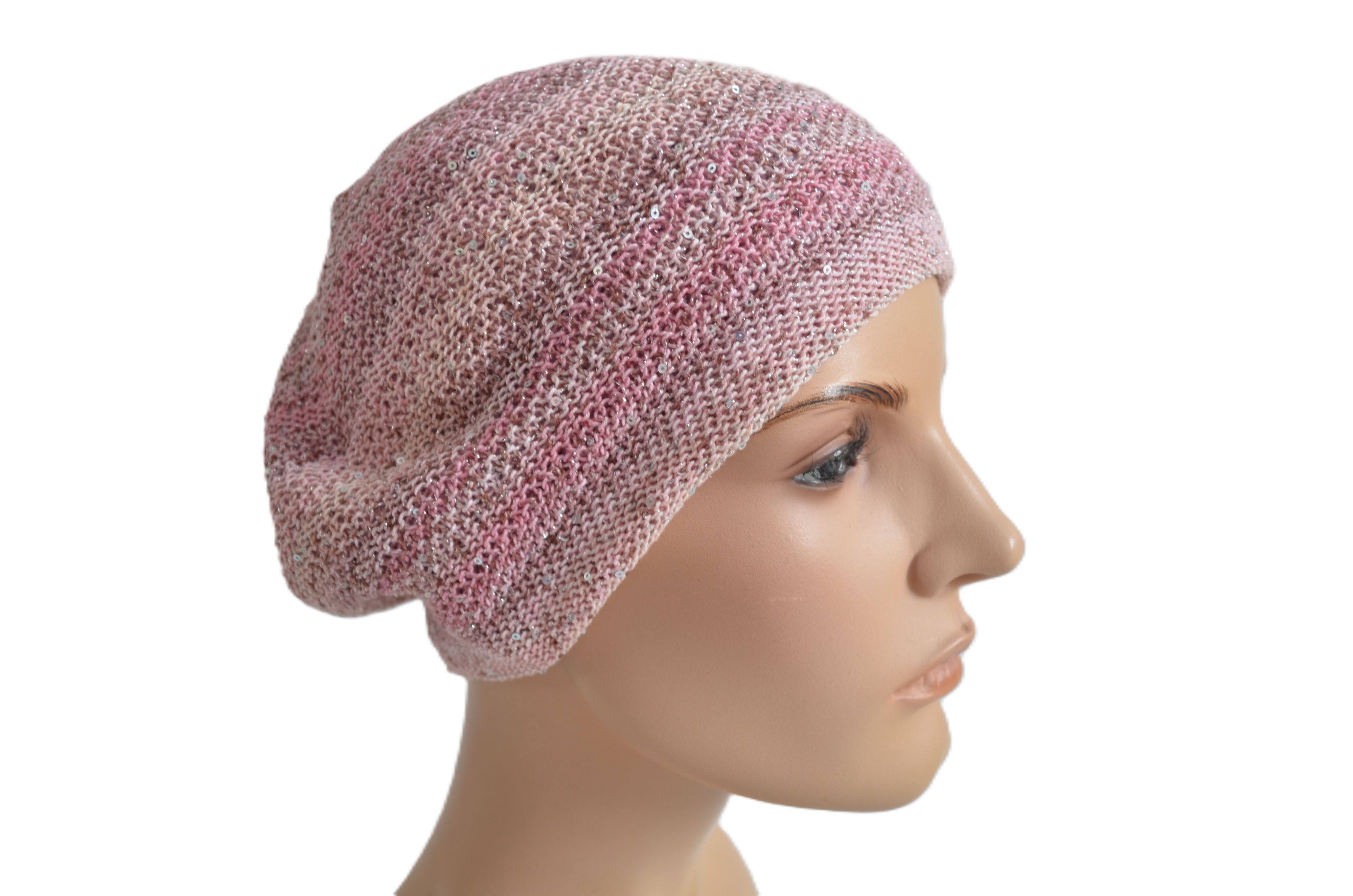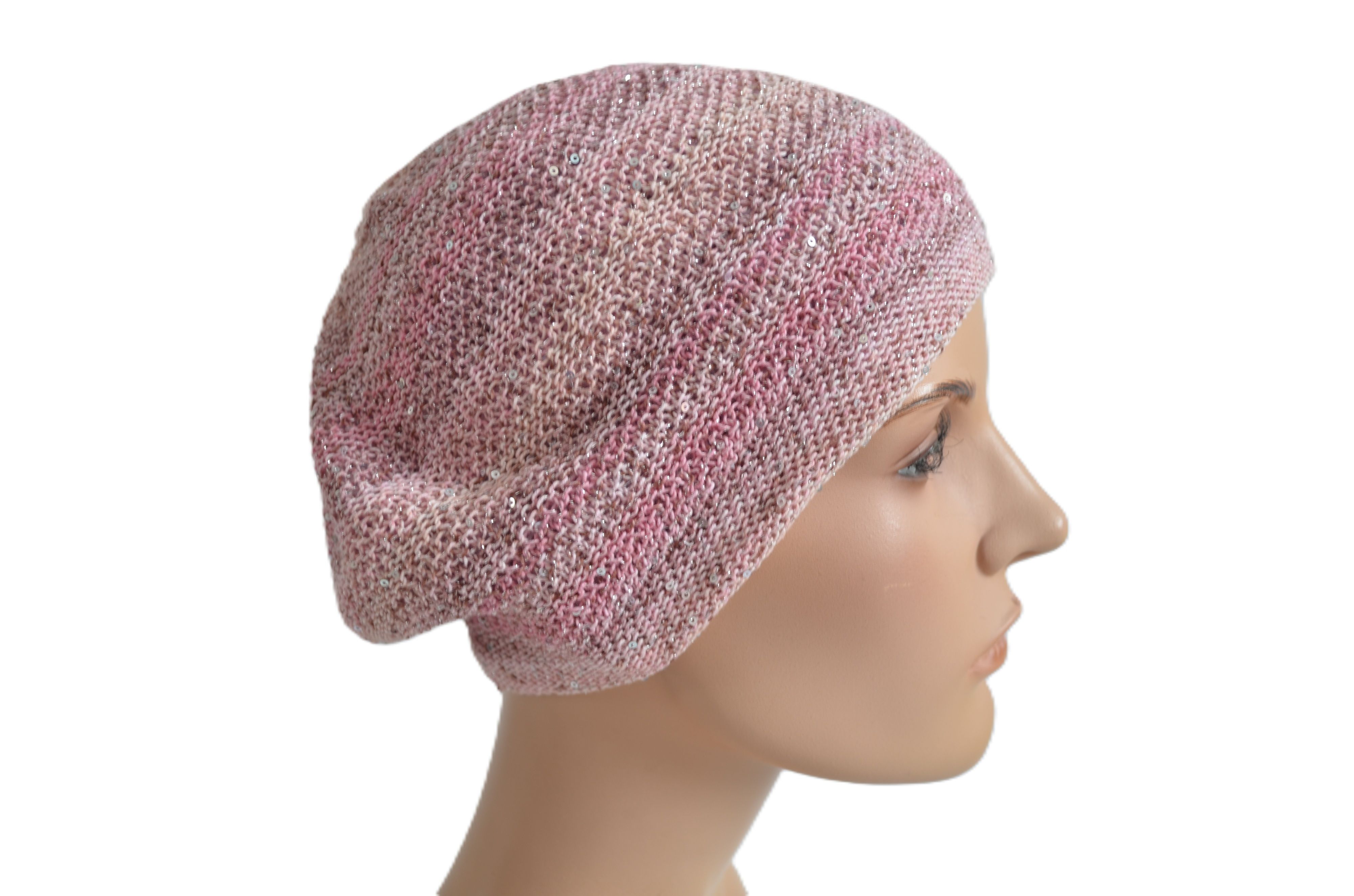 Женский вязаный берет из хлопка розового цвета весна - лето - осень