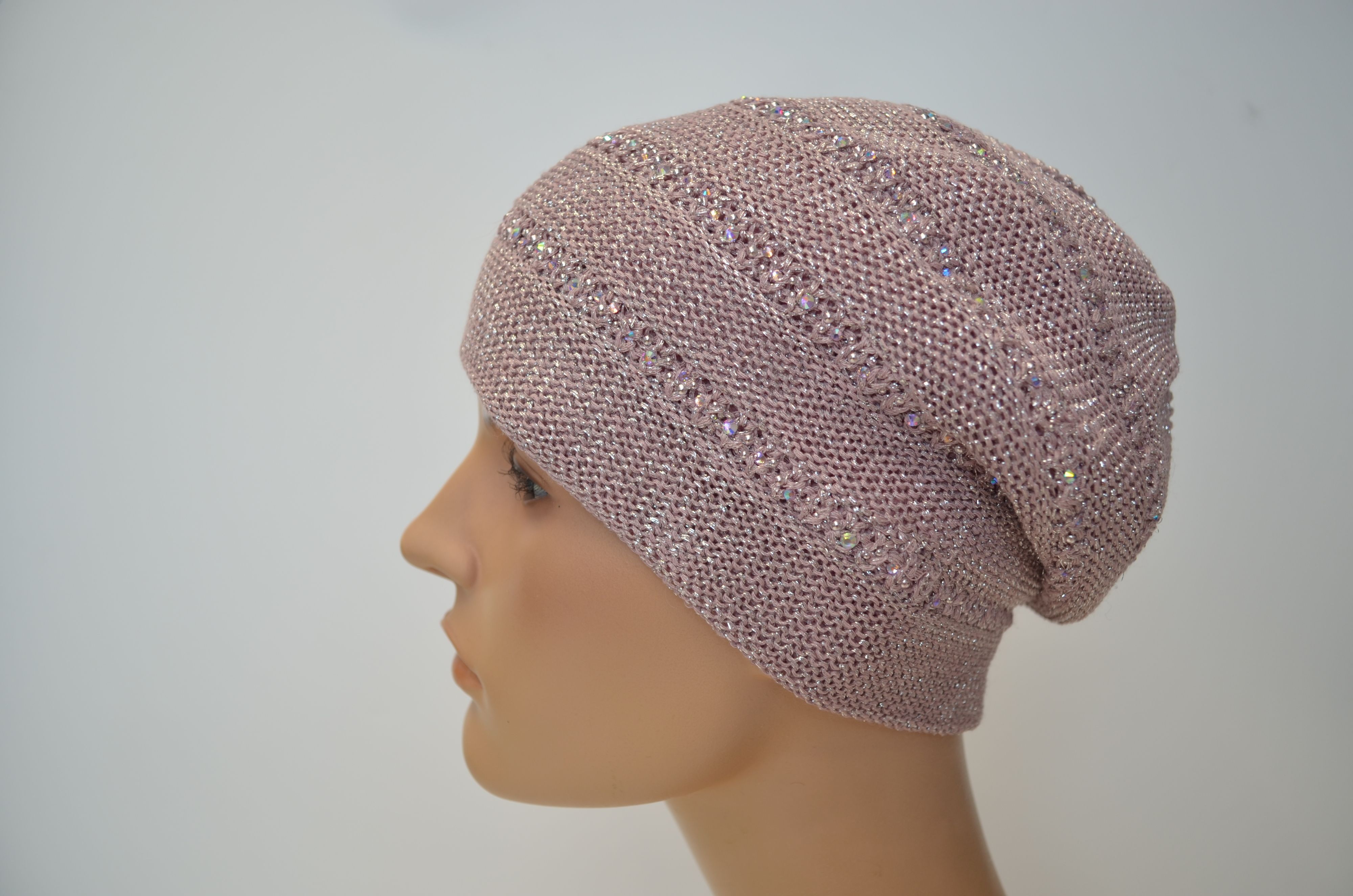 Женский вязаный берет со стразами весна лето осень 2026 розового цвета с вязаным подкладом Vizio 1802 B коллекция головных уборов Италии Визио 2026 года