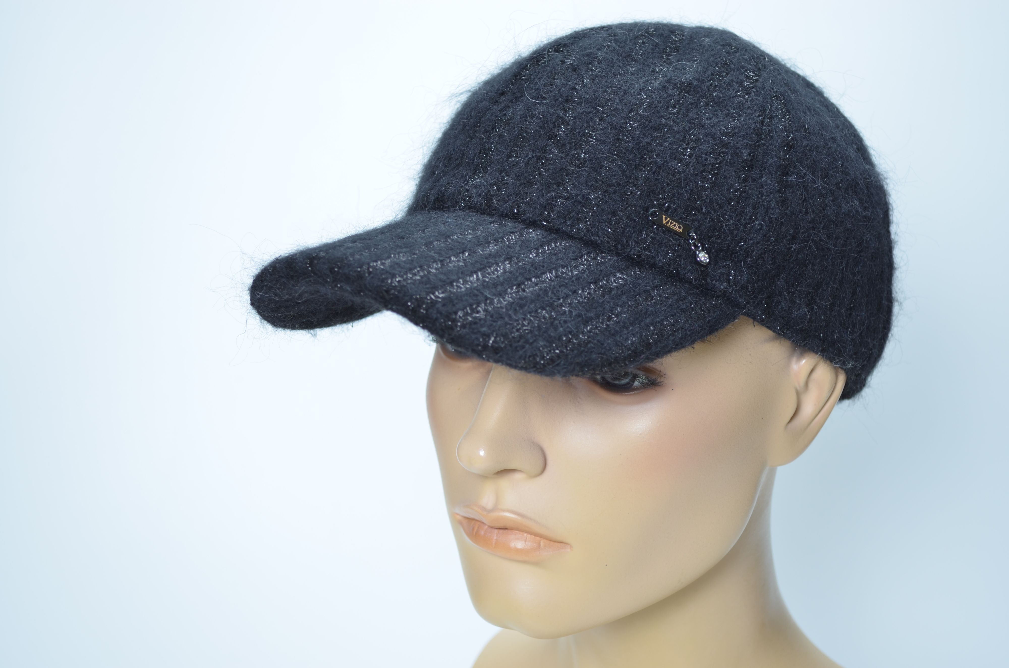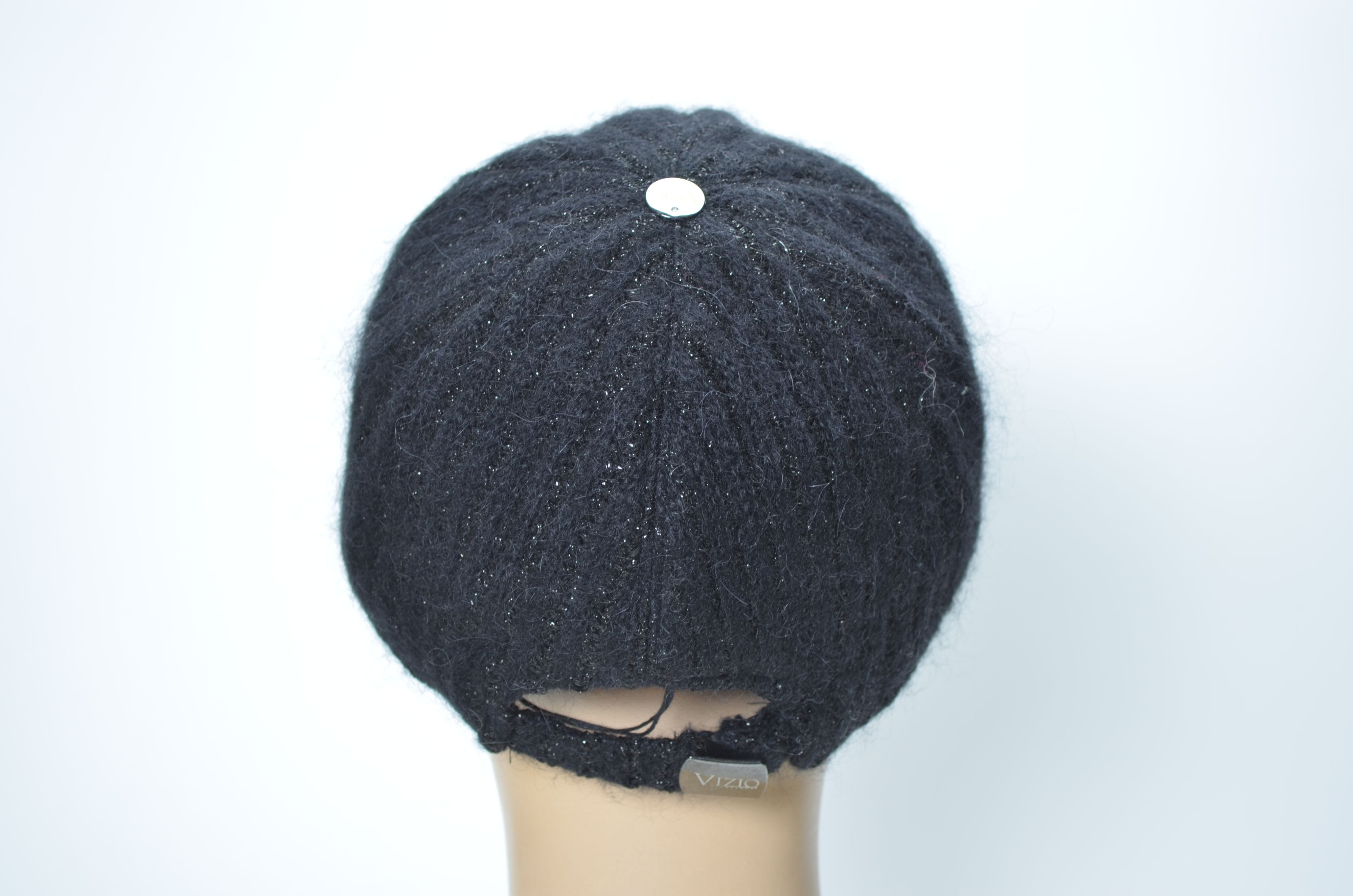 Черная итальянская женская бейсболка зима 2024 - 2025 Vizio Италия 1301 V коллекция дизайнера вязаных головных уборов для женщин Vizio Collezione