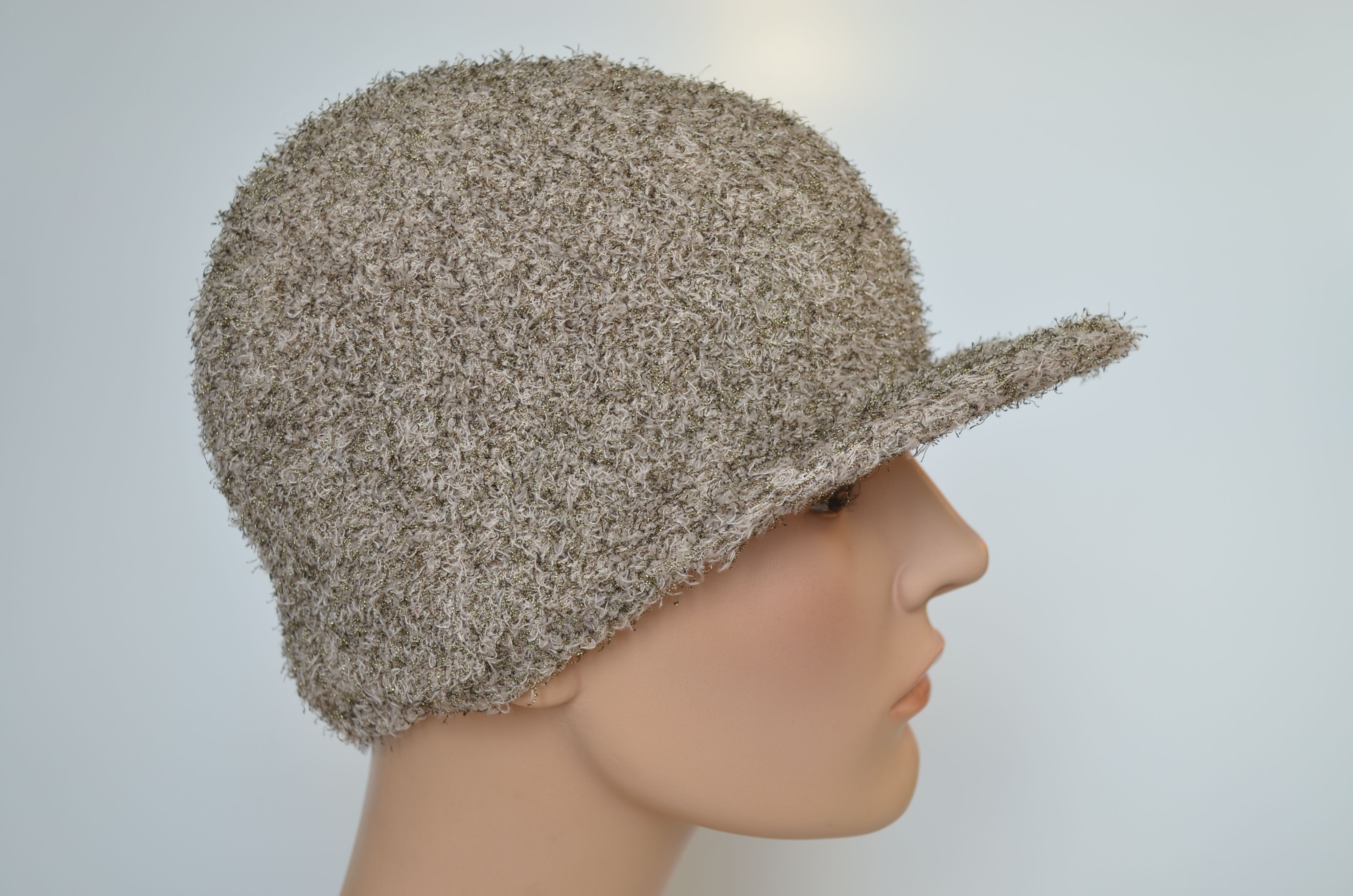 Женская бейсболка вязаная бежевая весна - лето - осень вискоза