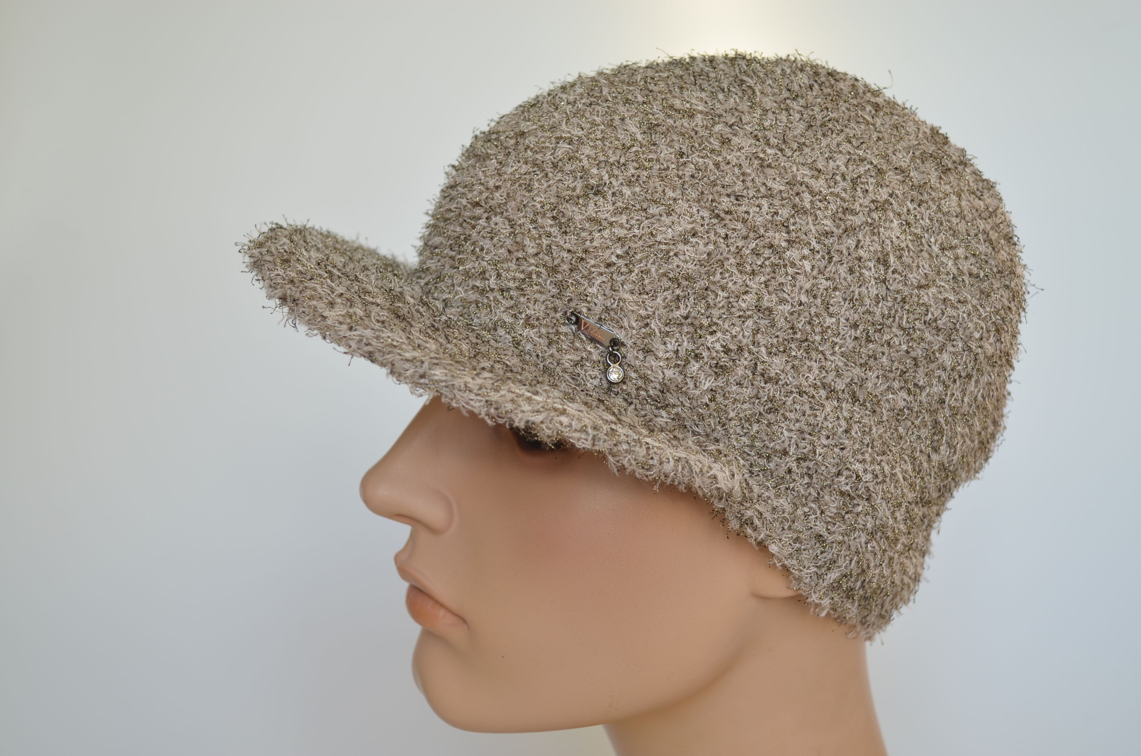 Женская итальянская бейсболка весна - лето - осень однослойная вязаная из вискозы Vizio 1528 VO бежевого цвета коллекция головных уборов Италии Вицио 2025 года
