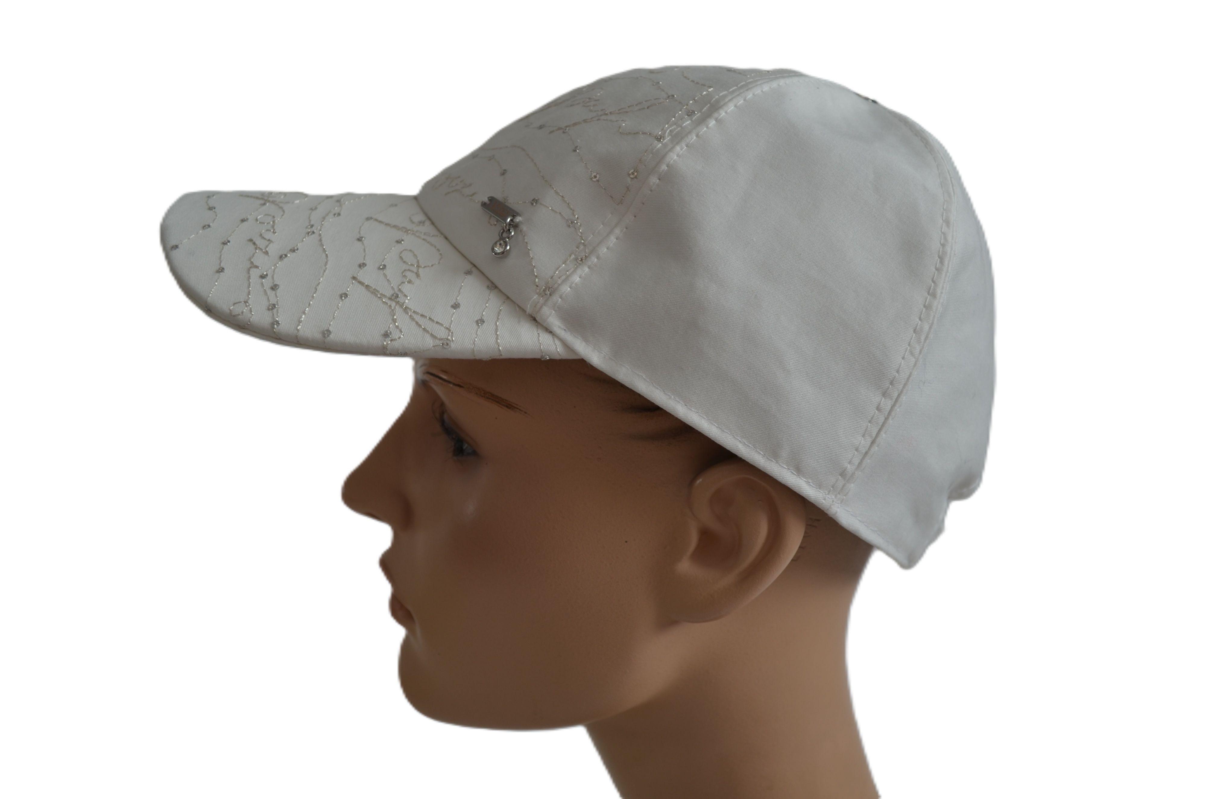 Летняя итальянская женская бейсболка вязаная из льна весна лето осень 2025 Vizio Италия 1548 V белого цвета коллекция итальянского бренда вязаных бейсболок и кепок для женщин Vizio Collezione. Размер бейсболки регулируется