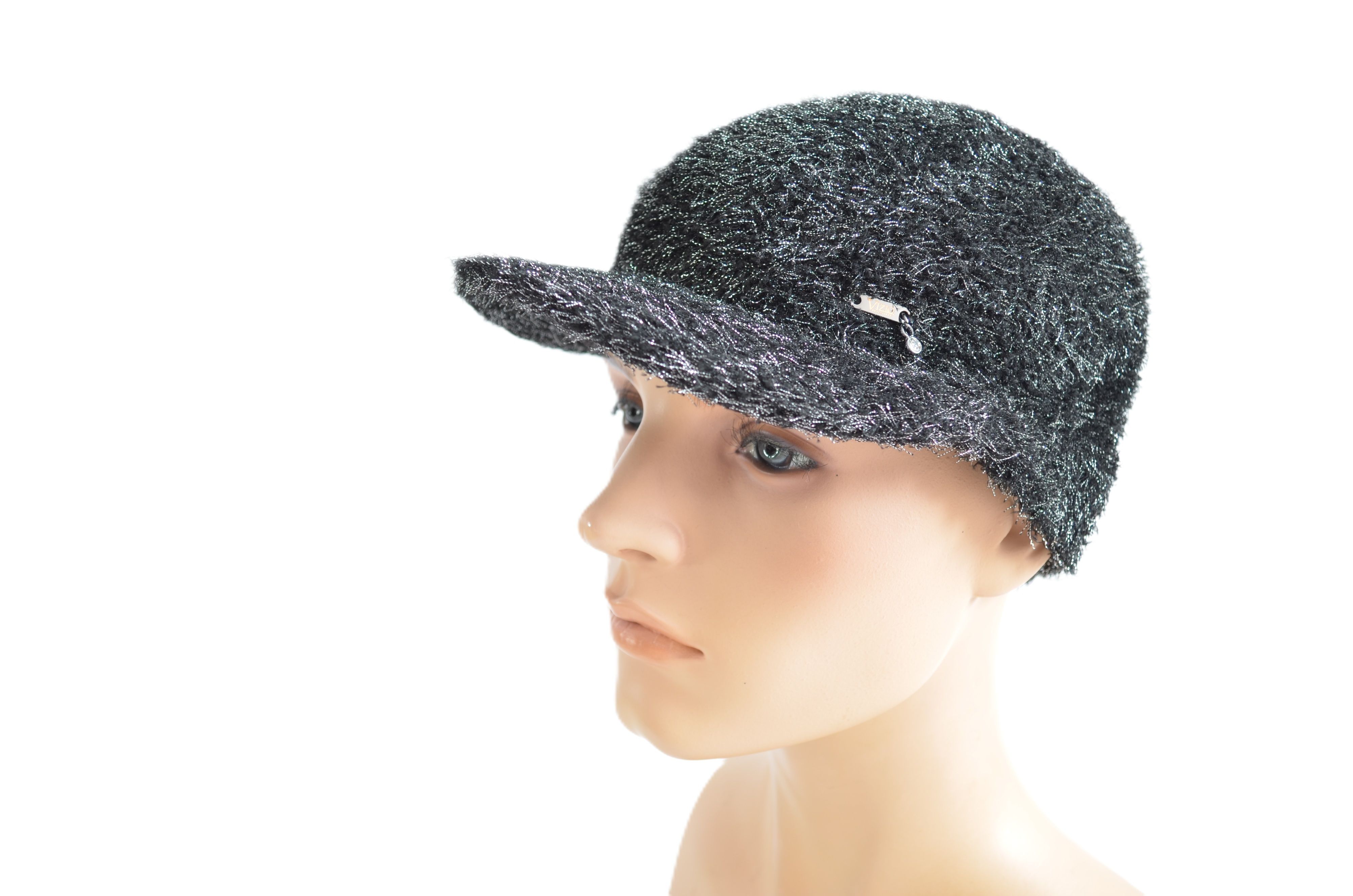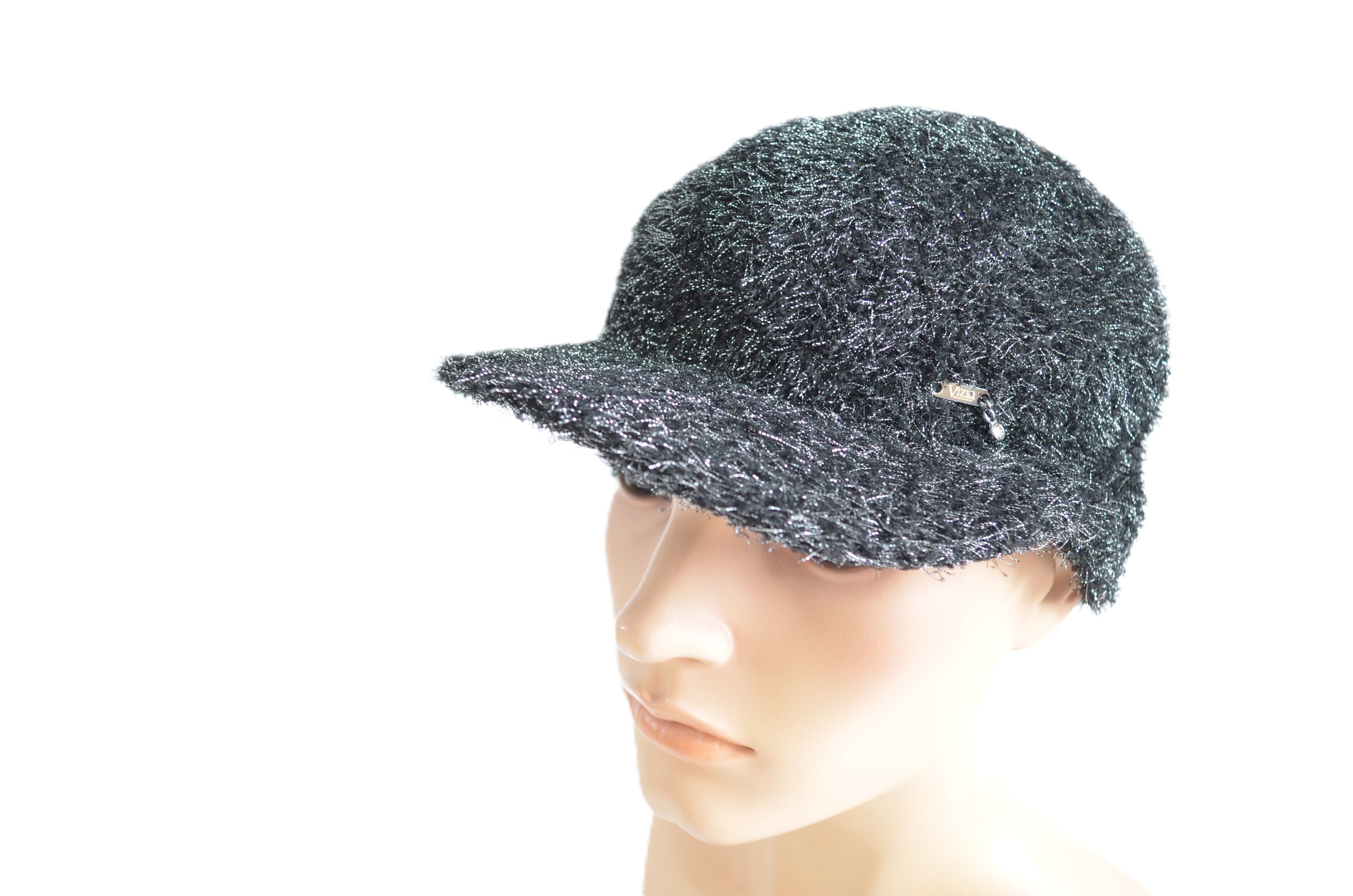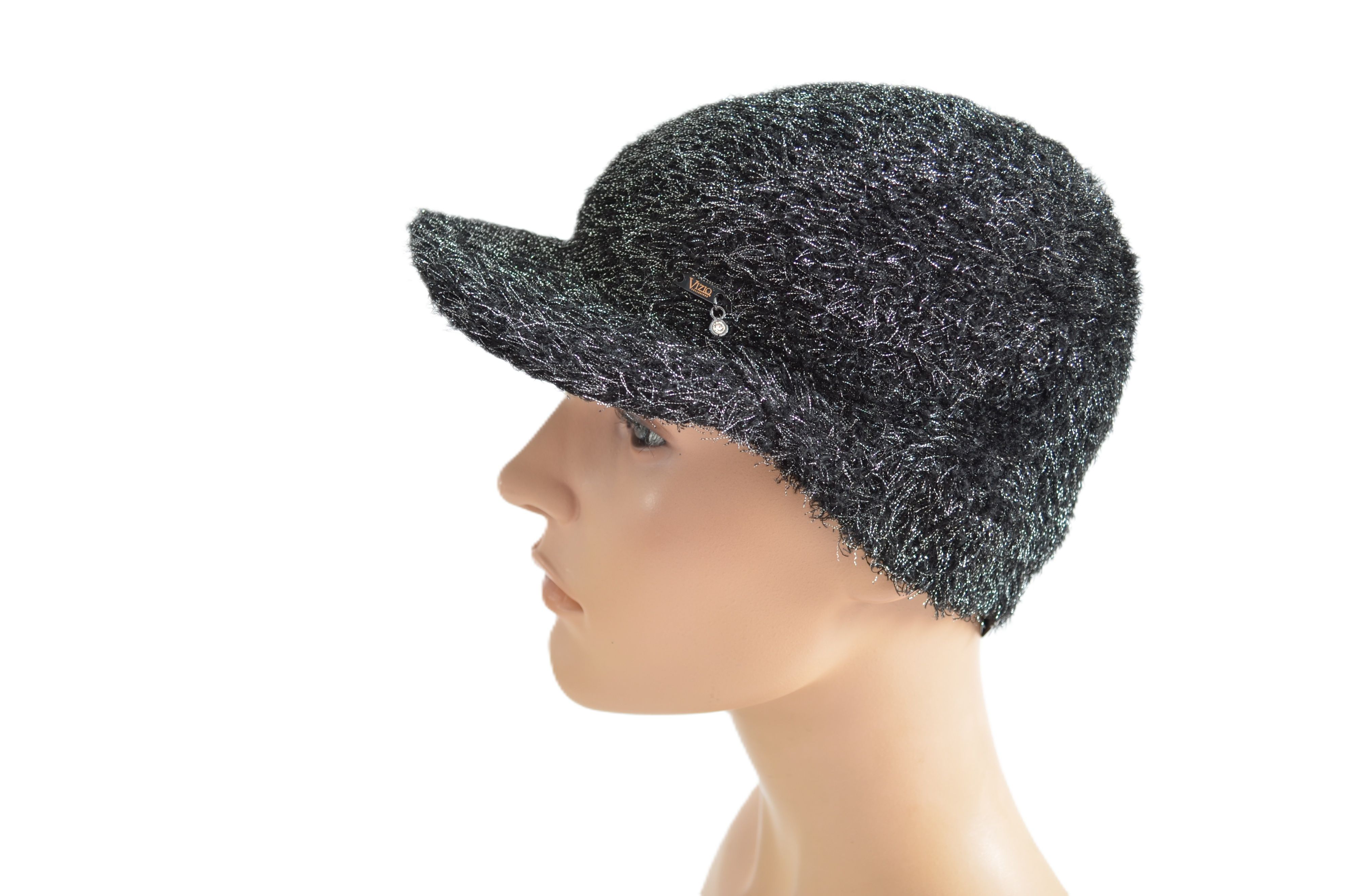 Женская итальянская бейсболка черного цвета весна - лето - осень однослойная вязаная из вискозы Vizio 1528 VO коллекция головных уборов Италии Вицио 2025 года