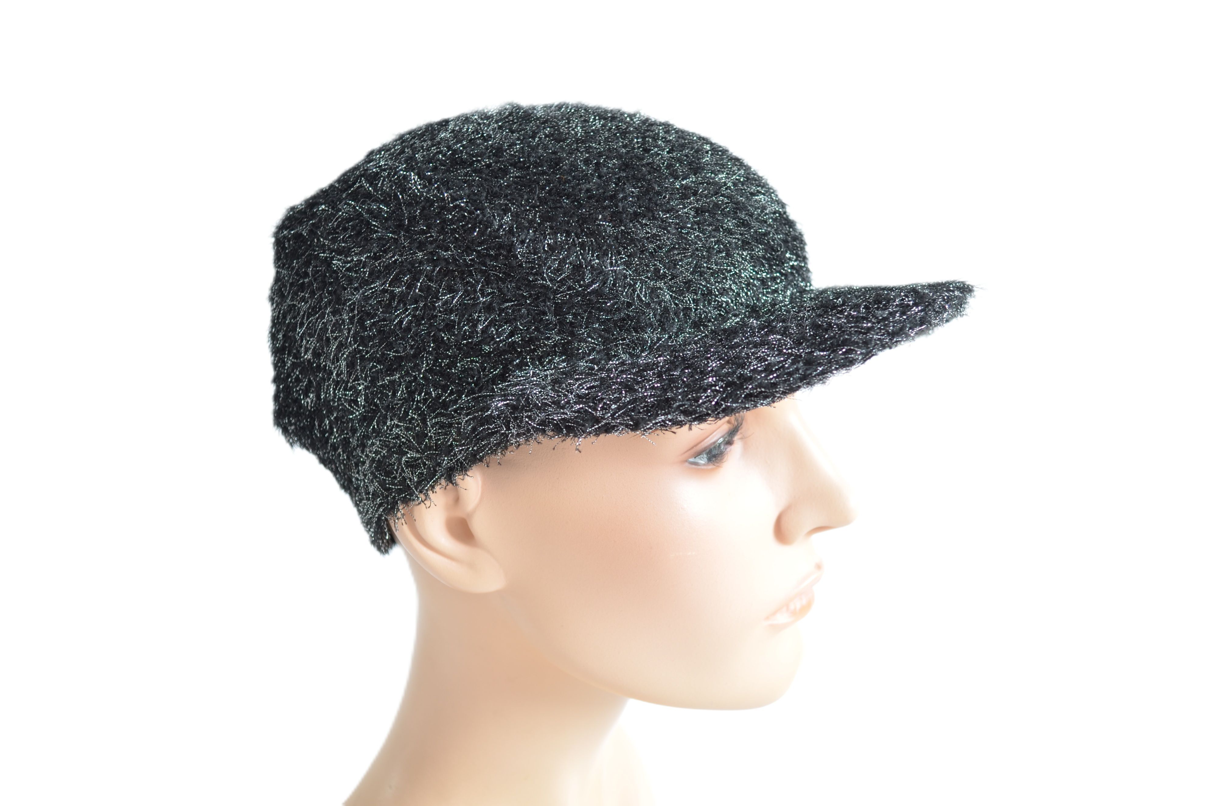 Женская бейсболка черная вязаная серая весна - лето - осень вискоза