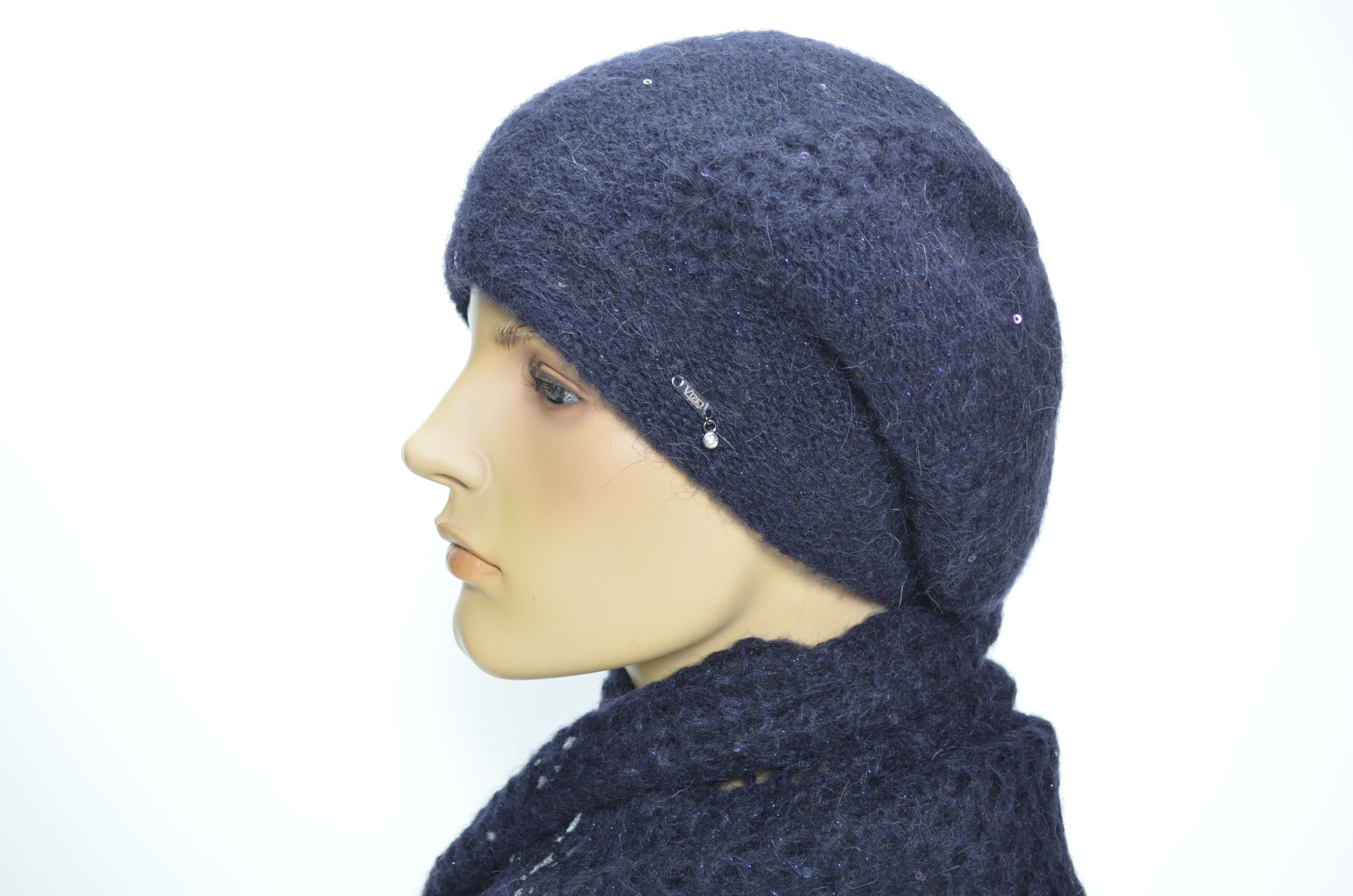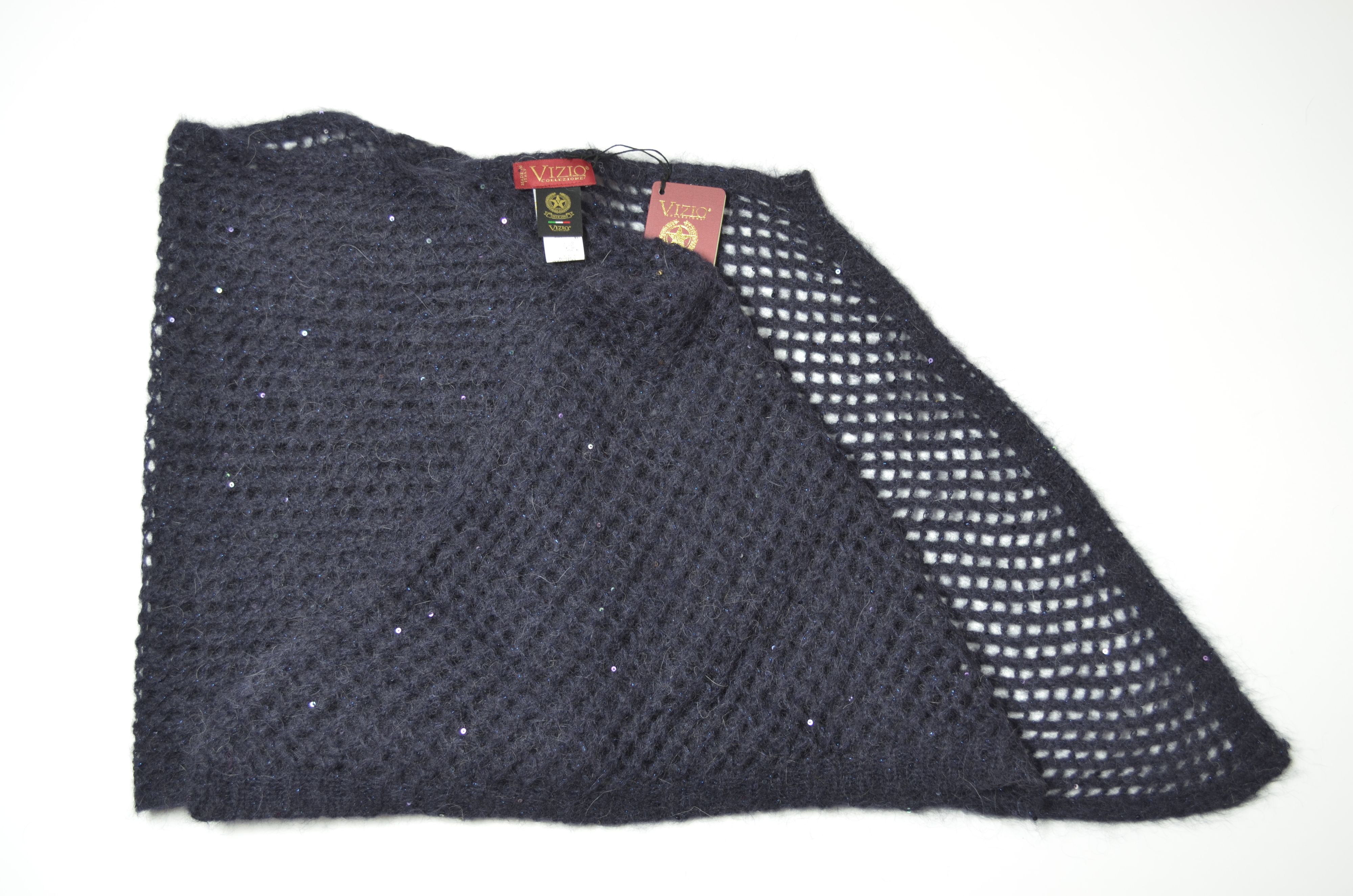 Синий вязаный шарф палантин паутинка с пайетками Vizio 1341 SSX из новой коллекции шарфов и головных уборов Италии 2024 - 2025 купить в интернет магазине женских шапок Vizio Collezione