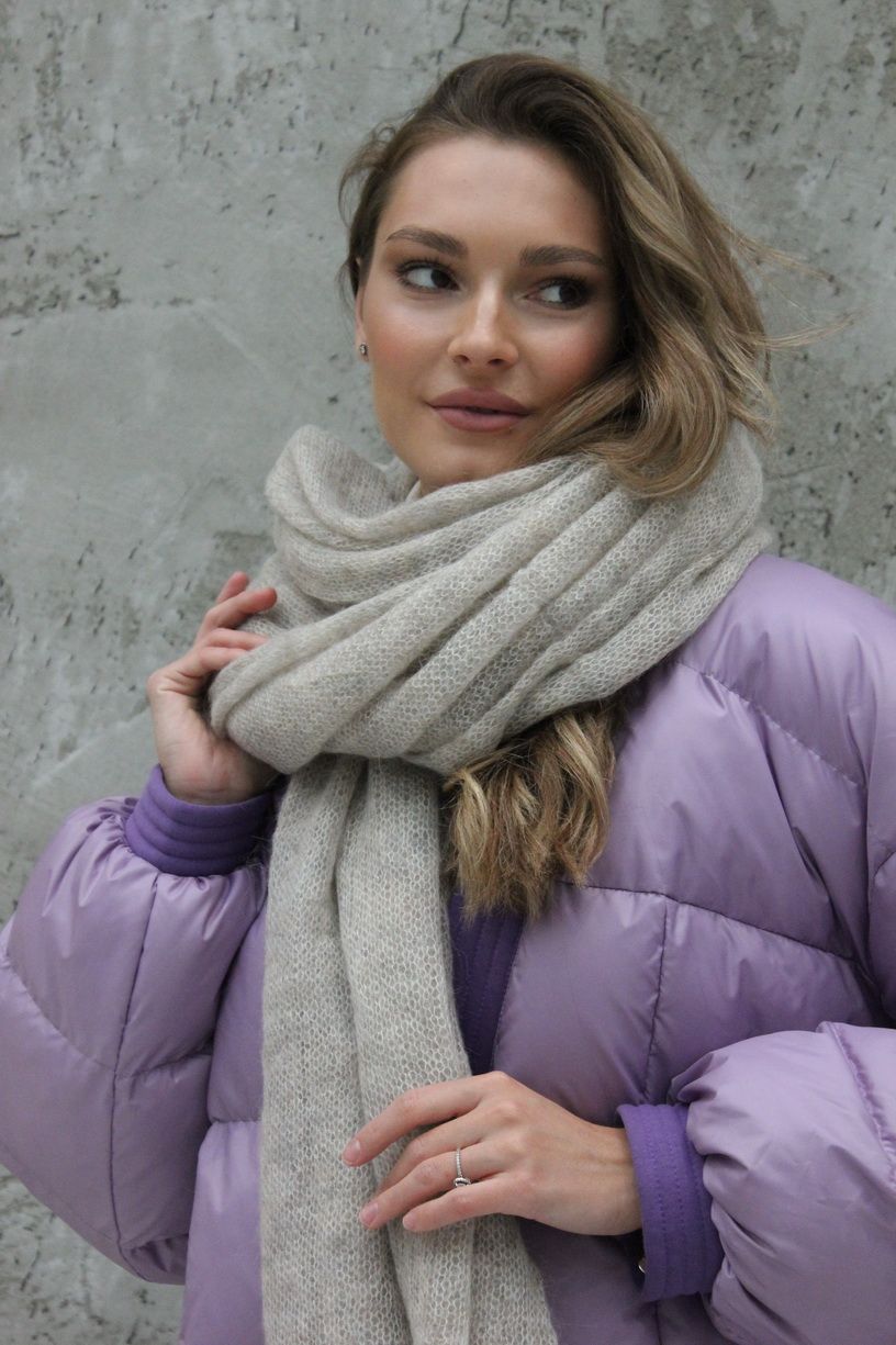 Вязаный шарф палантин зимний паутинка бежевого цвета