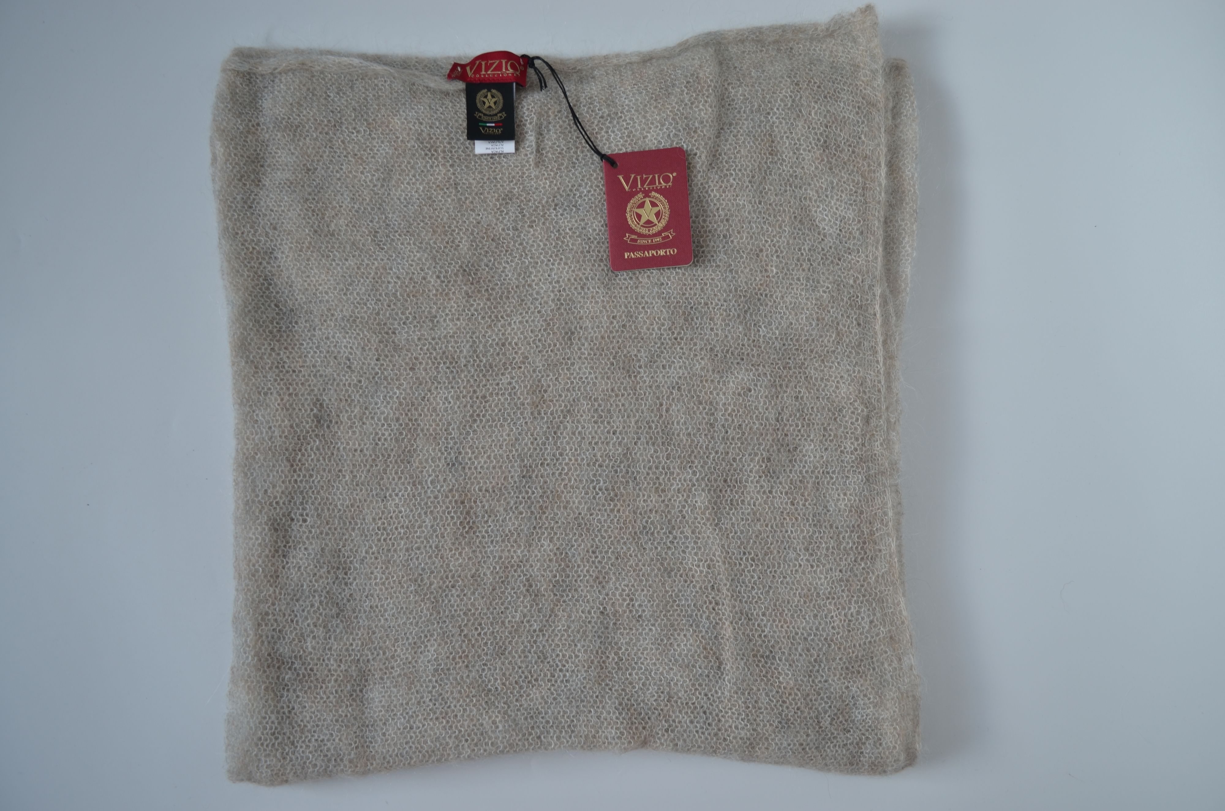 Вязаный итальянский шарф палантин бежевого цвета Vizio 1600 SX коллекция зимних итальянских палантинов и головных уборов Vizio Collezione зима 2025 - 2026