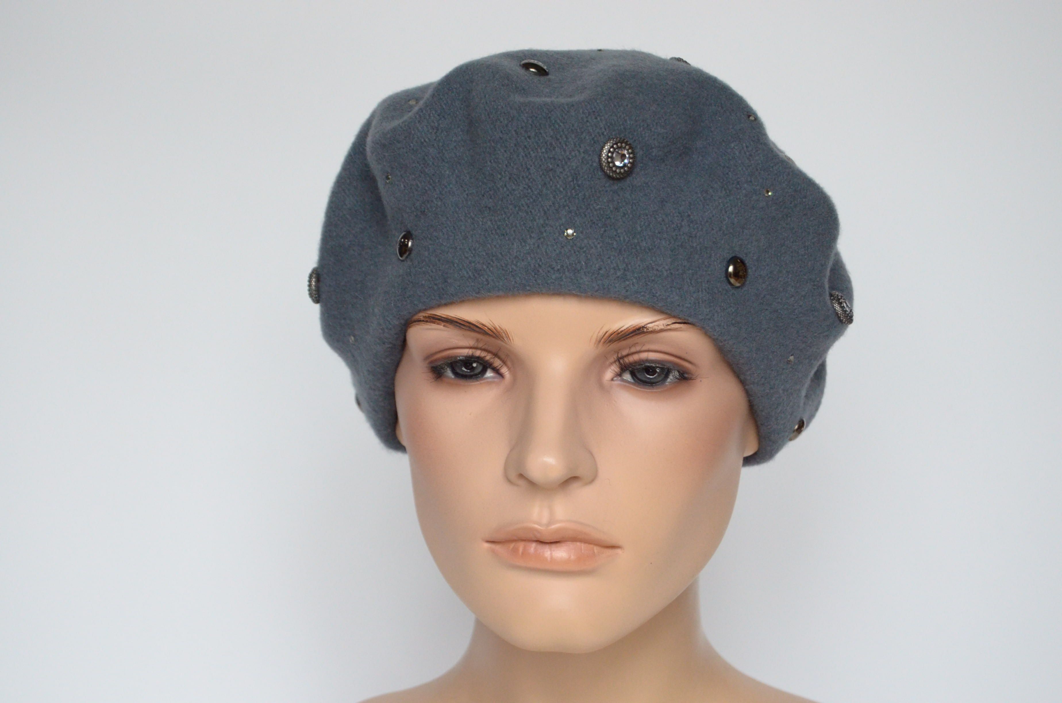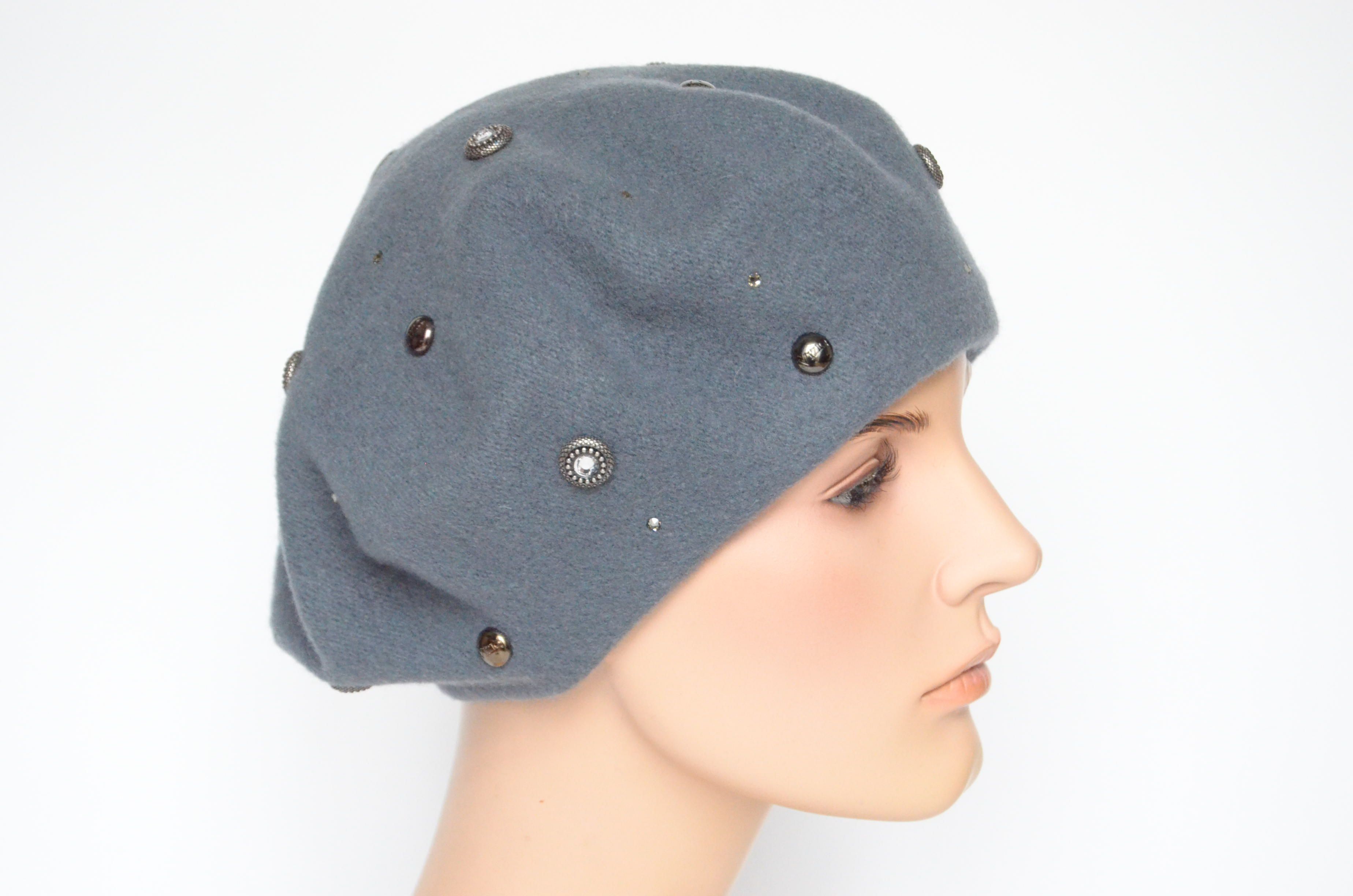 Берет серо - голубой женский Италия Vizio 3633 фетровый со стразами swarovski купить в интернет магазине вязаных головных уборов для женщин в Москве