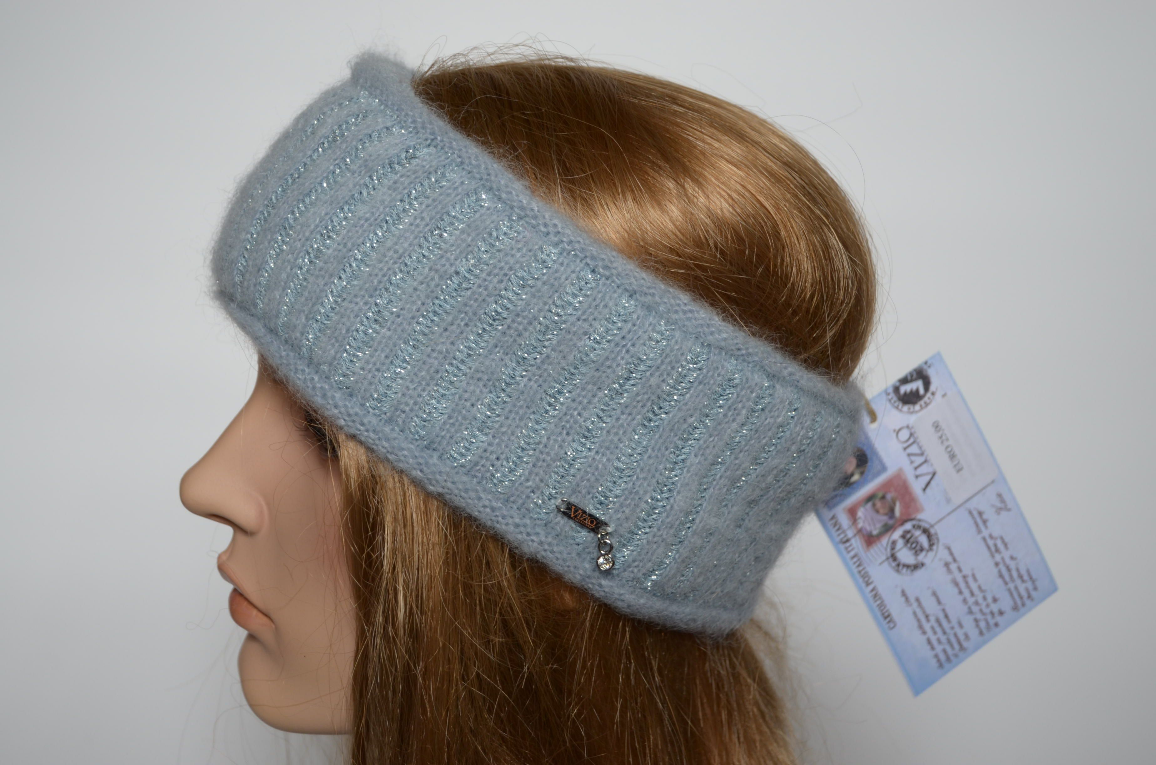 Голубая вязаная повязка из мохера и альпака женская Vizio Италия 6700 F купить в магазине итальянских женских головных уборов