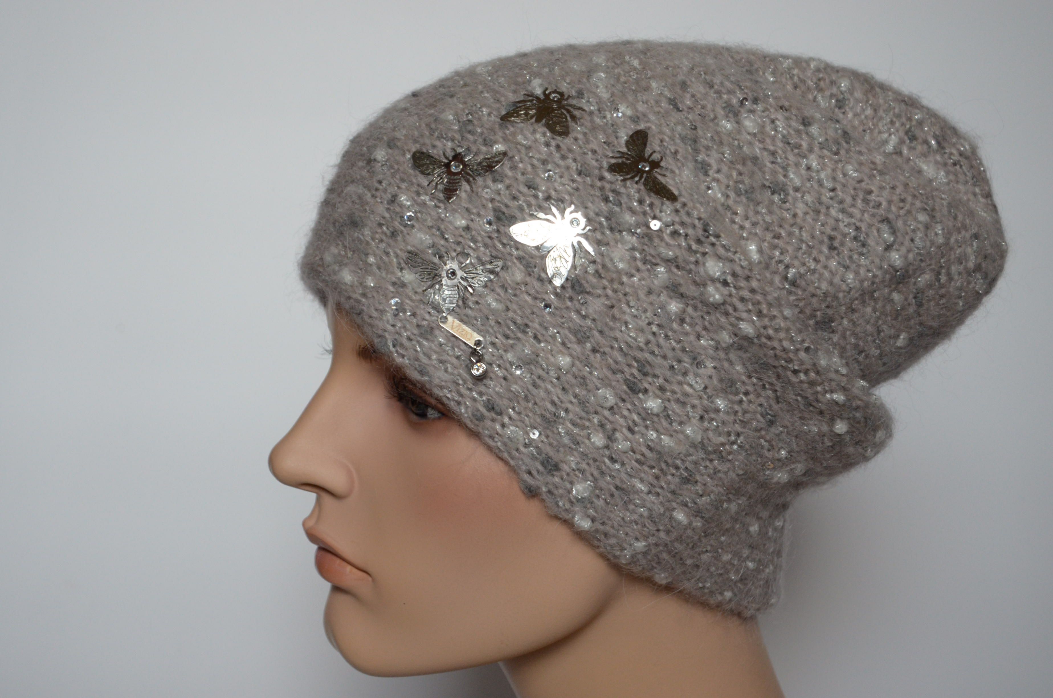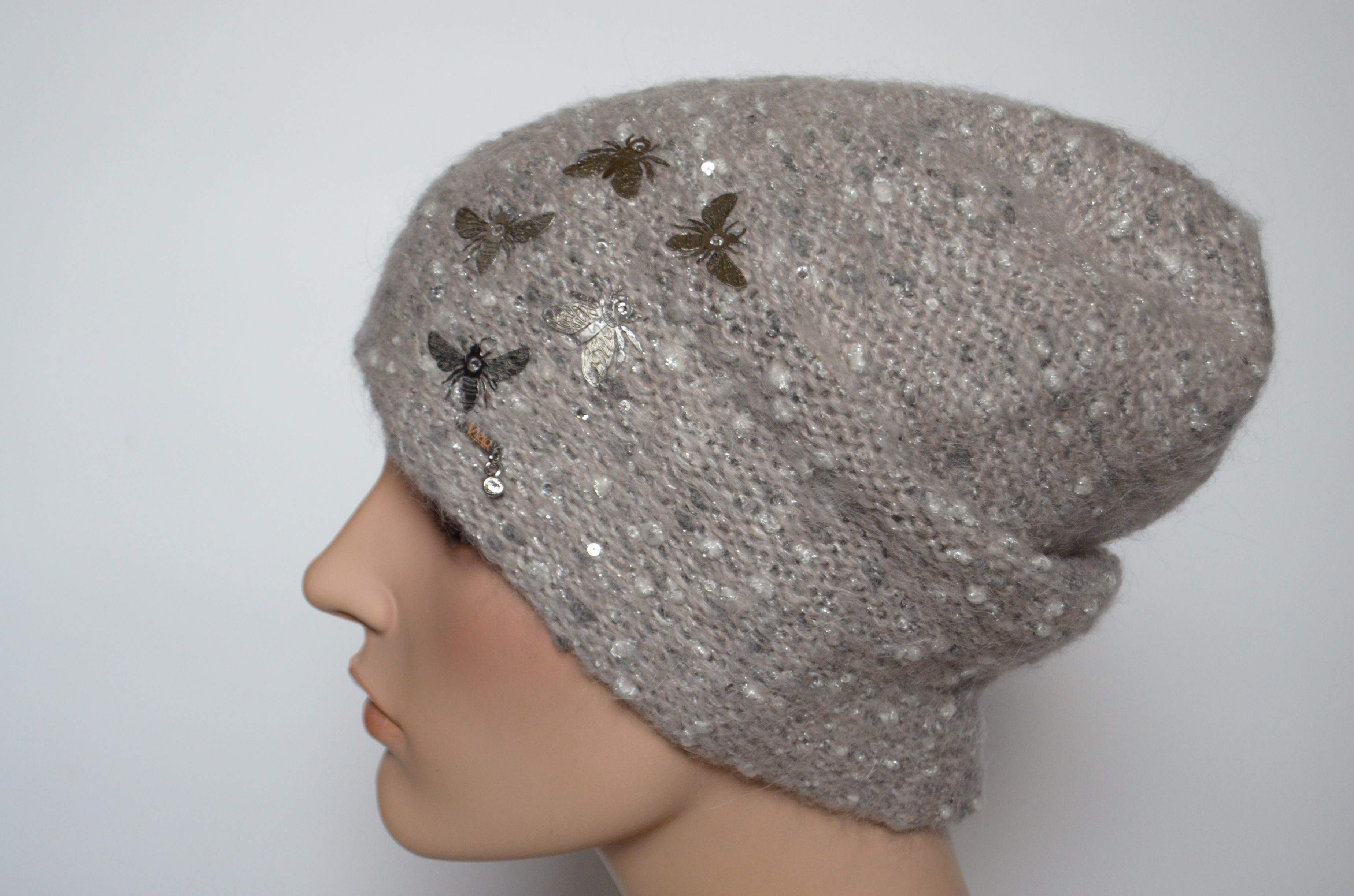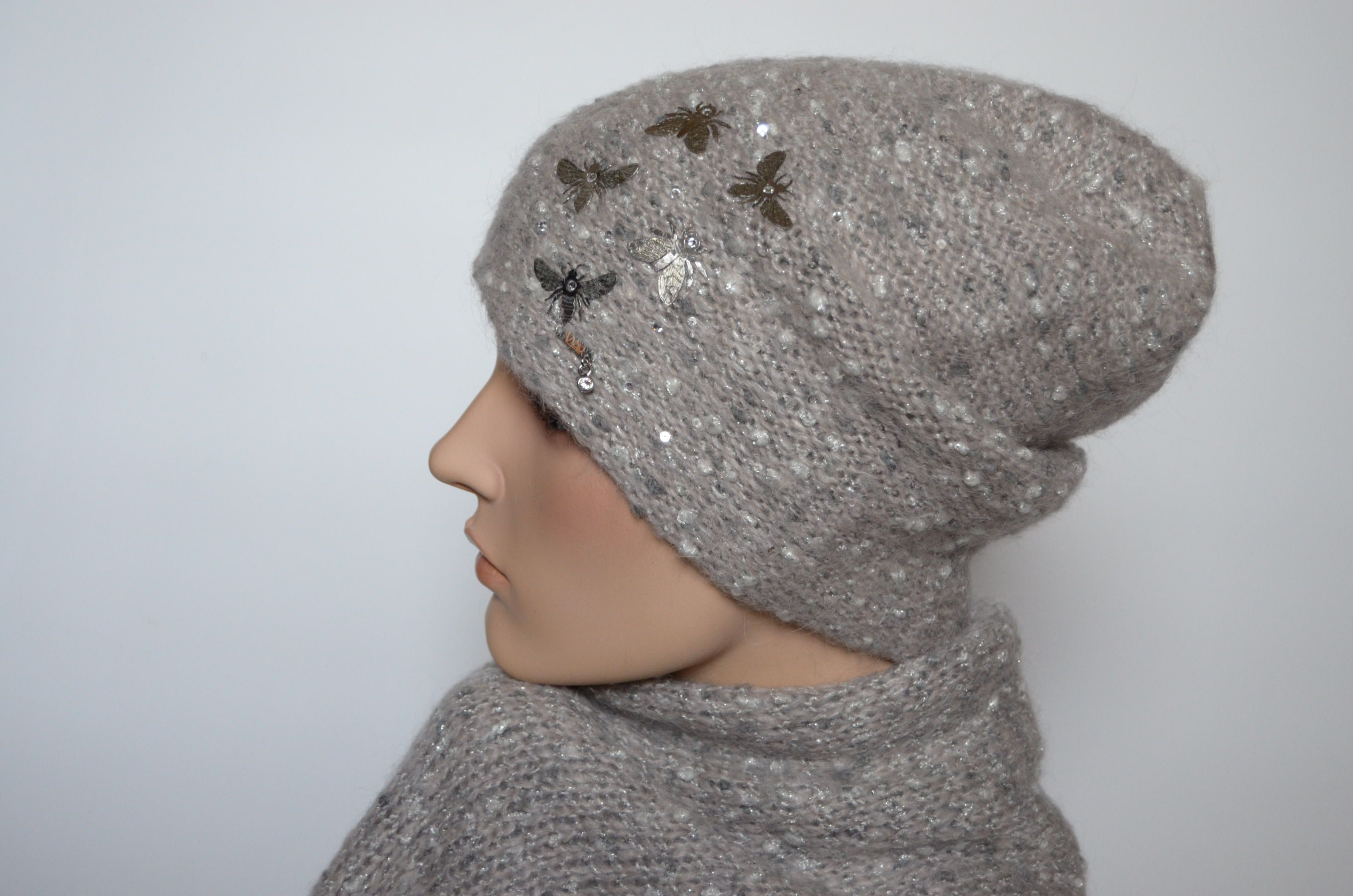 Итальянская вязаная шапка с бабочками Vizio Италия 6958 CL и шарф вязаный комплект 2021 - 2022 купить в Москве и России в интернет магазине вязаных головных уборов для женщин