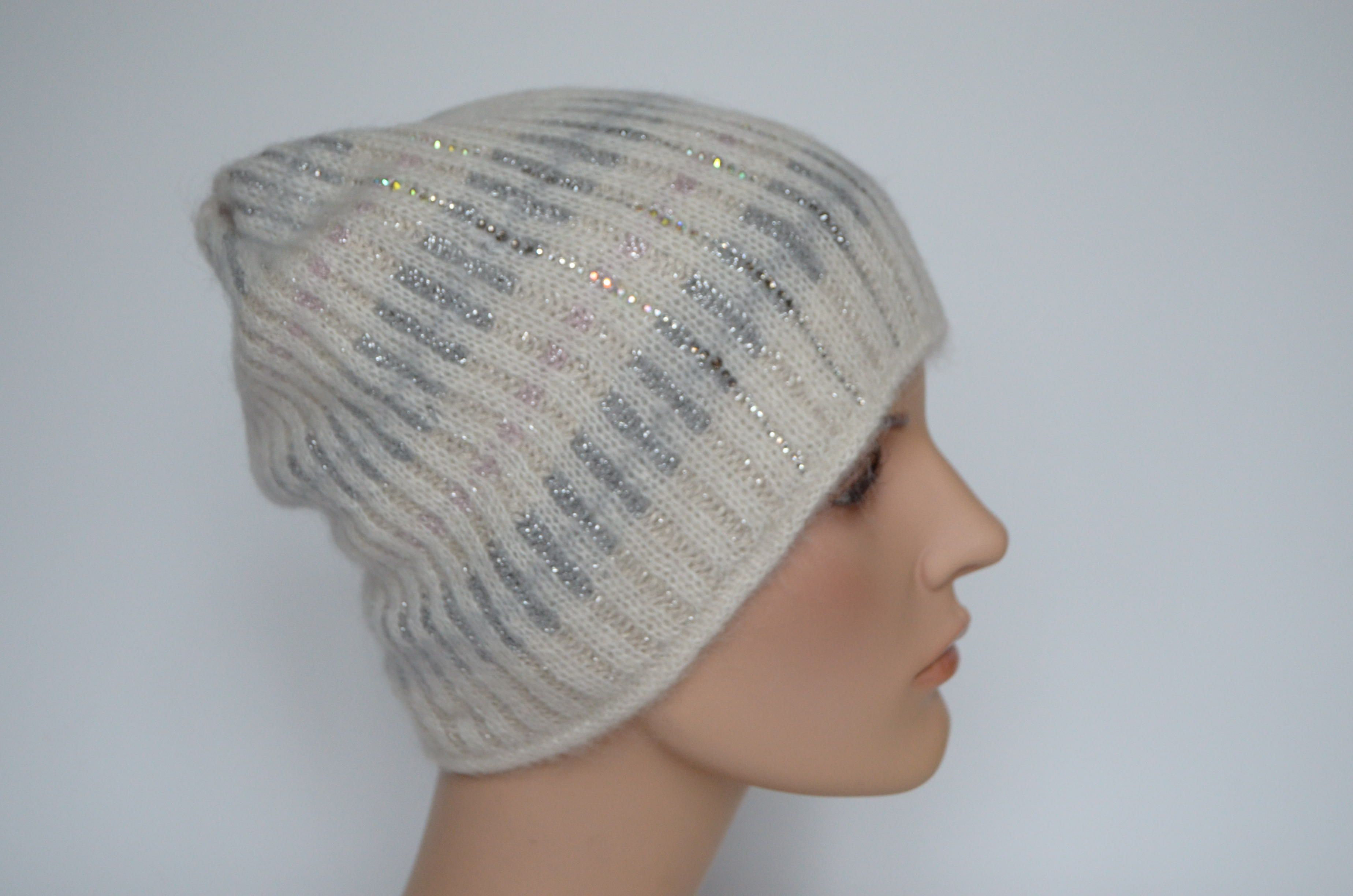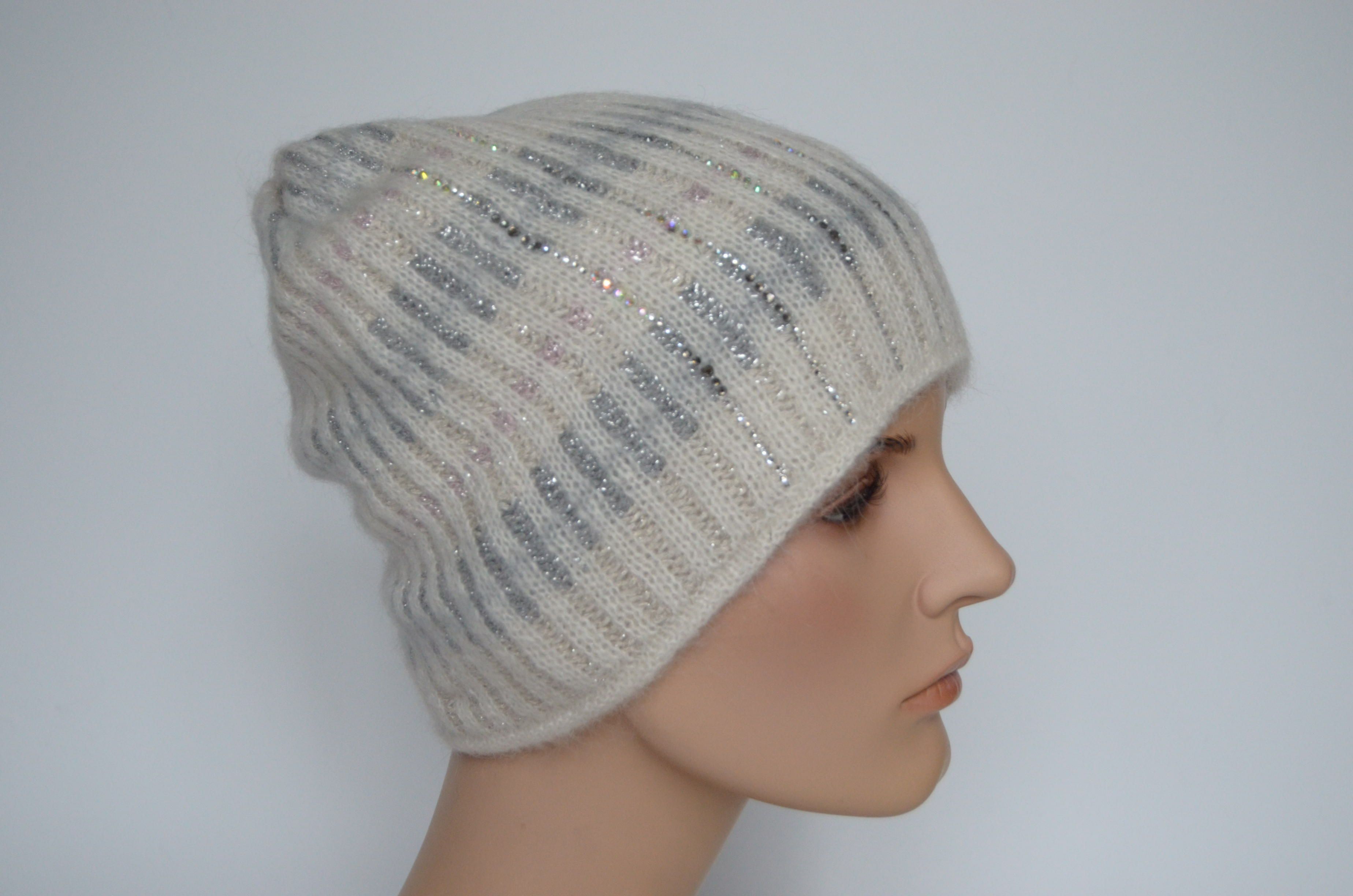 Итальянская вязаная белая шапка со стразами Vizio Италия 8007 CY зима 2022 - 2023 купить в Москве и России интернет магазин головных уборов Италии Визио