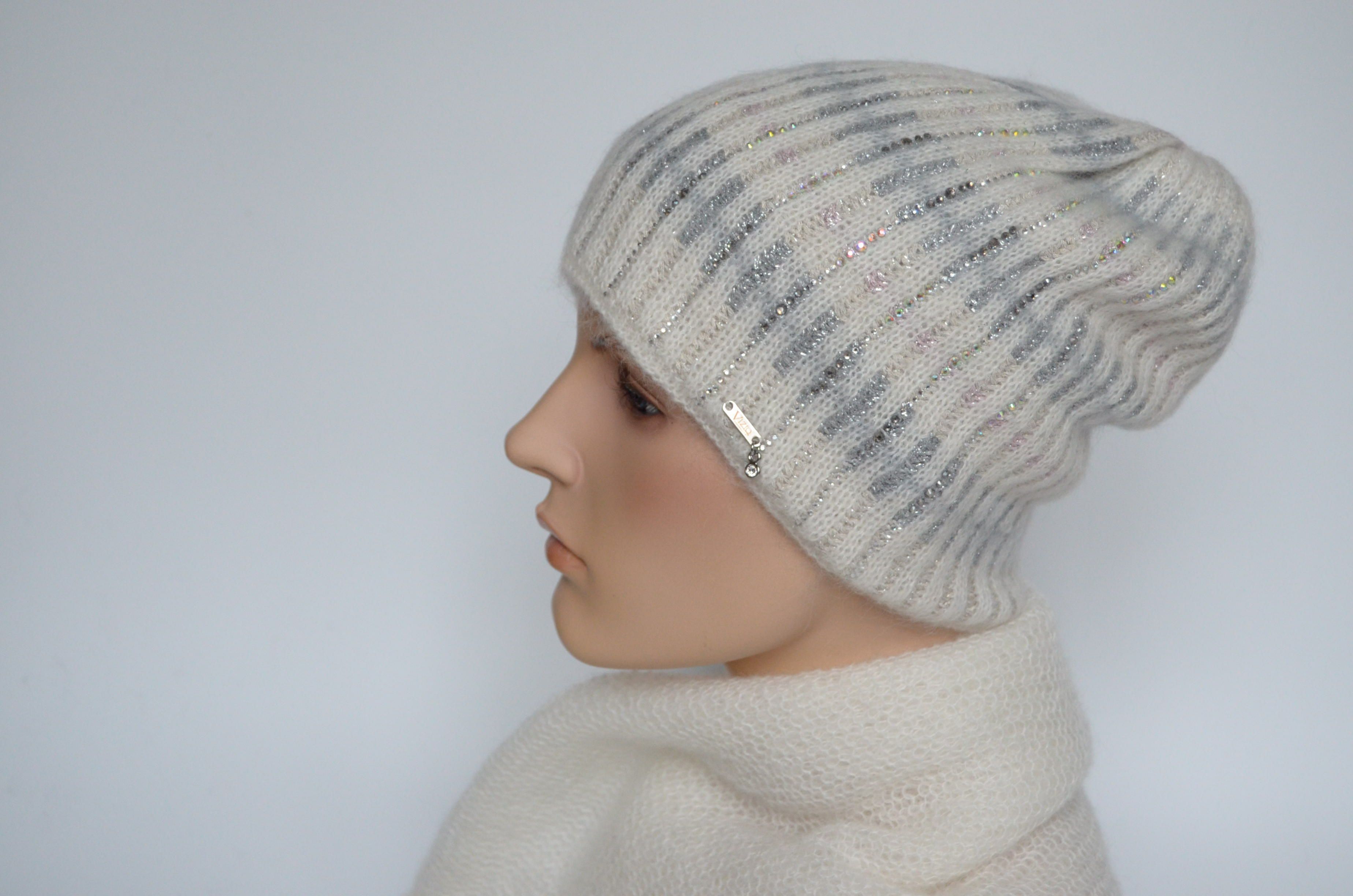 Приобрести женскую белую шапку со стразами Визио Италия зима 2023 вы можете в интернет магазине итальянских головных уборов для женщин в Москве и доставкой по России