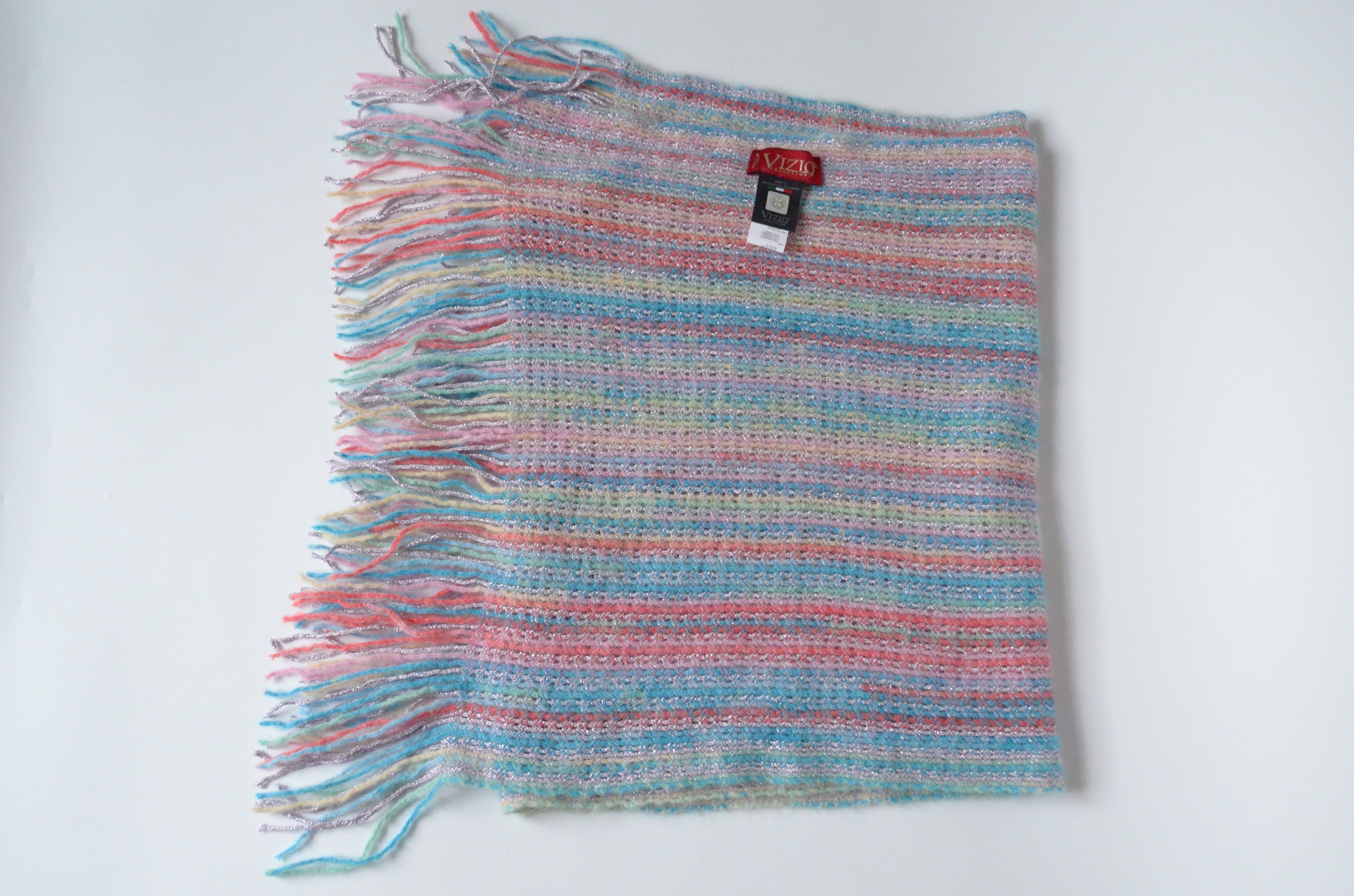 Разноцветный вязаный шарф палантин с бахромой Vizio Италия 8012 SSLFK купить в интернет магазине шарфов и головных уборов Италии Визио