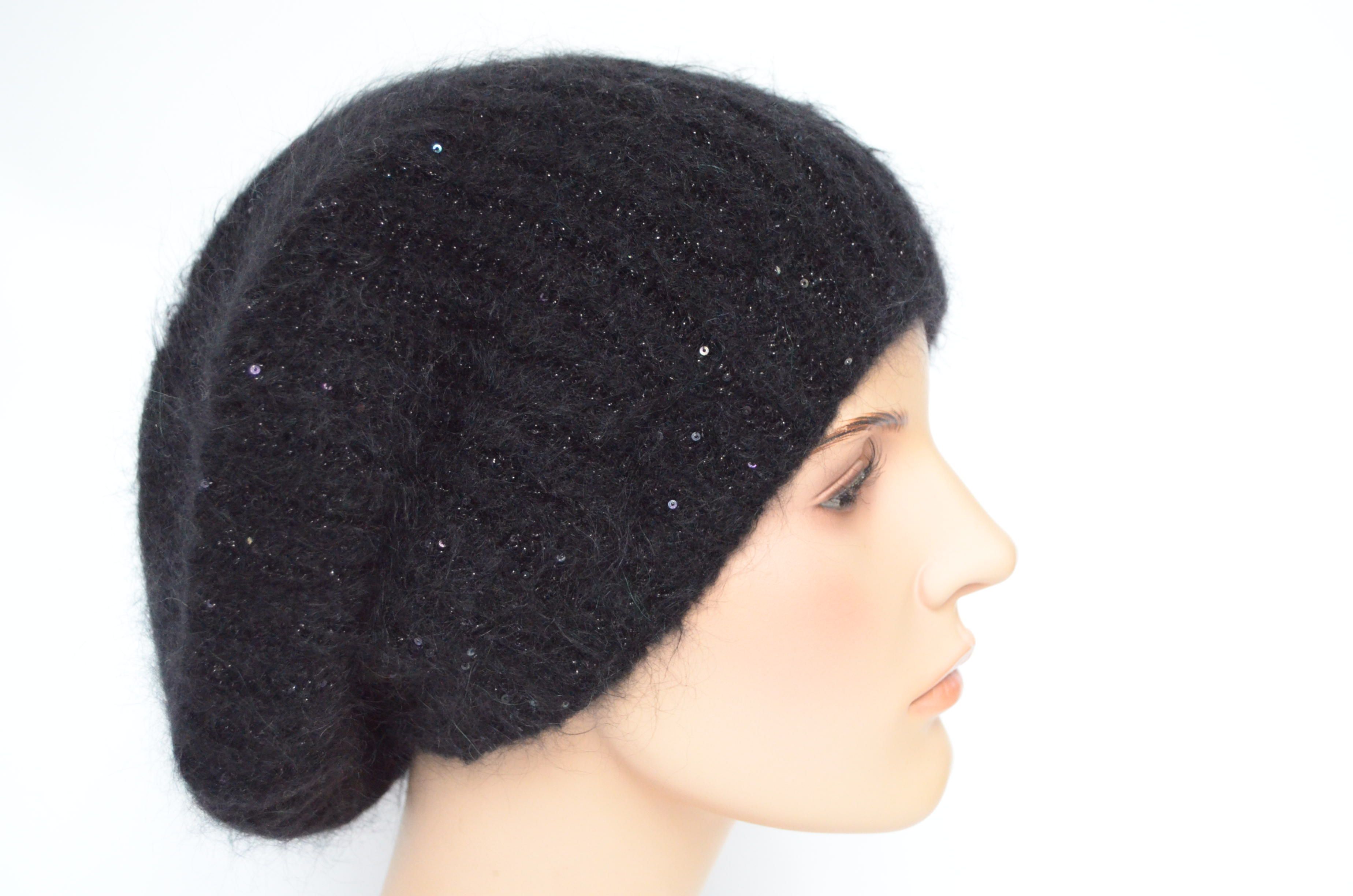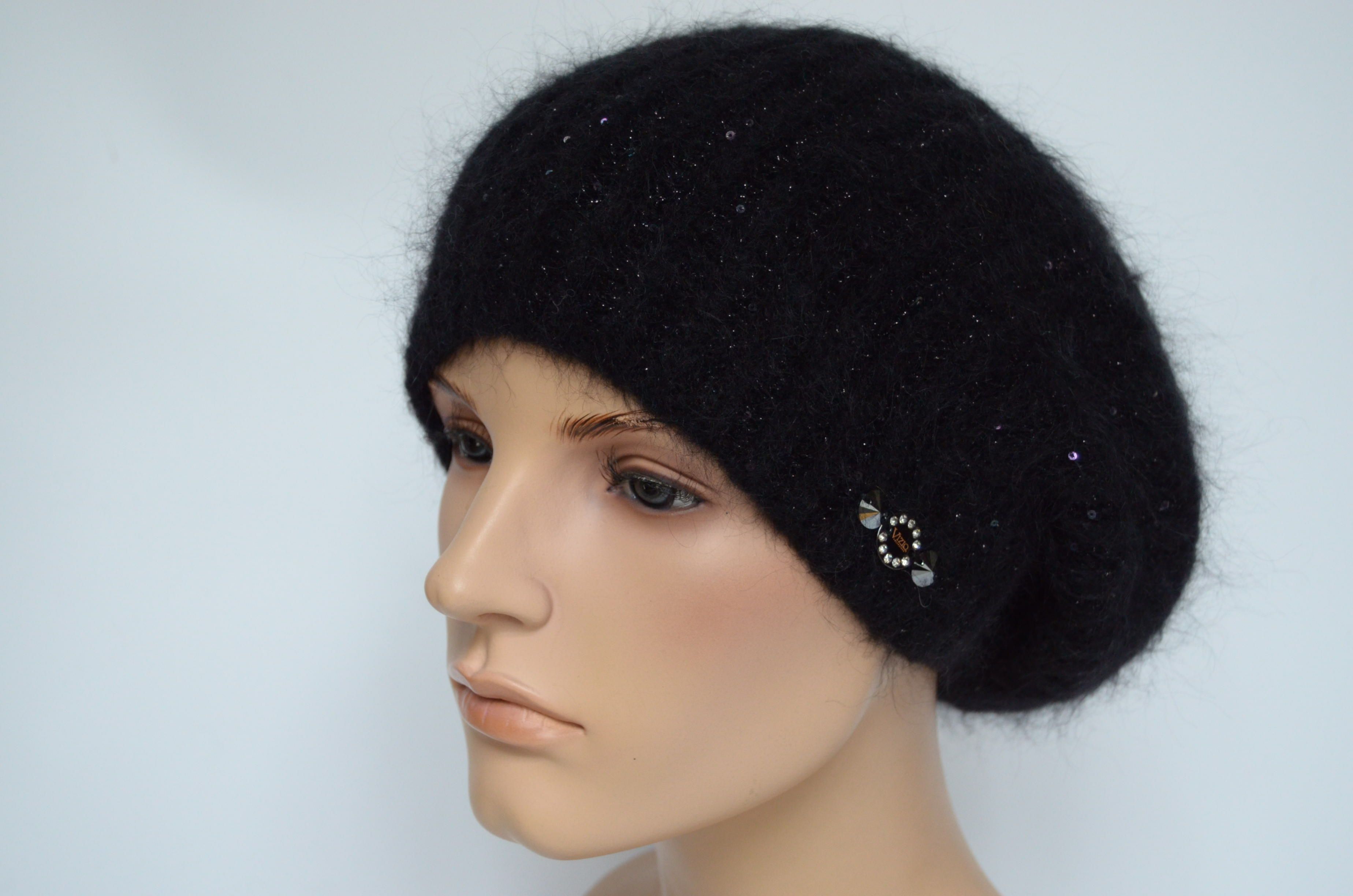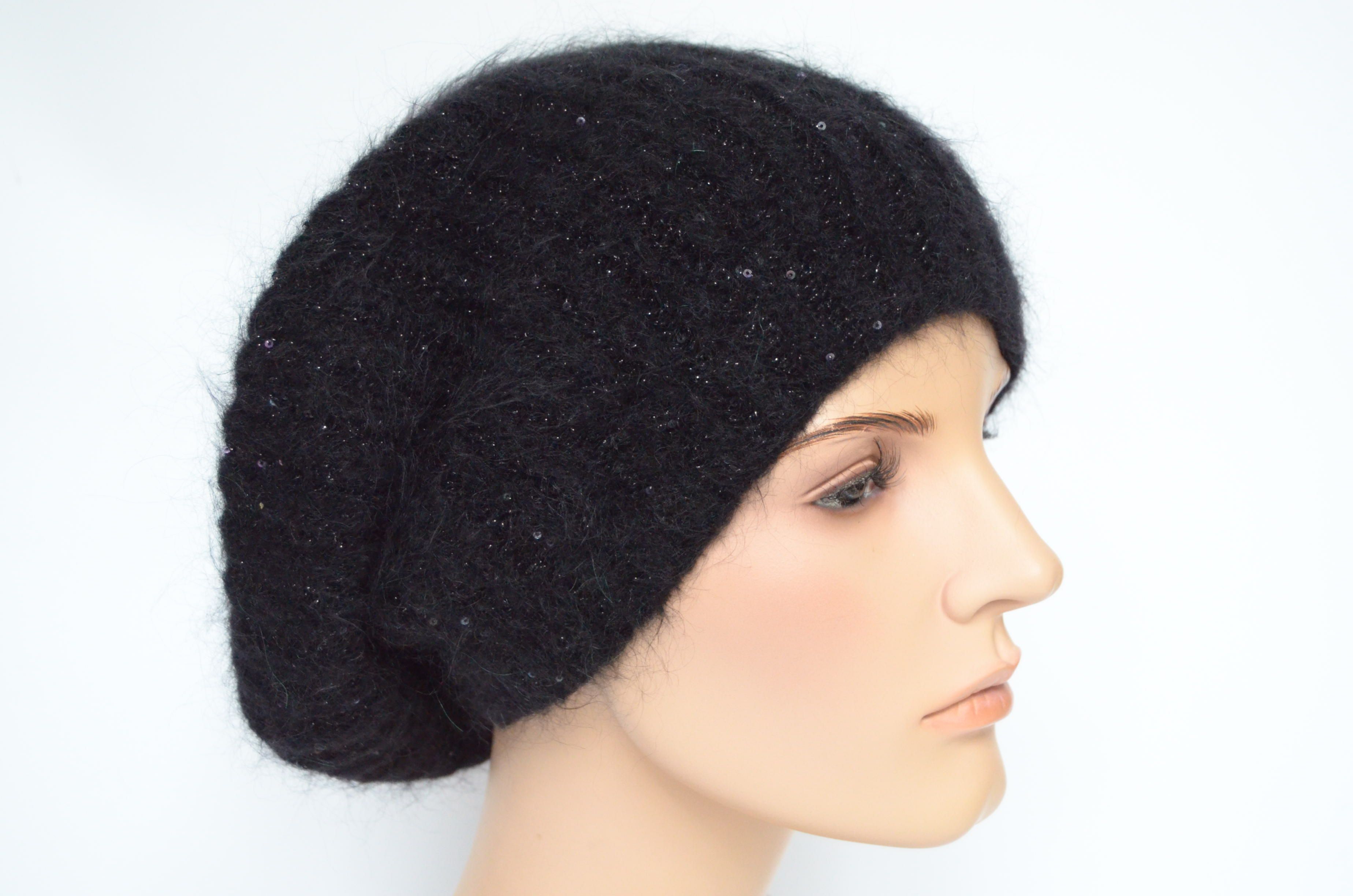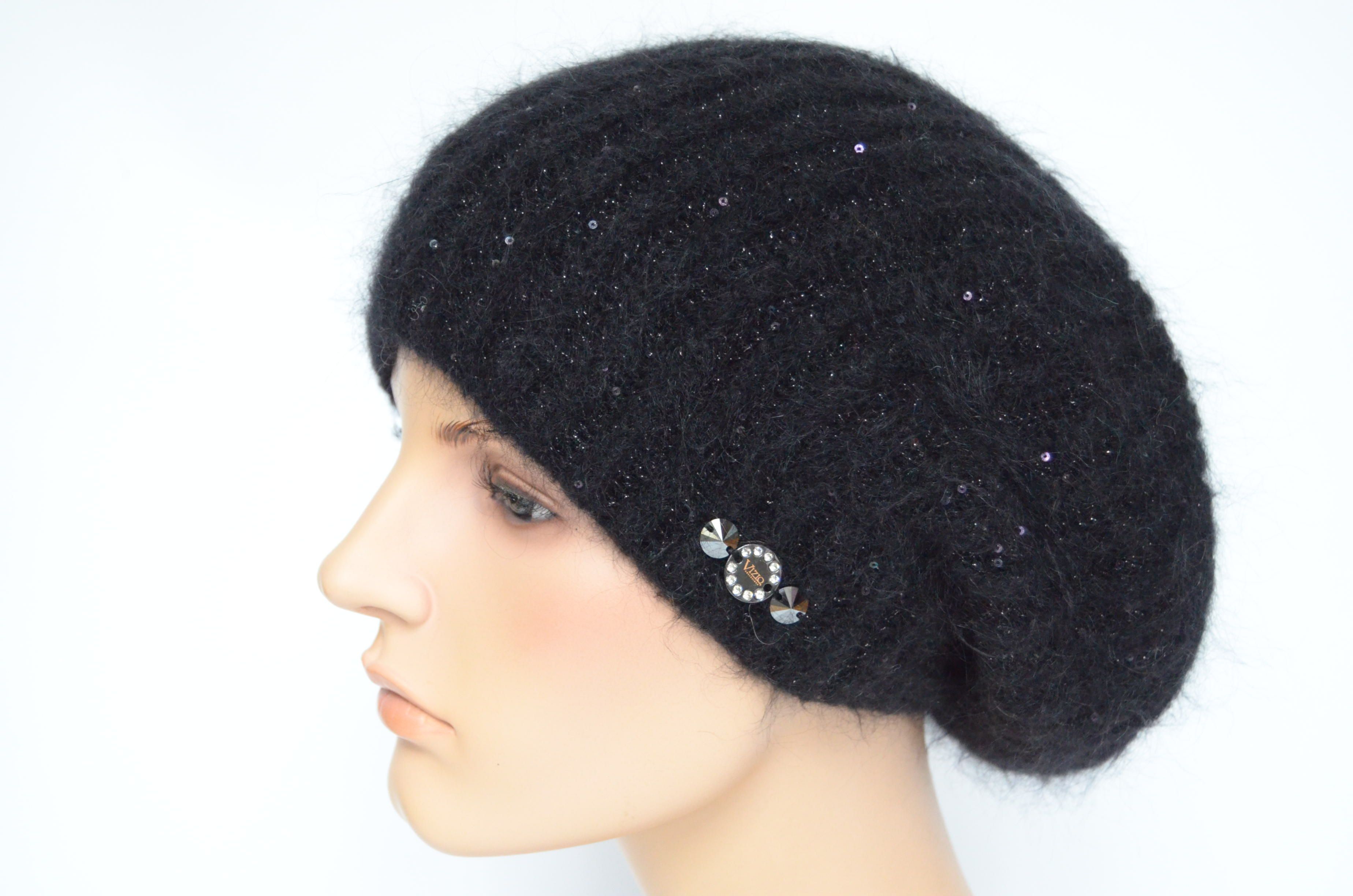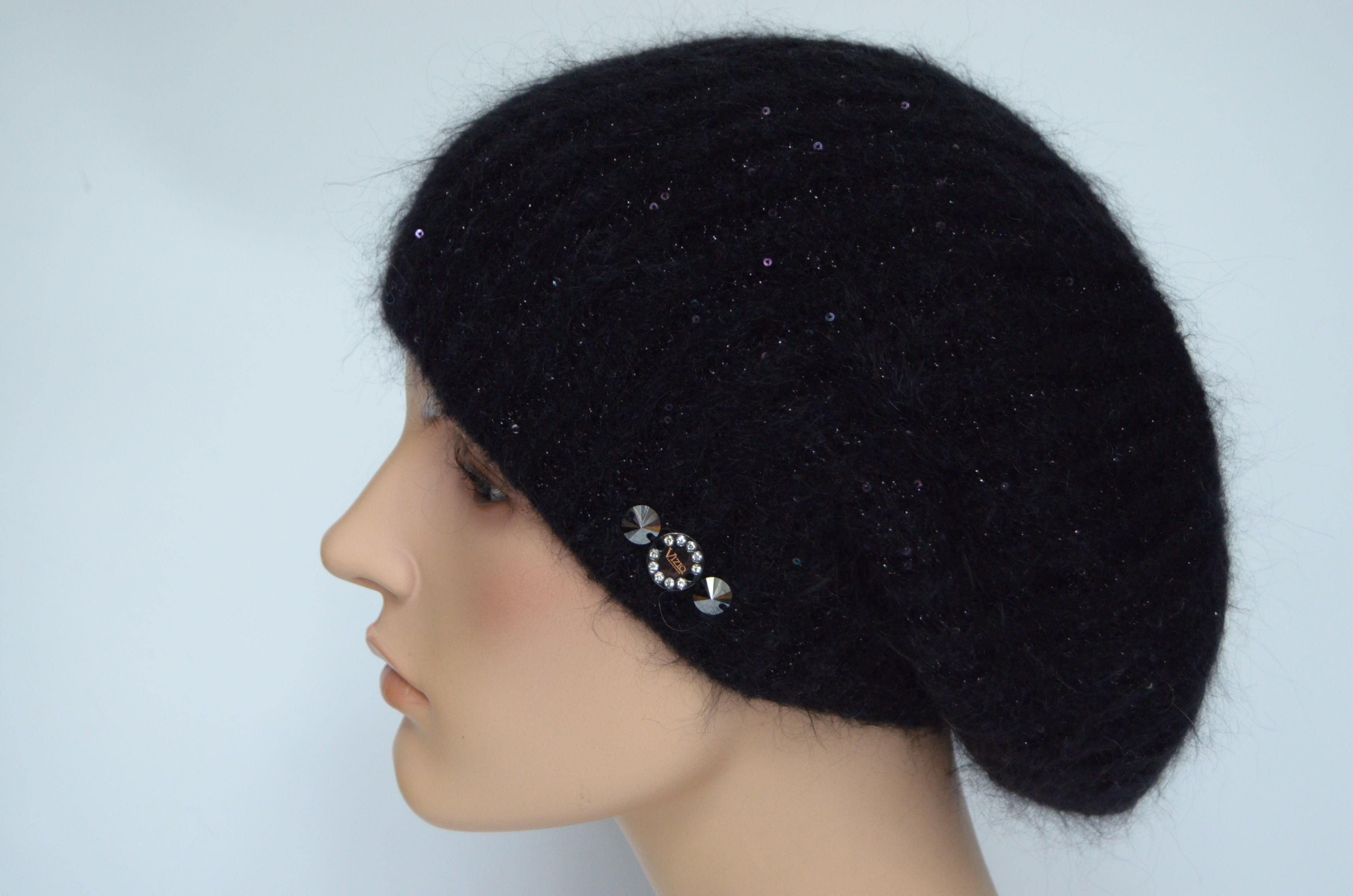 Купить черный зимний вязаный берет с пайетками Vizio Италия вы можете в интернет магазине итальянских шапок и беретов для женщин с доставкой по Москве и России