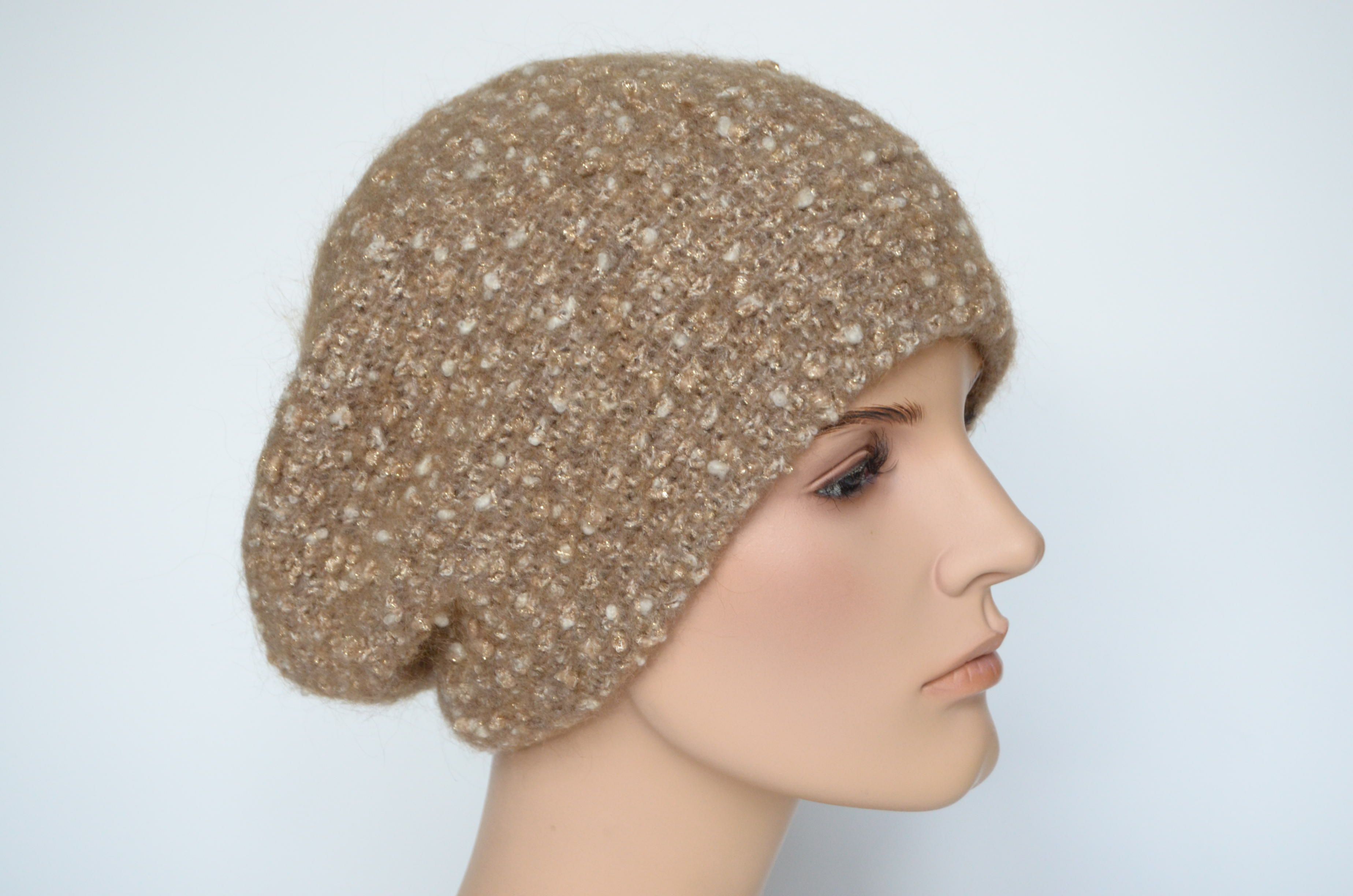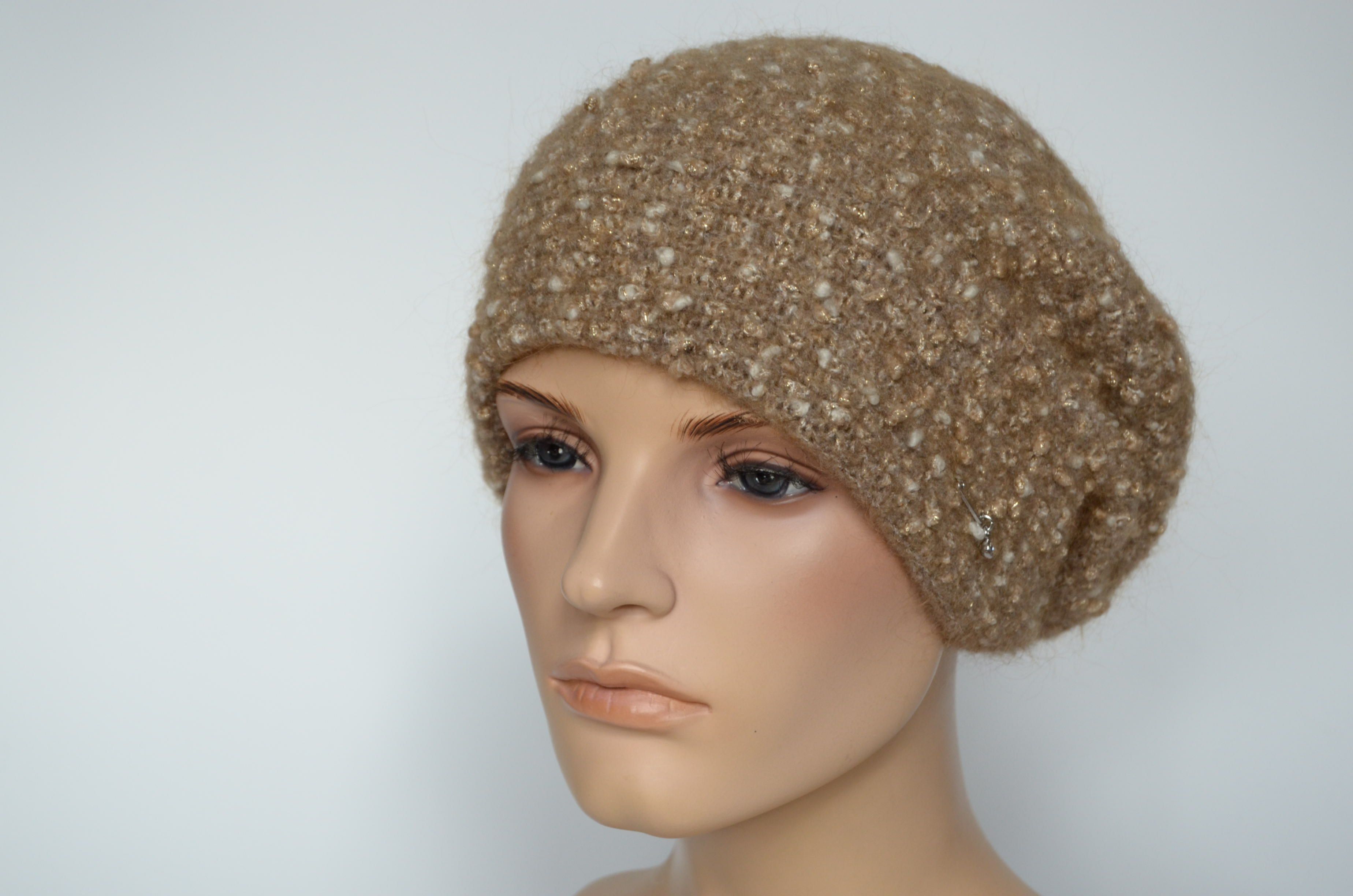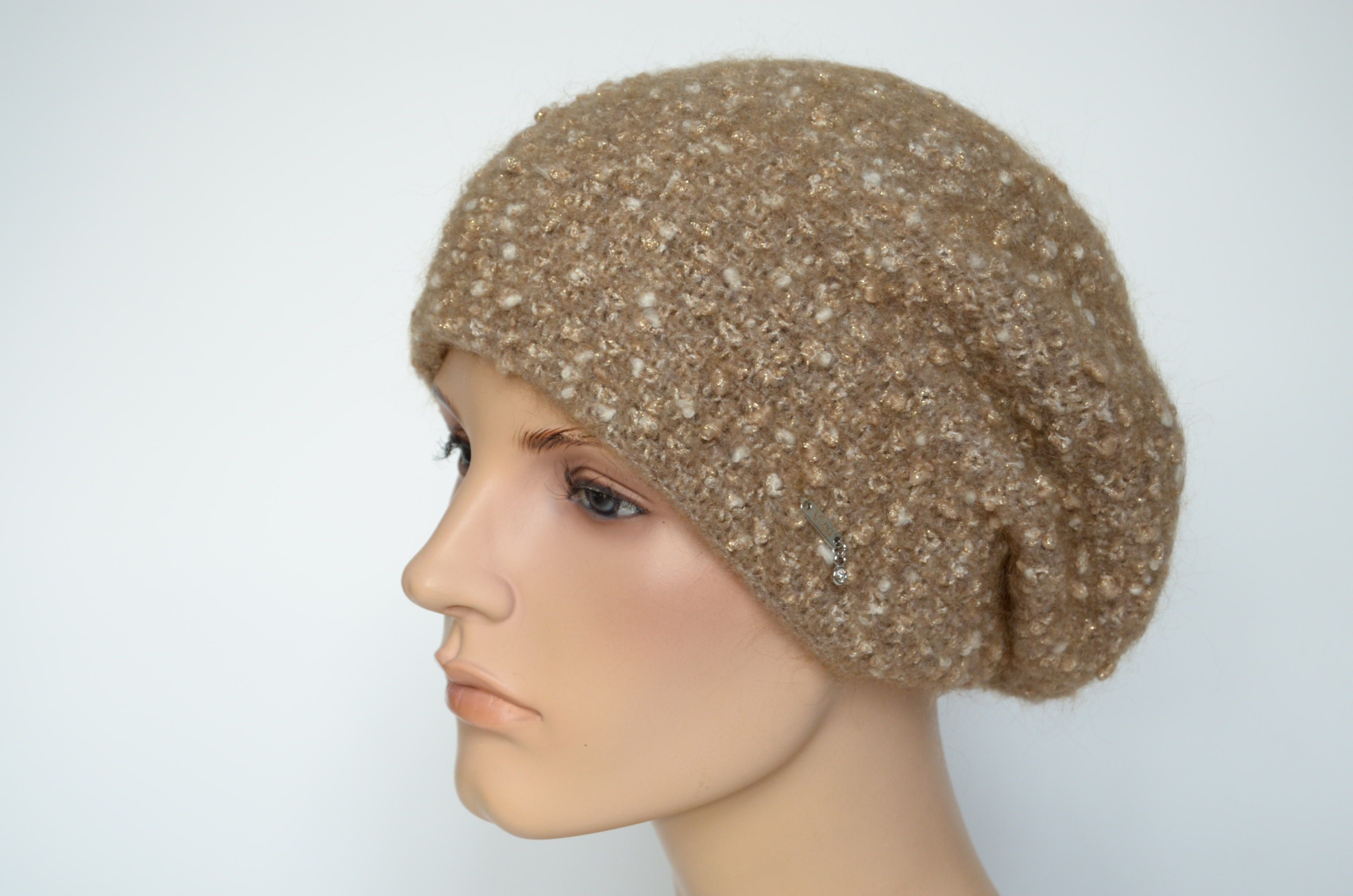 Купить светло - коричневый женский берет из шерсти мериноса Вы можете в магазине вязаных головных уборов Италии Vizio Collezione в Москве или с доставкой на сайте интернет магазина модных итальянских беретов и шапок Vizio с доставкой по России