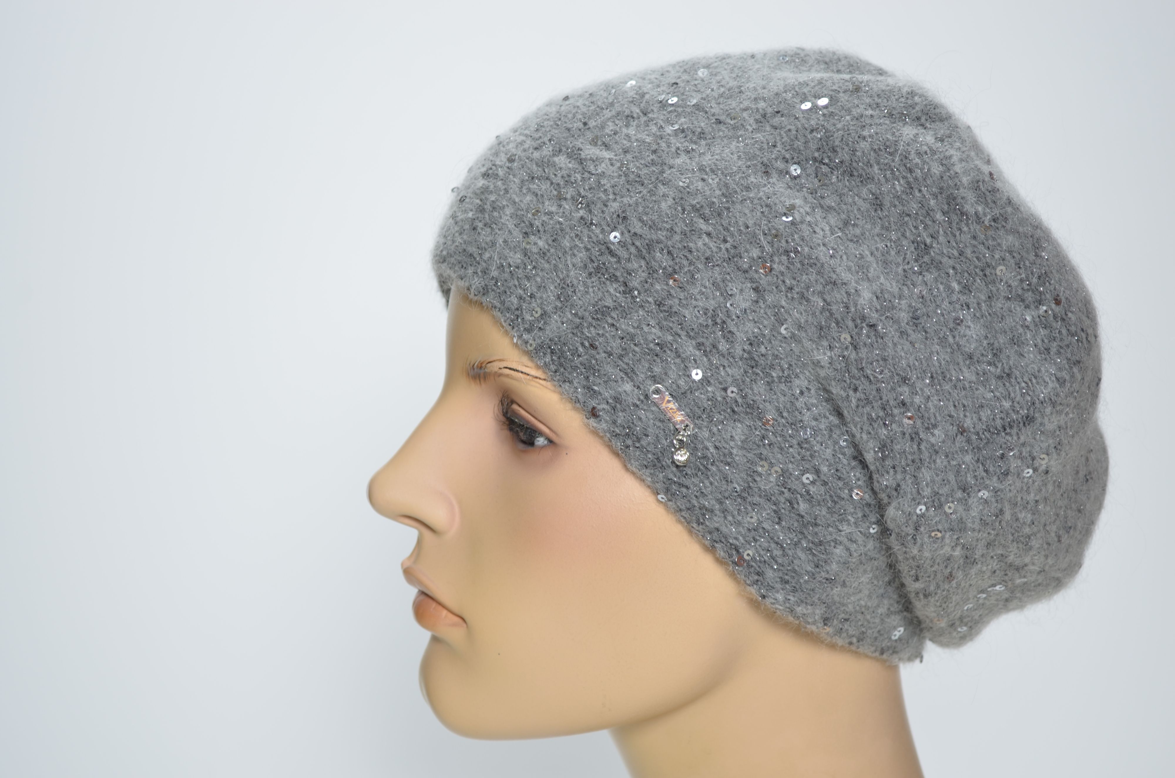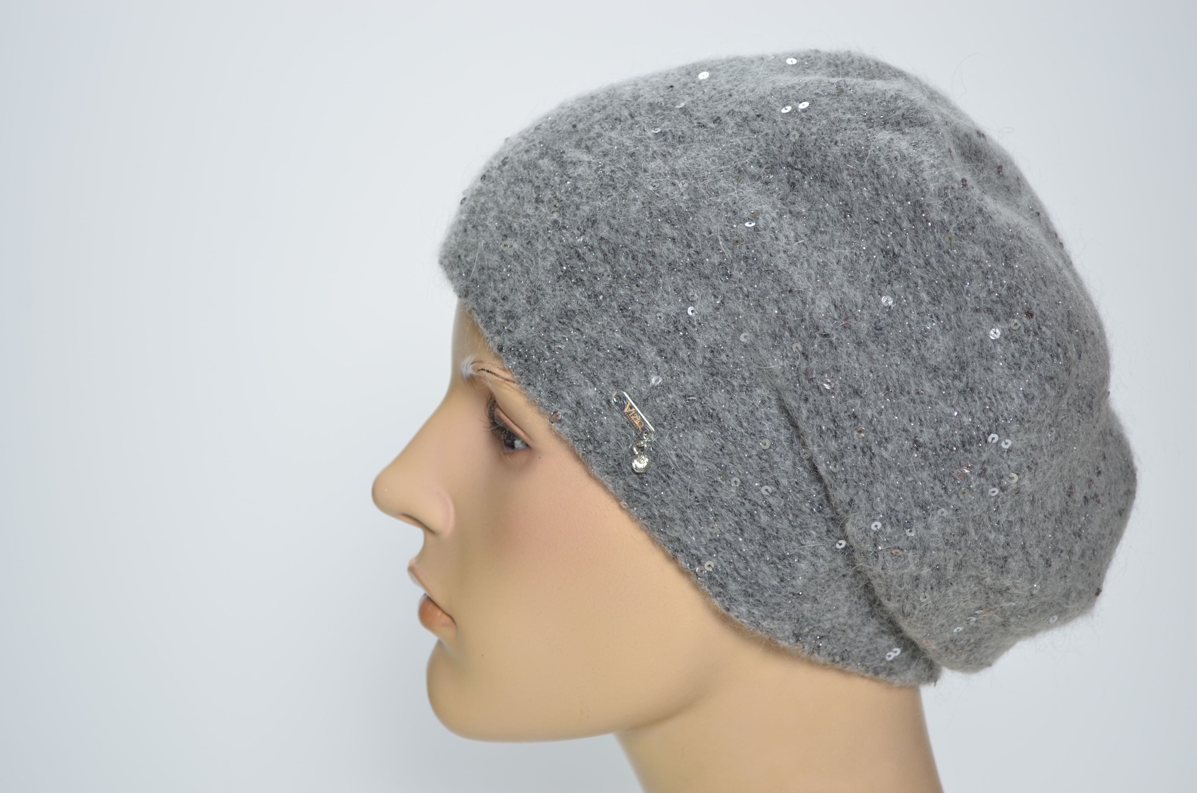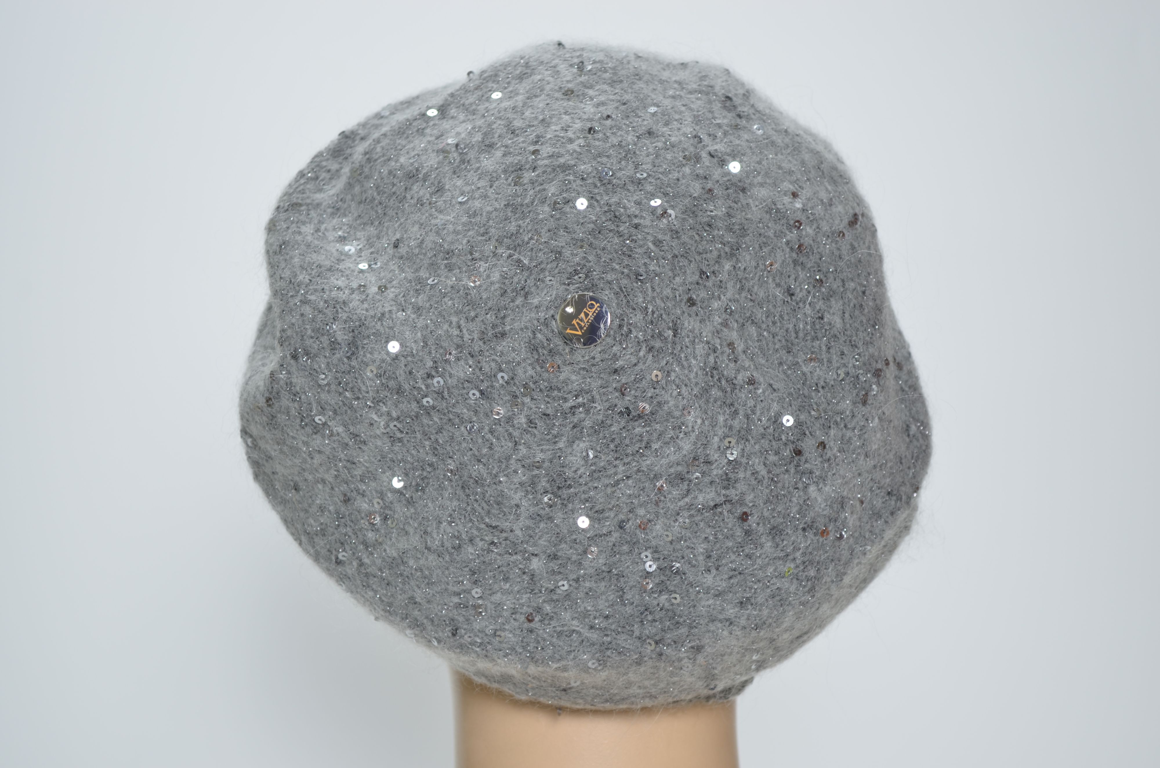 Классическая модель берета с пайетками Vizio Collezione серого цвета аналог предыдущих коллекций Визио 6943 , 1042 и более ранних беретов, шапок. кепок. шляп и шарфов Вицио с пайетками