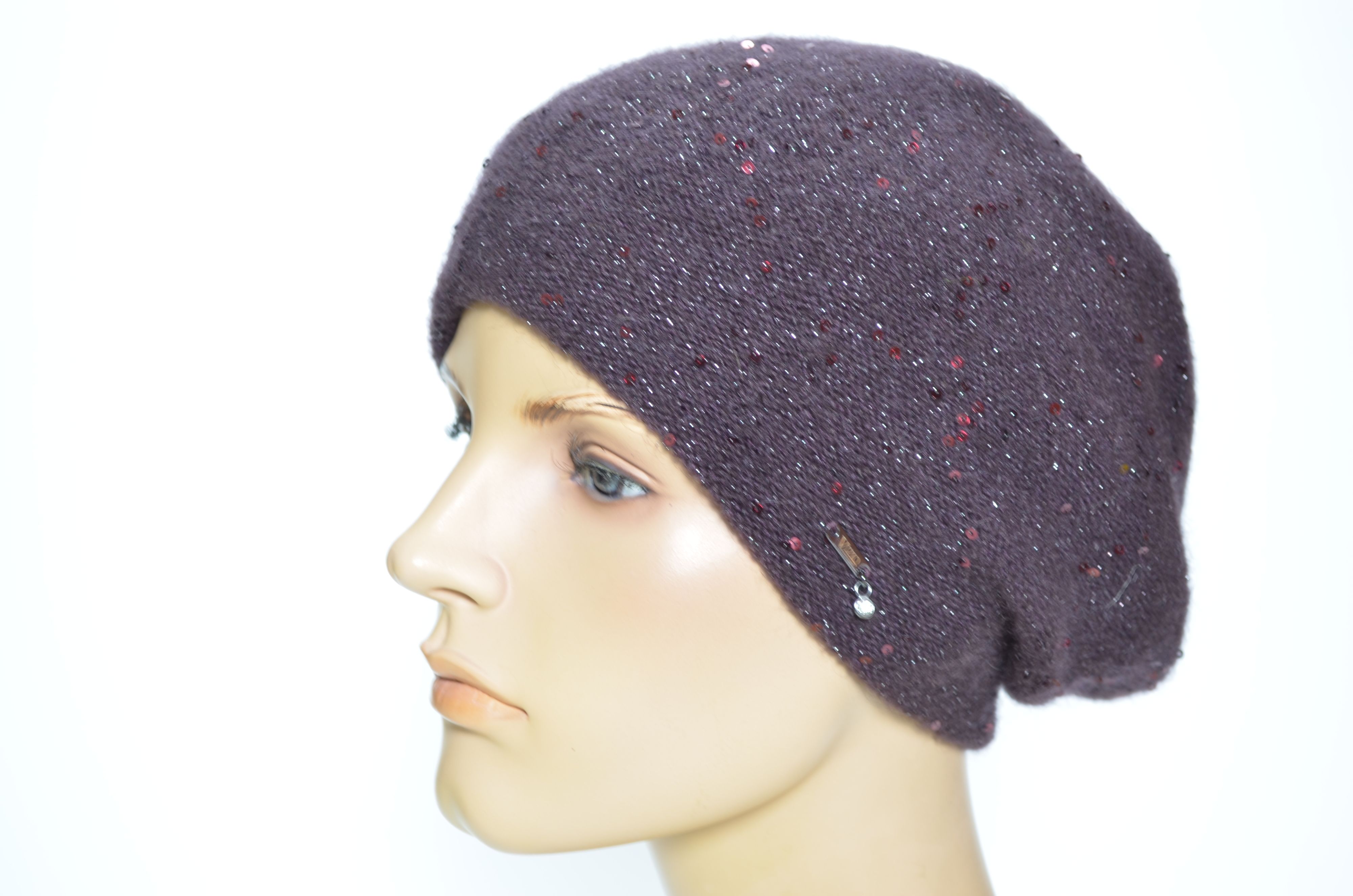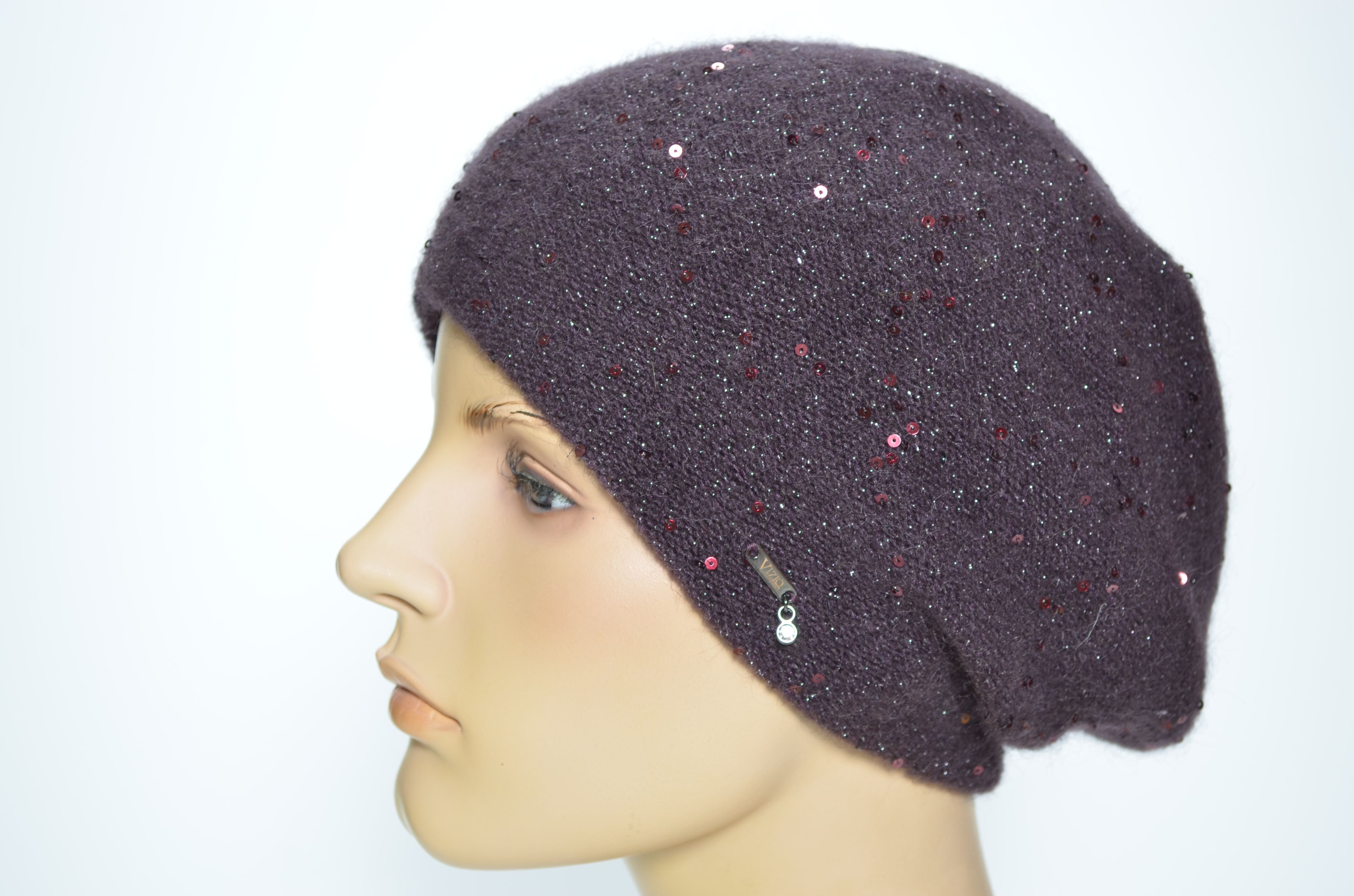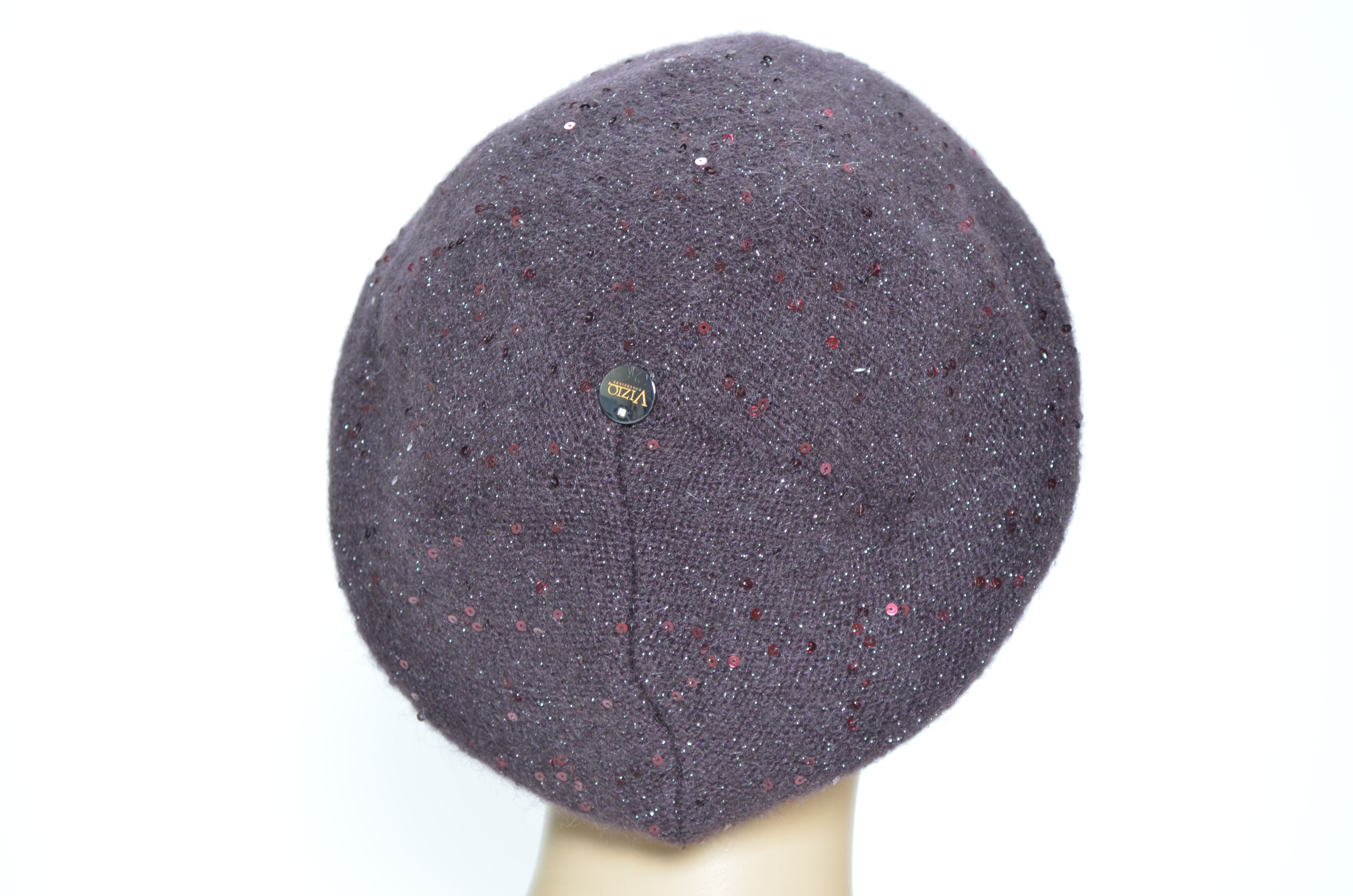 Классическая модель берета с пайетками Vizio Collezione сливового цвета аналог предыдущих коллекций Визио 6943 , 1042 и более ранних беретов, шапок. кепок. шляп и шарфов Вицио с пайетками