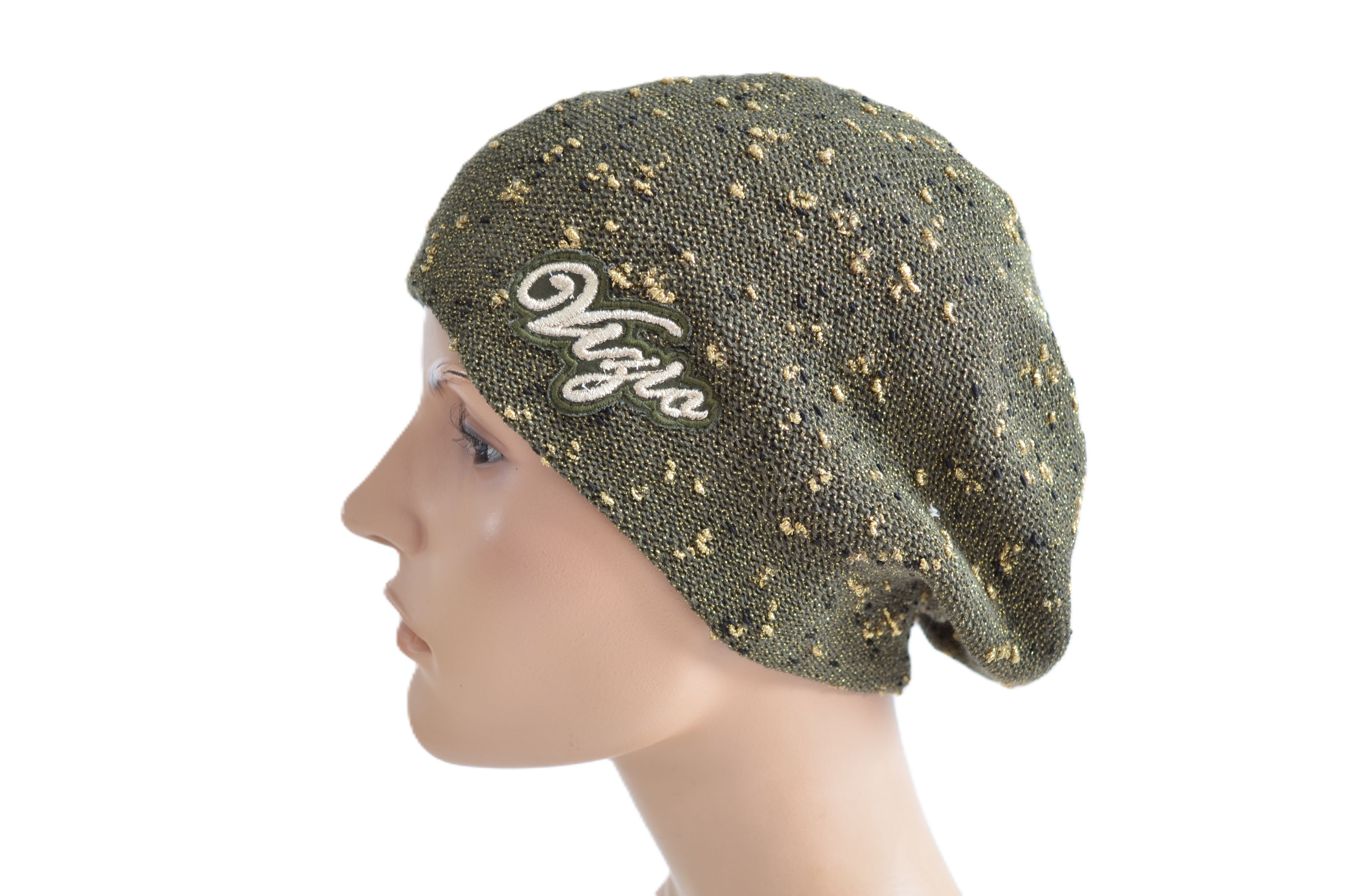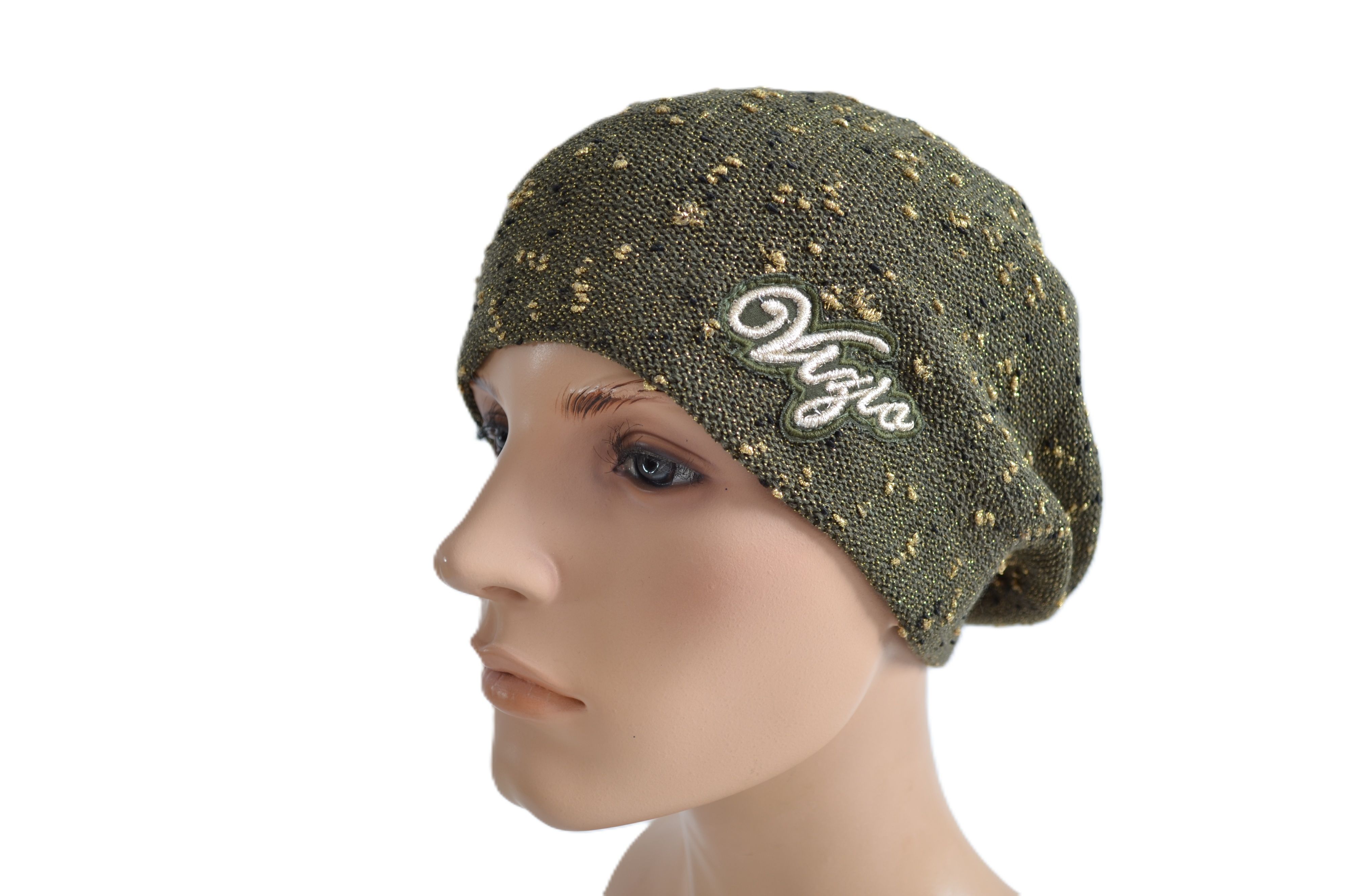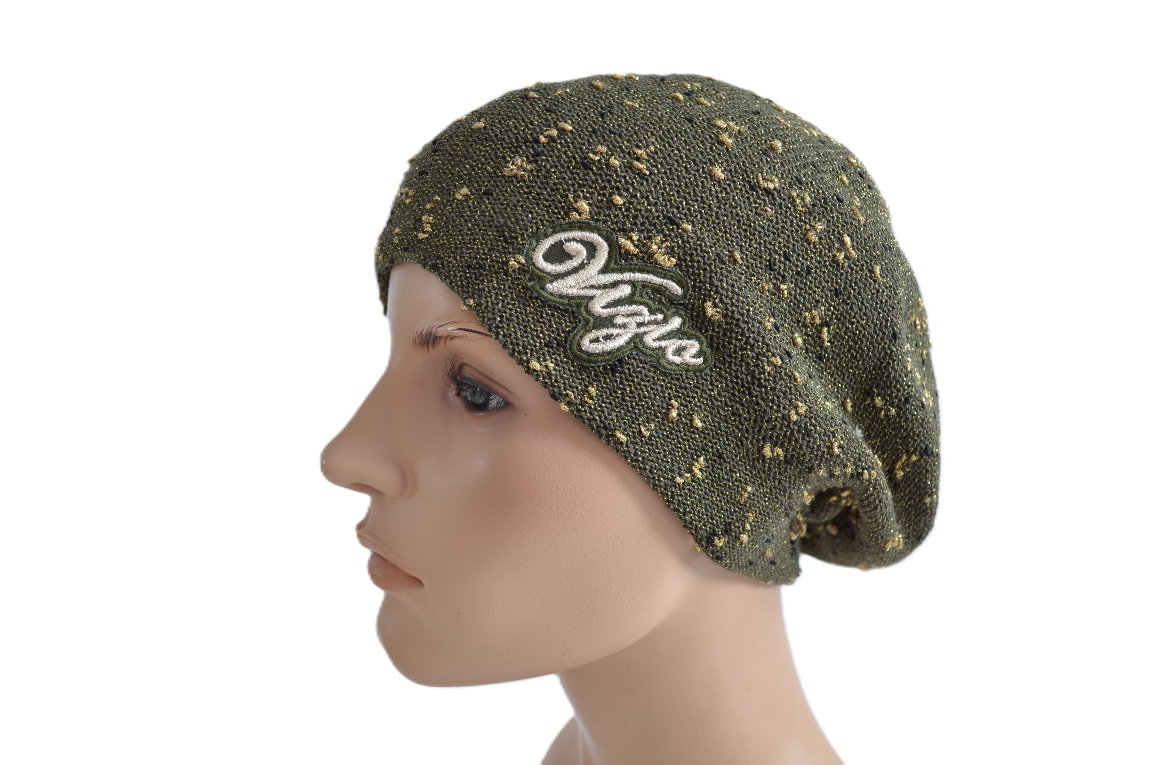 Женский хлопковый итальянский берет цвета хаки на весну - лето - осень вязаный из хлопка Vizio 1515 B коллекция головных уборов Италии Вицио 2025 года