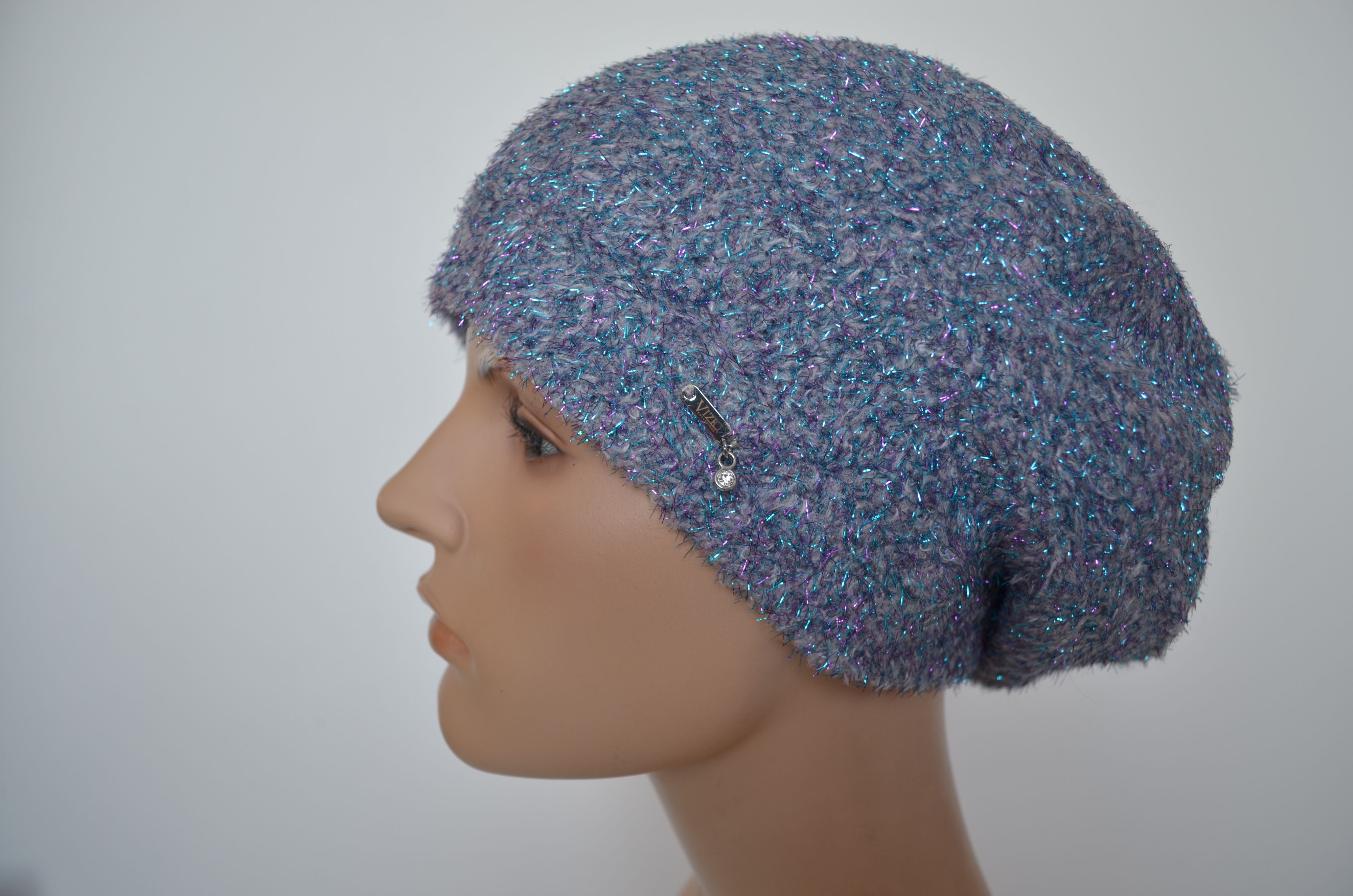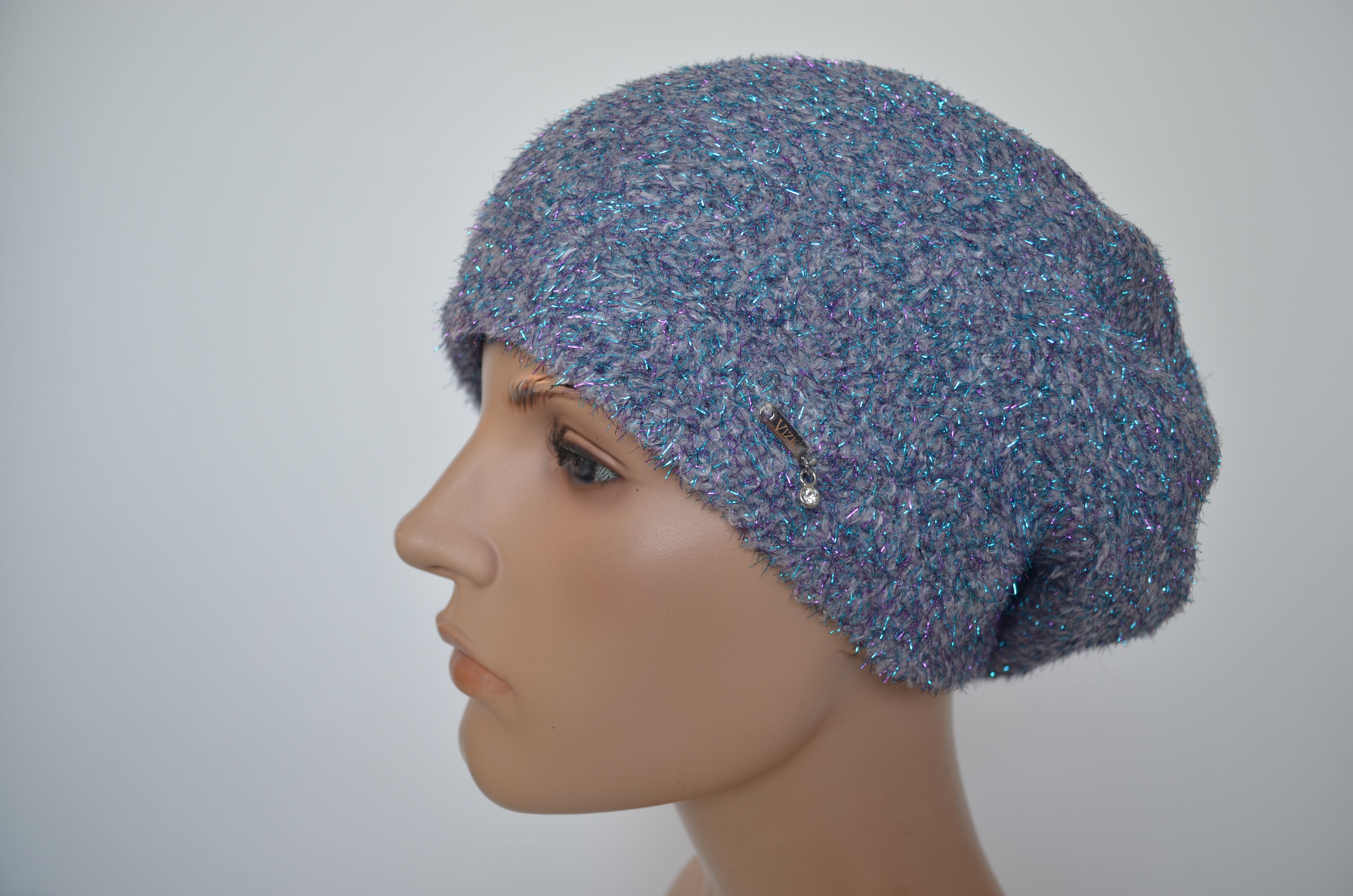 Берет с блестками Vizio Италия 1627 светло серого голубого цвета из новой коллекции зимних беретов бренда головных уборов Италии Vizio Collezione