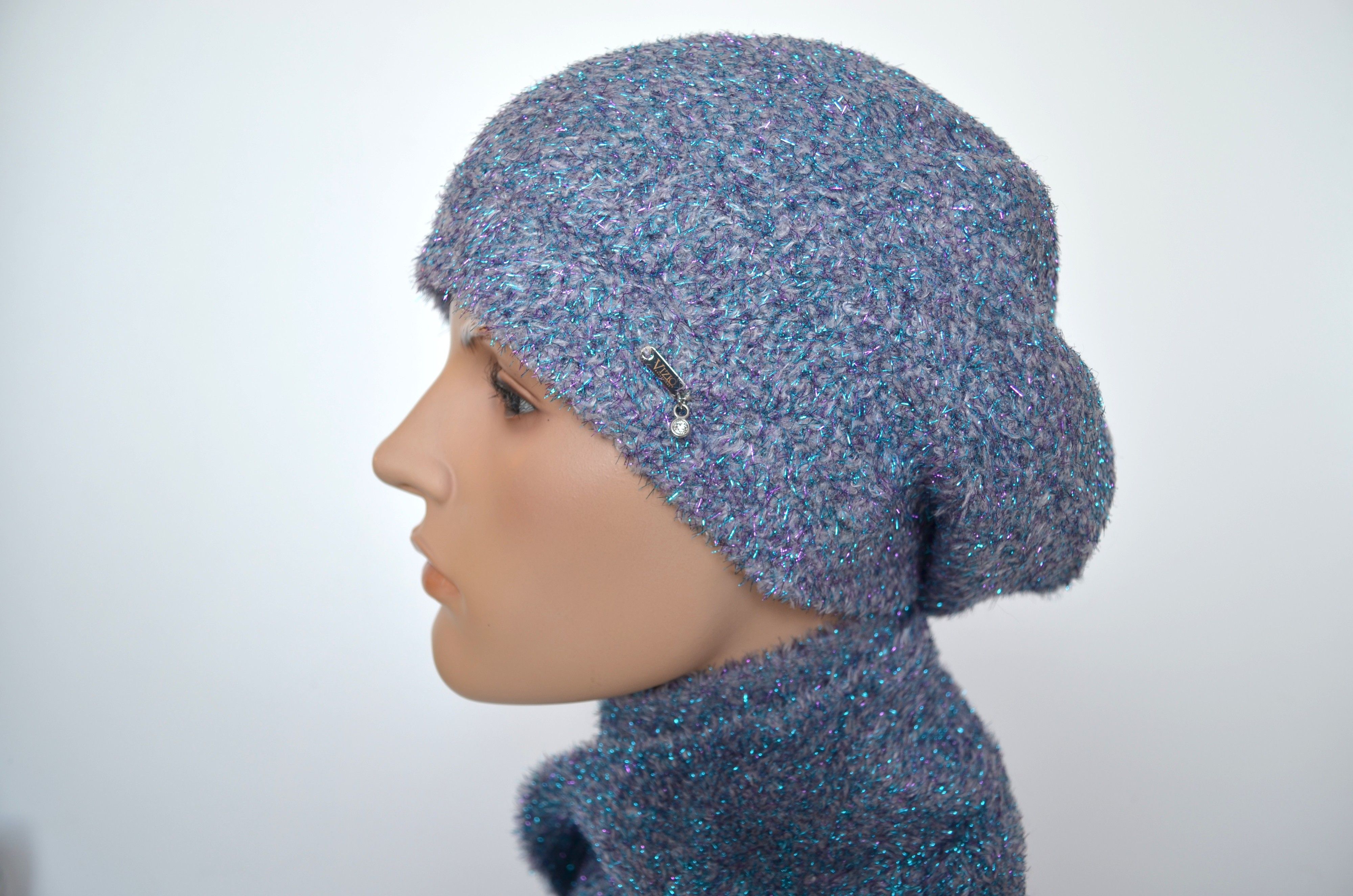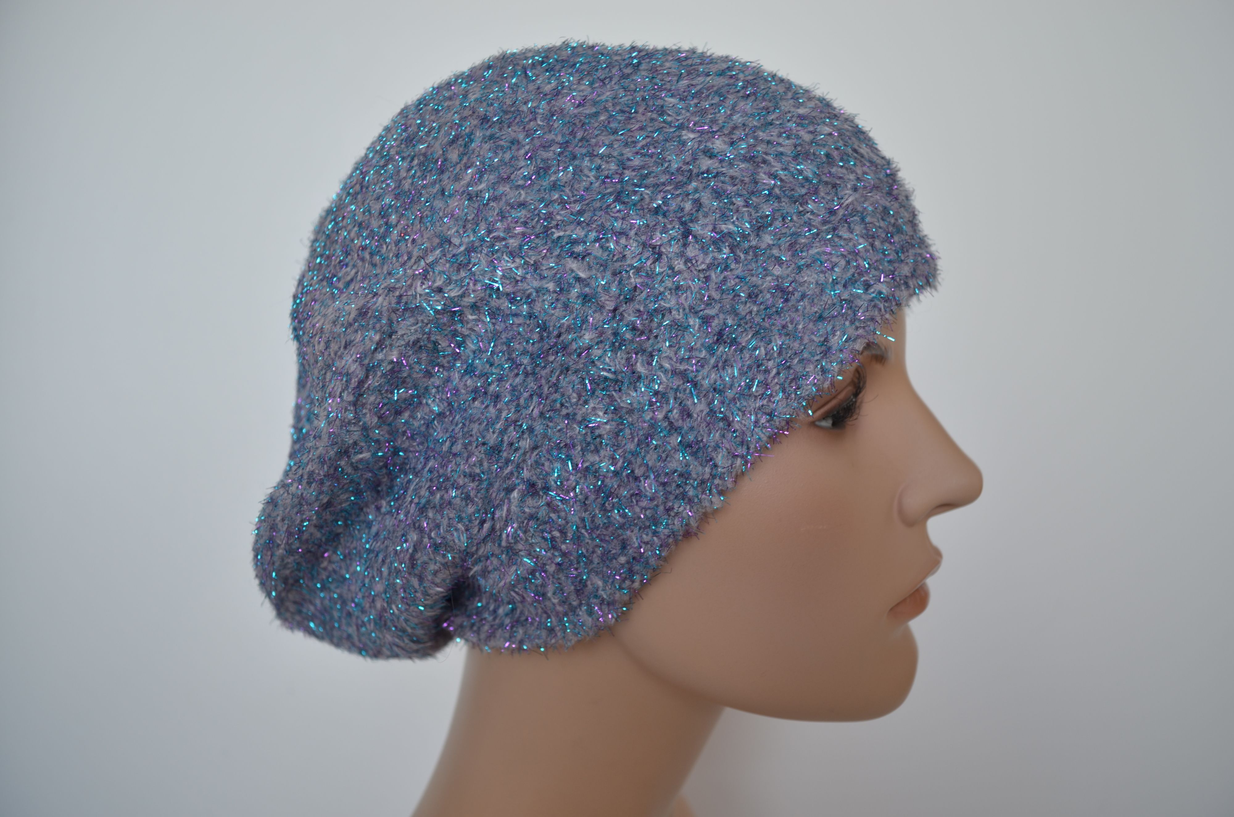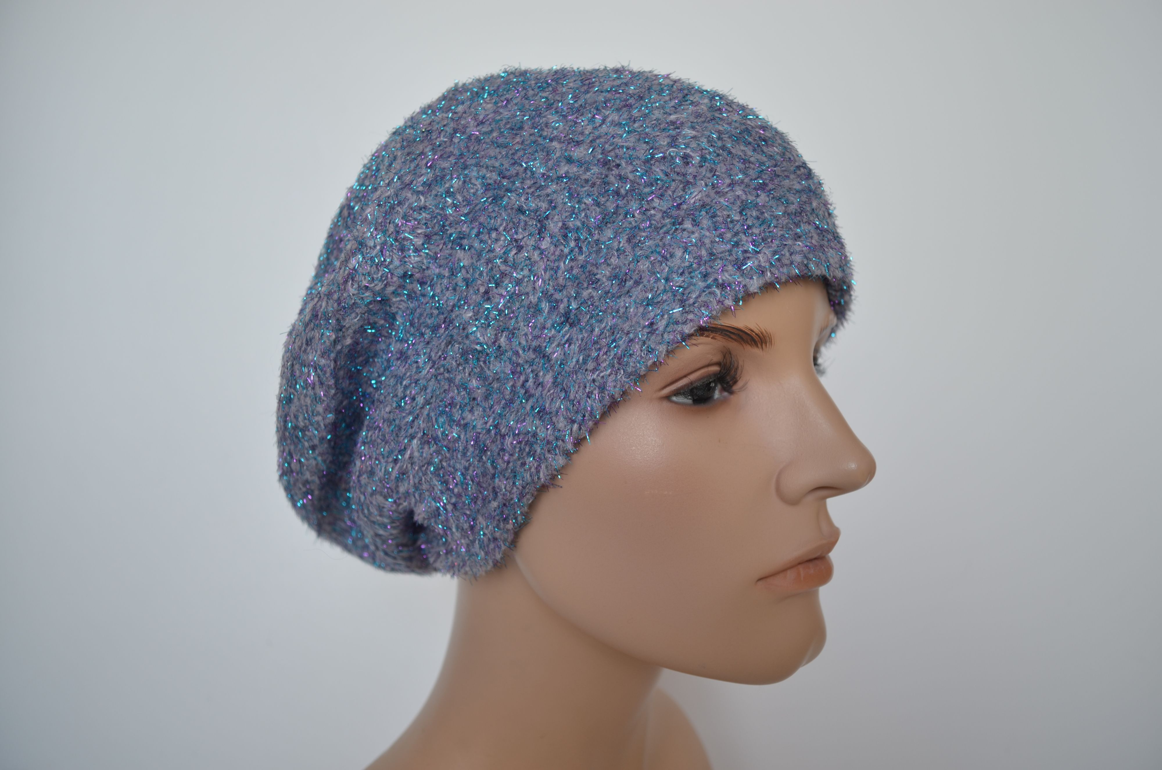 Женский голубой светло серый берет зимний с блестками