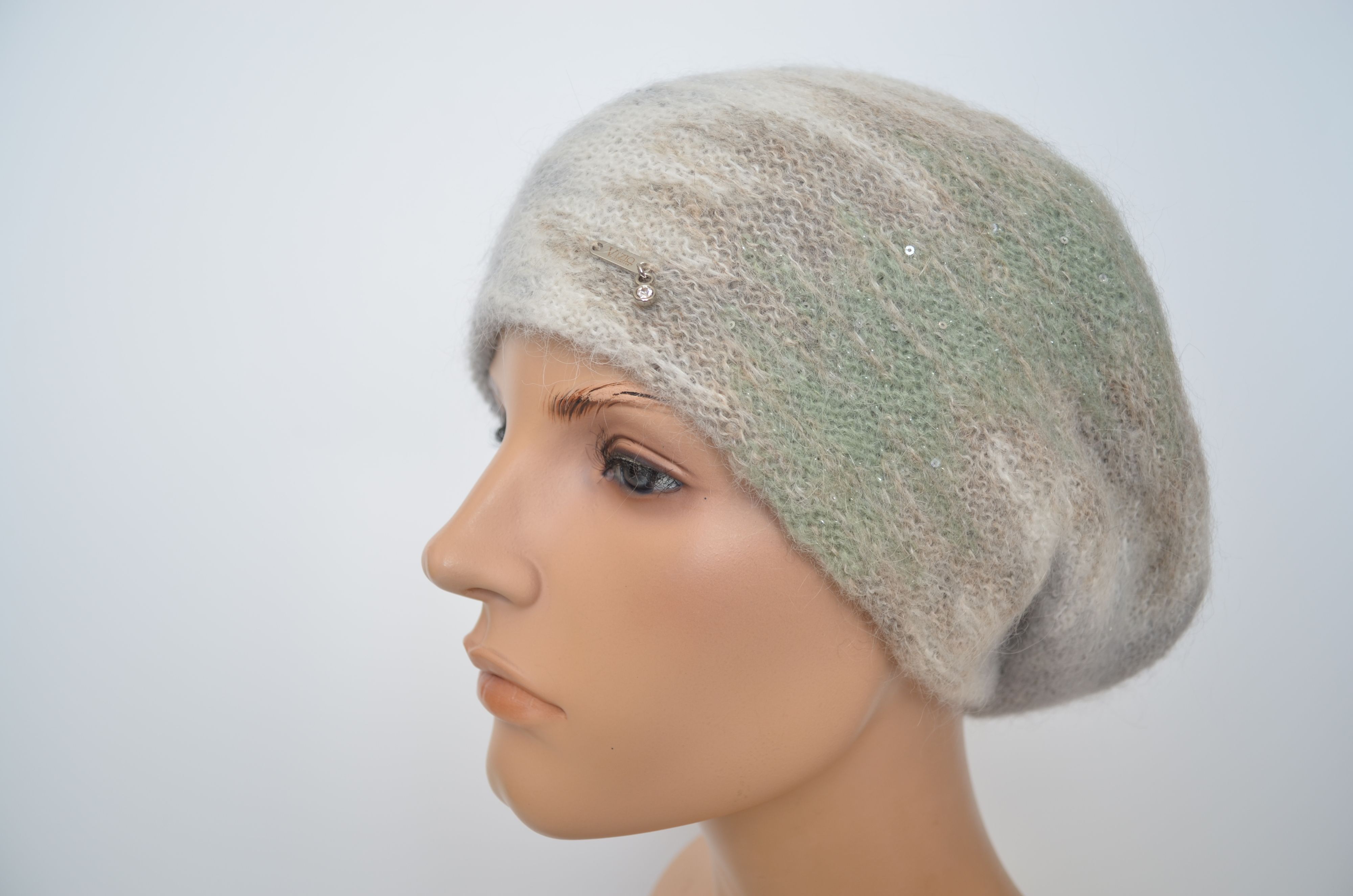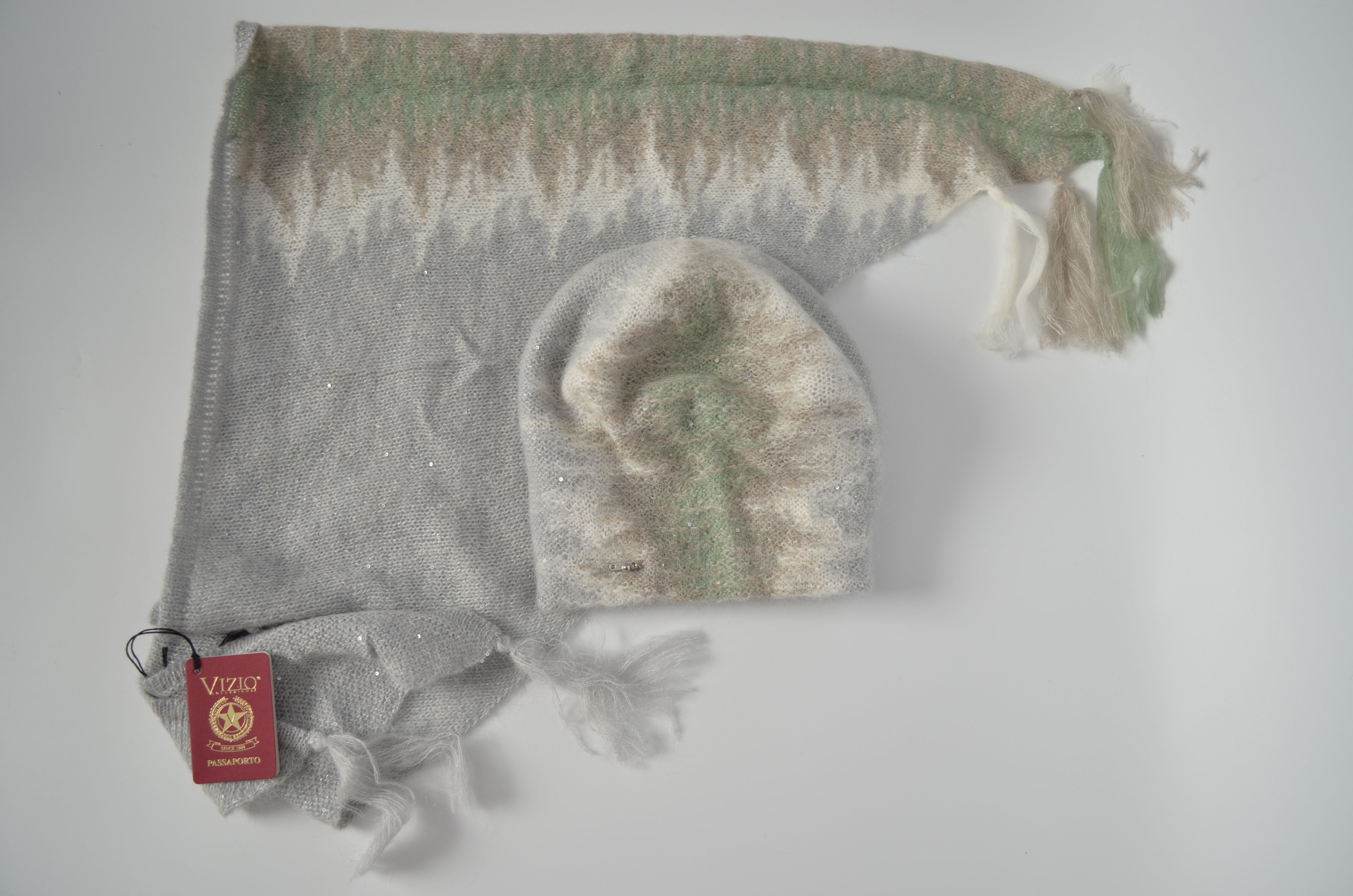 Вязаный берет разноцветный серый Италия Vizio 1643 из новой коллекции итальянских беретов и шапок Vizio Collezione осень зима 2025 - 2026