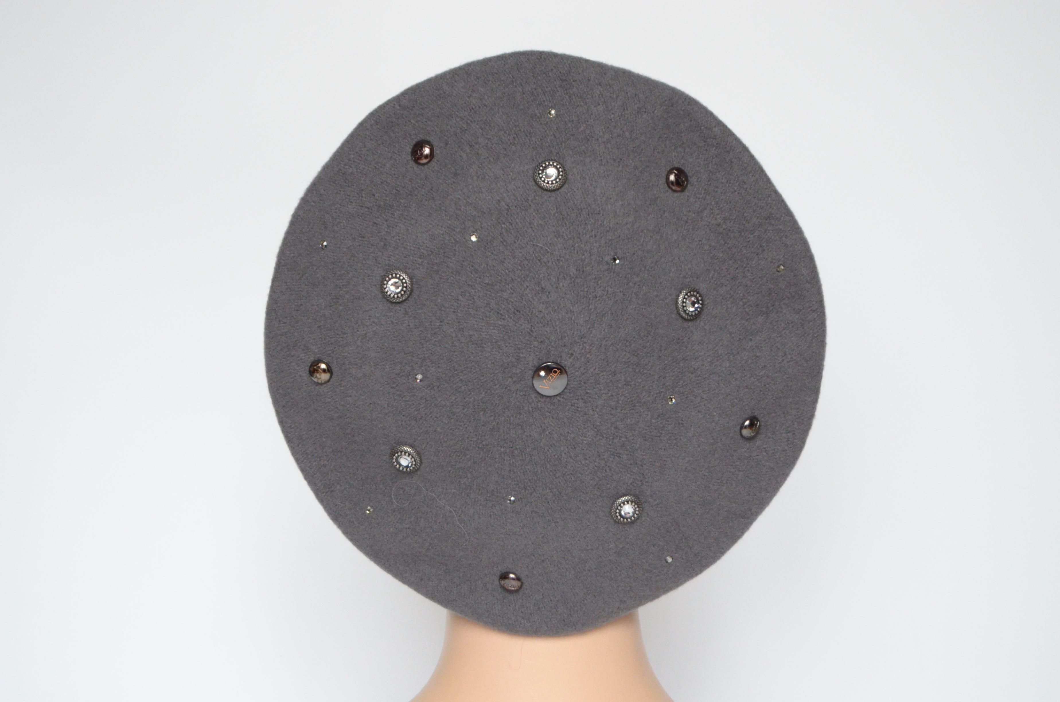 Берет серый фетр для женщин Италия Vizio 3633 в интернет магазине итальянских головных уборов для женщин от дизайнера модных беретов Vizio Collezione