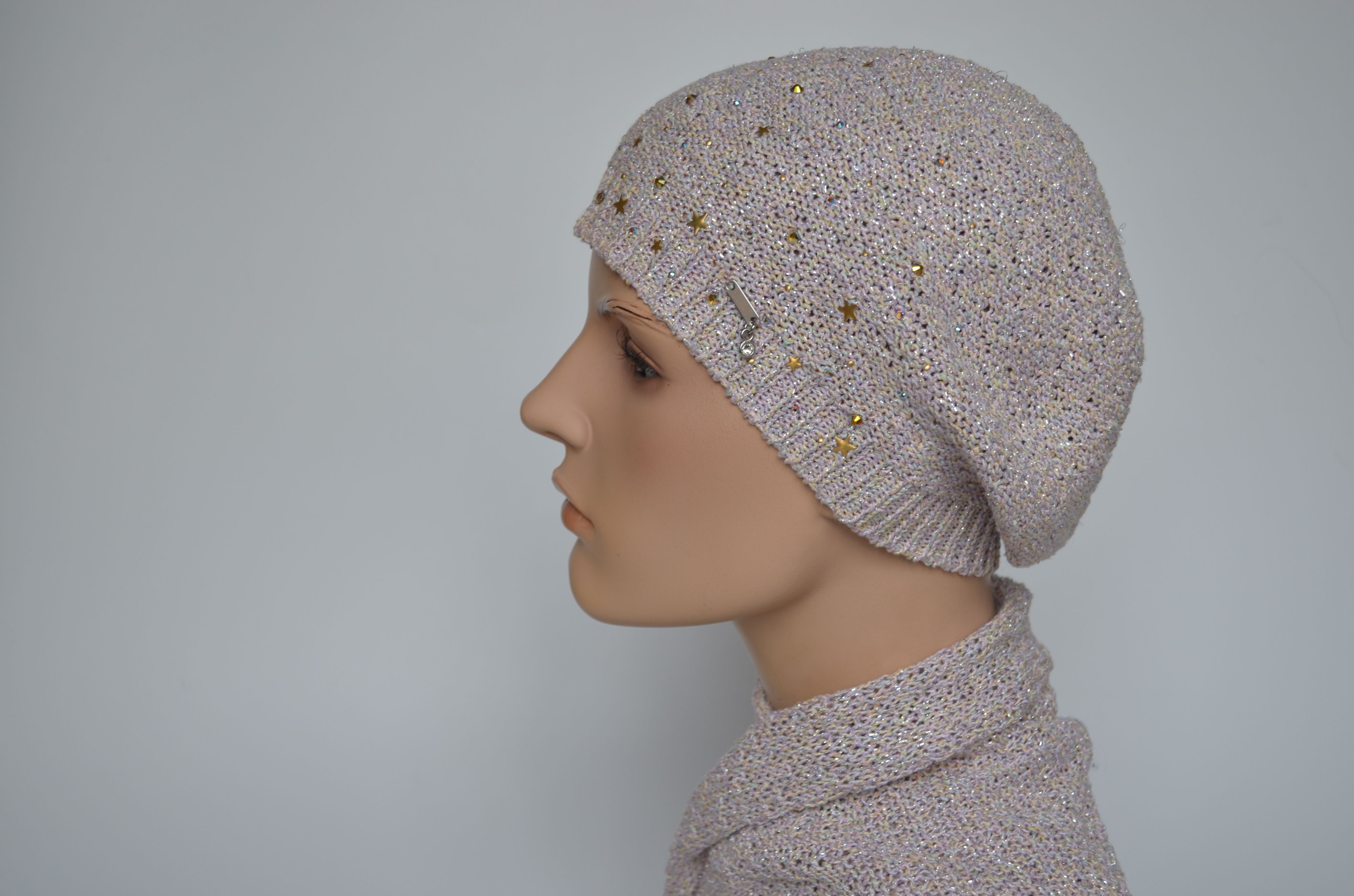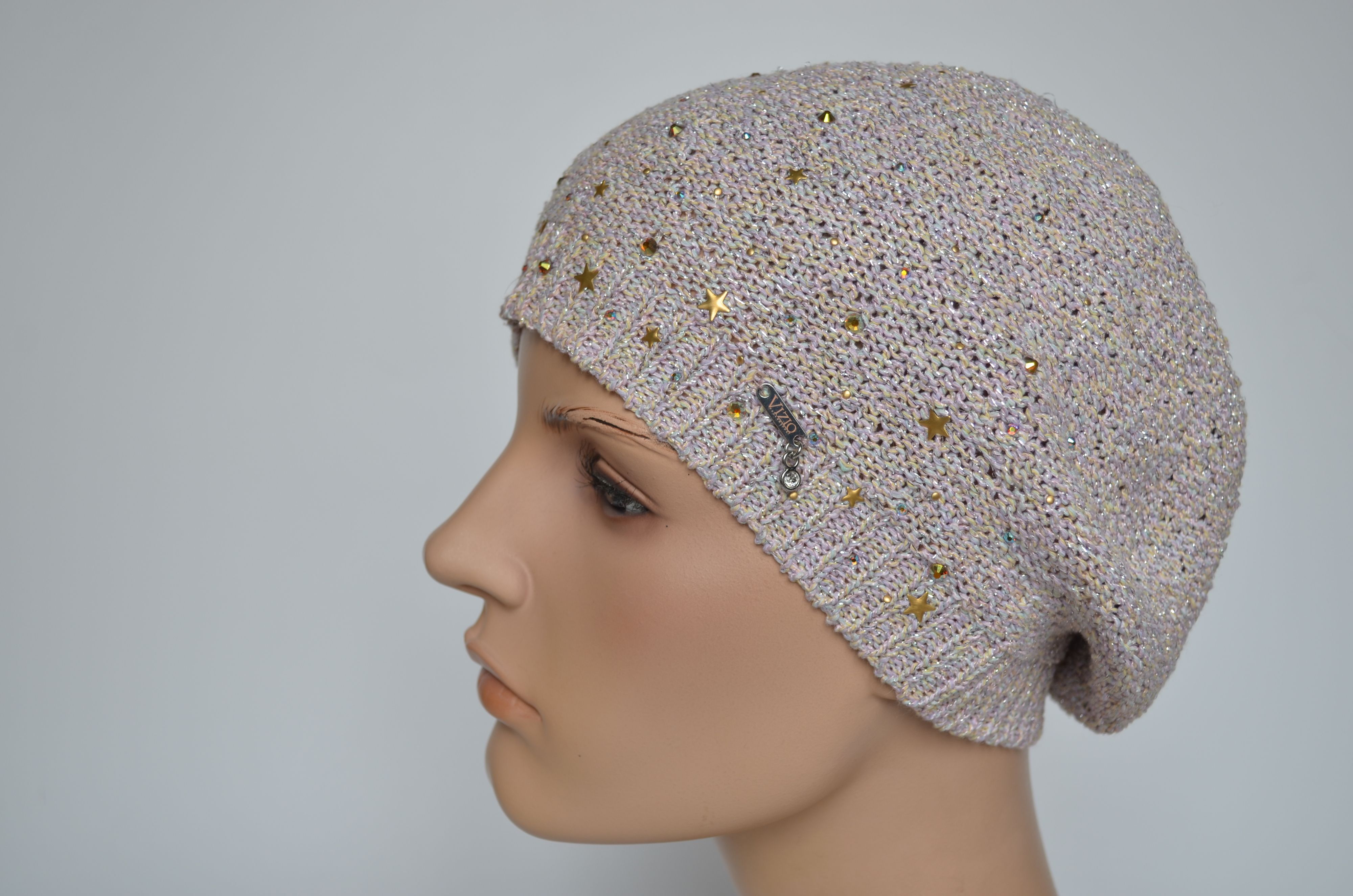 Итальянский вязаный комплект берет и шарф платок на весну - лето - осень Vizio 1218 BO и шарф ST розового цвета . Вязаный хлопковый однослойный берет и шарф для женщин купить в интернет магазине головных уборов Италии Вицио с доставкой по Москве и России