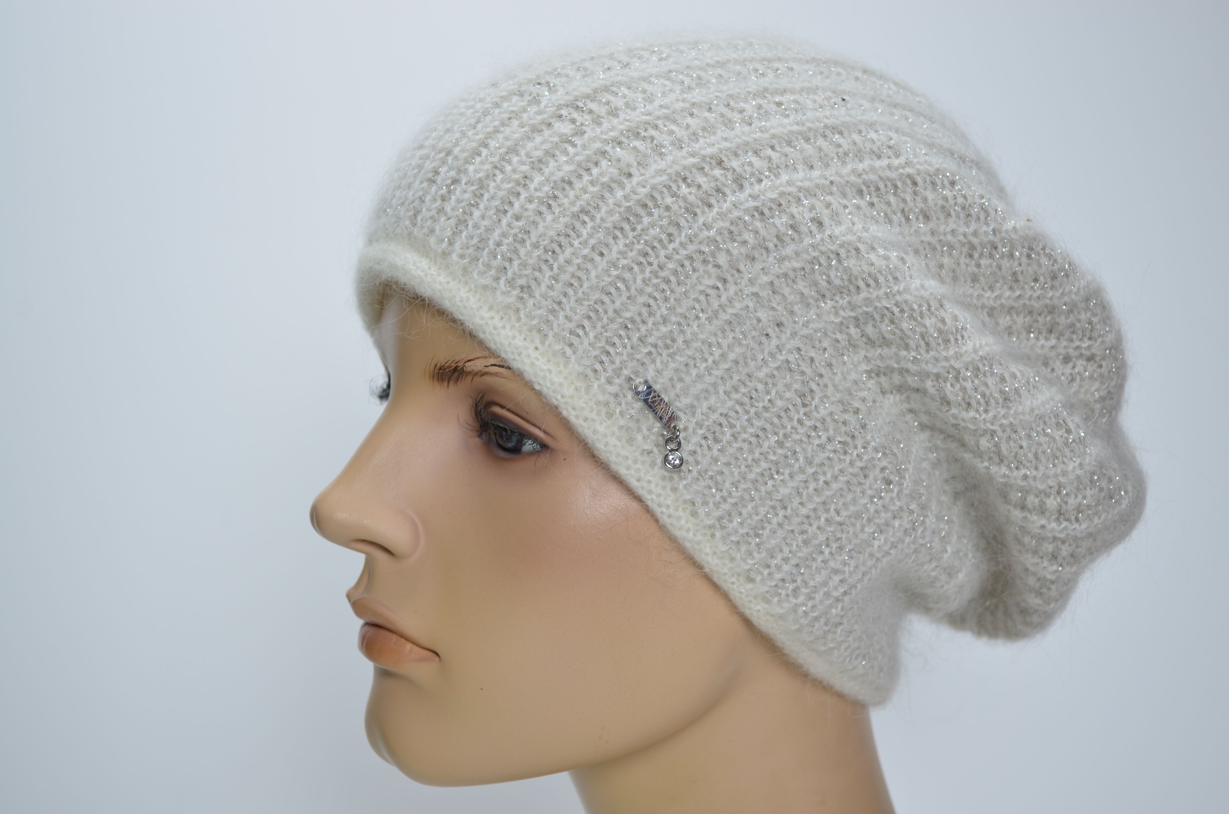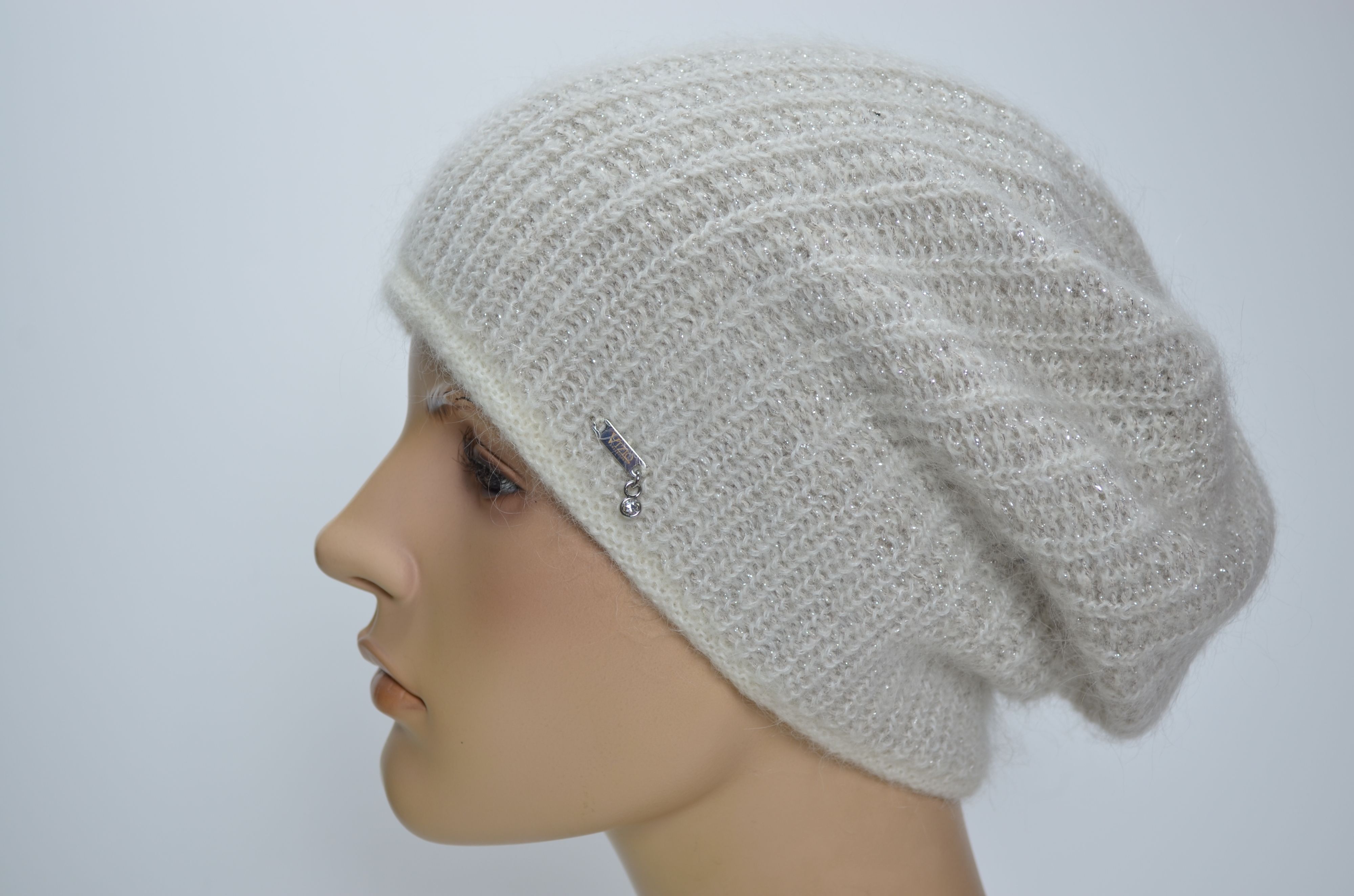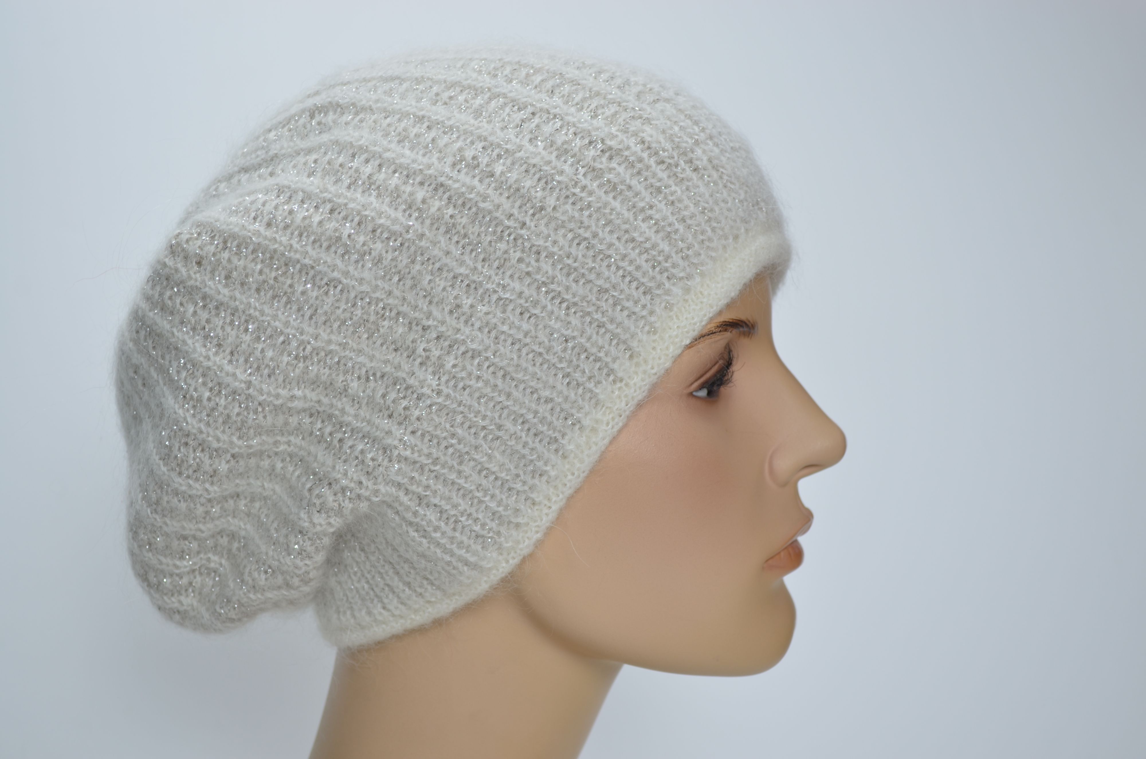 Вязаный берет из мохера и шерсти альпака зимний женский белого цвета