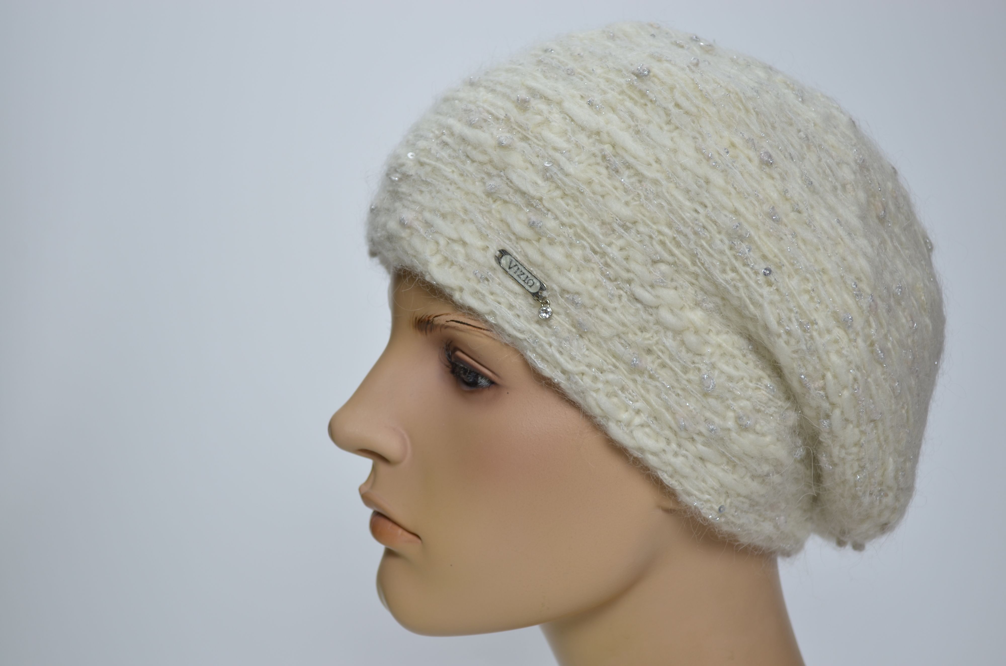 Вязаный зимний берет женский белый из мохера и шерсти альпака осень зима 2024 2025 Vizio Италия 1327 новая коллекция головных уборов Vizio Collezione купить в интернет магазине