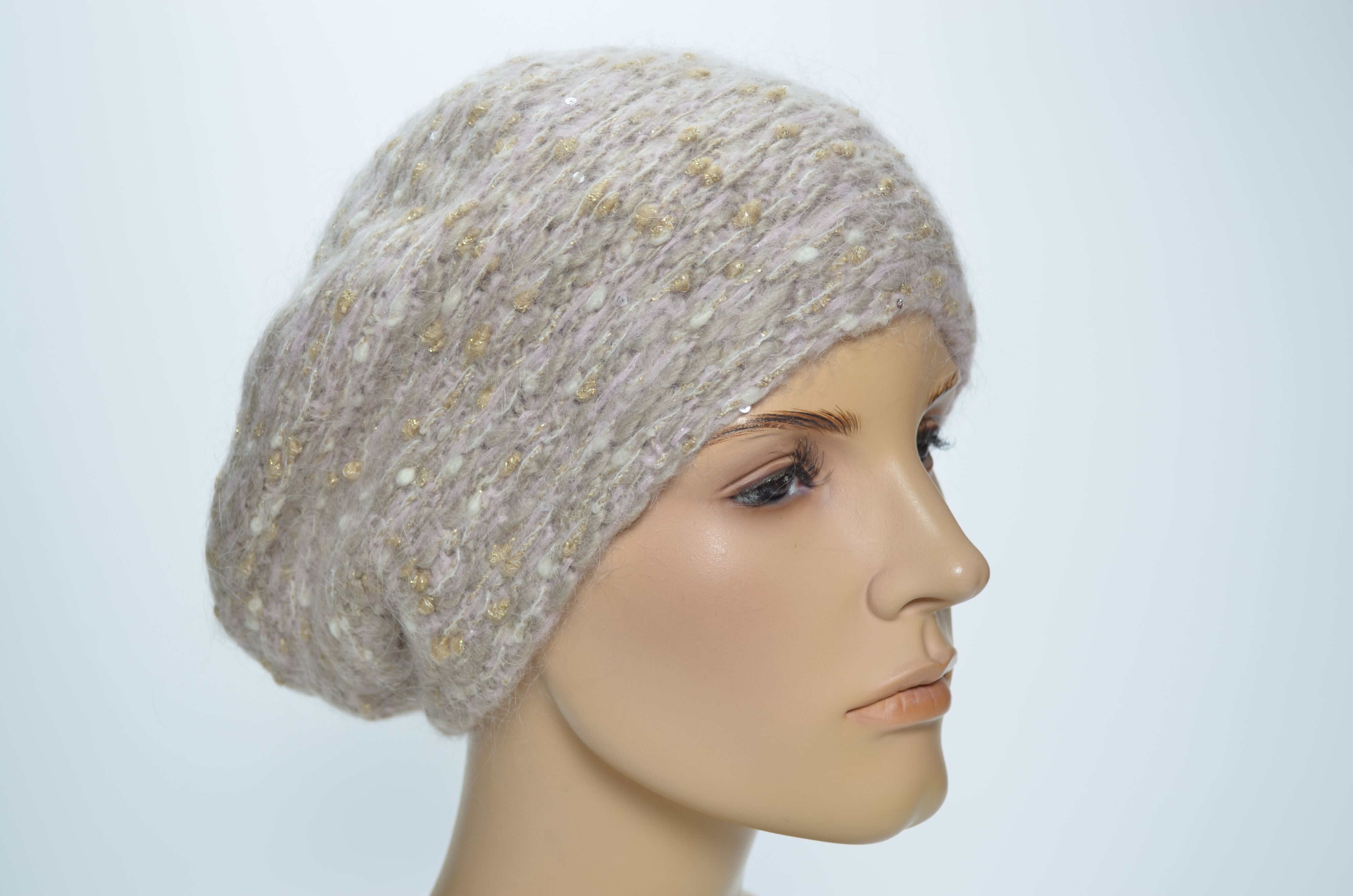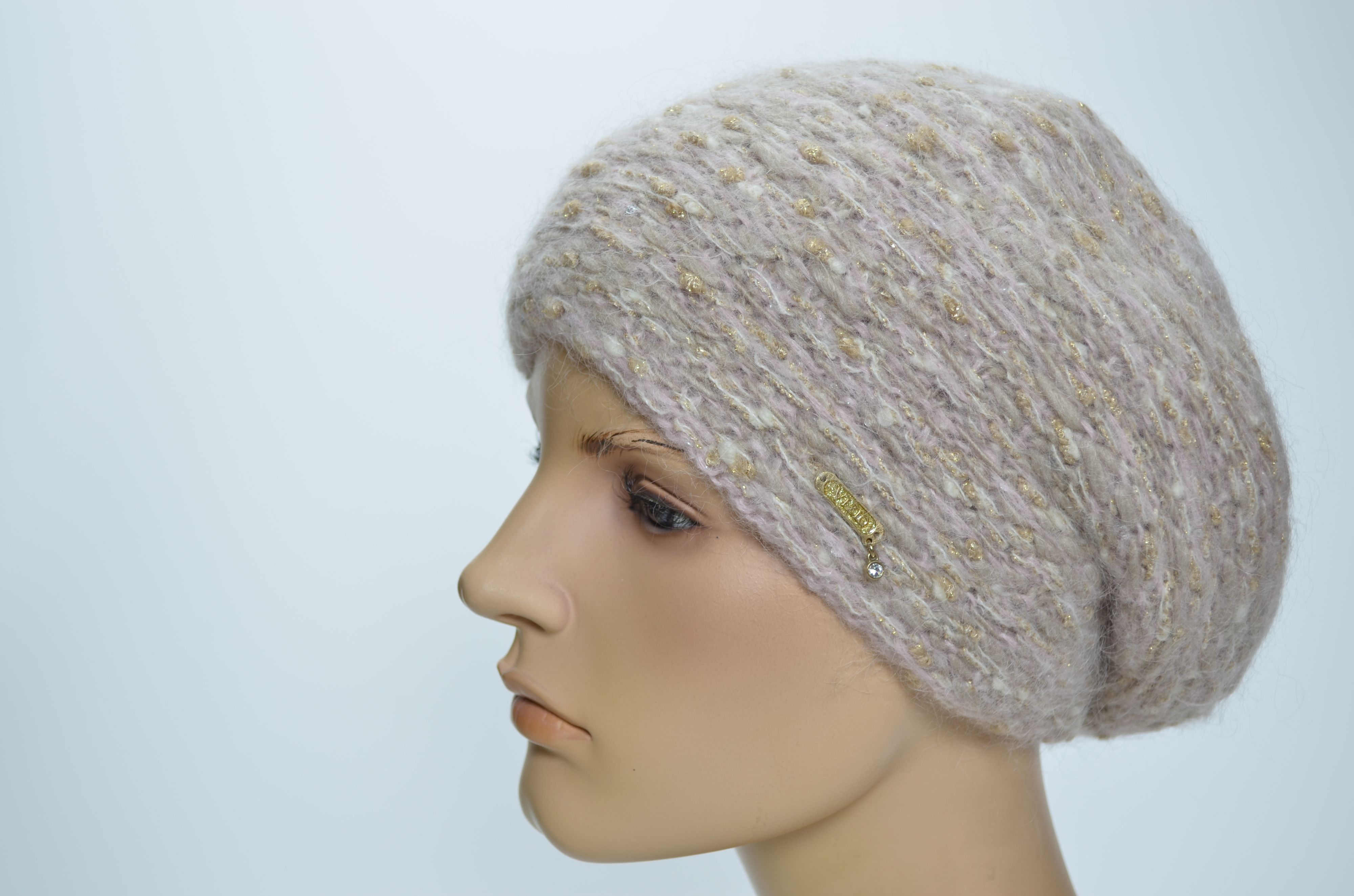 Вязаный зимний берет женский розовый с бежевым из мохера и шерсти альпака осень зима 2024 - 2025 Vizio Италия 1327 новая коллекция головных уборов Vizio Collezione купить в интернет магазине