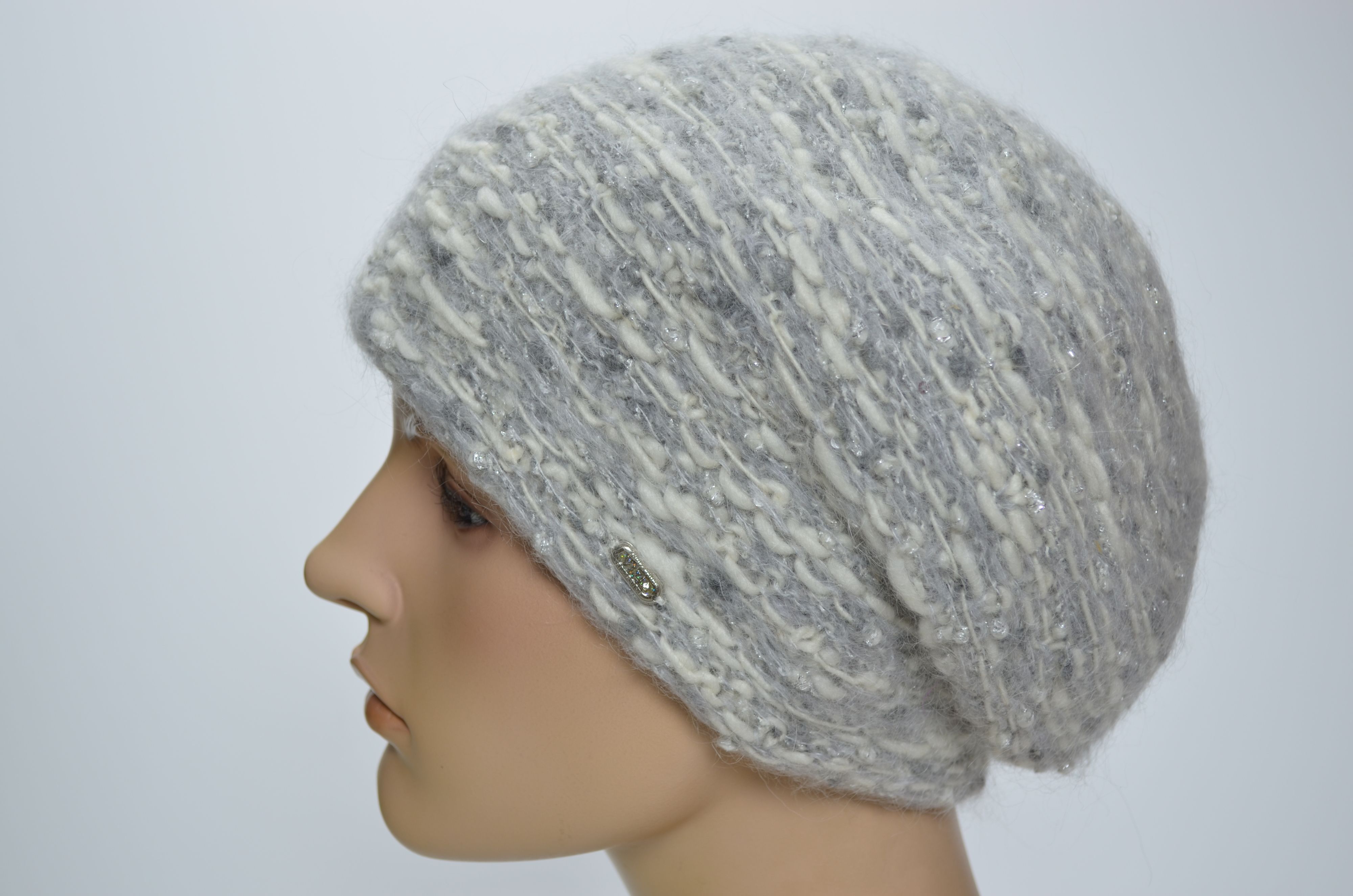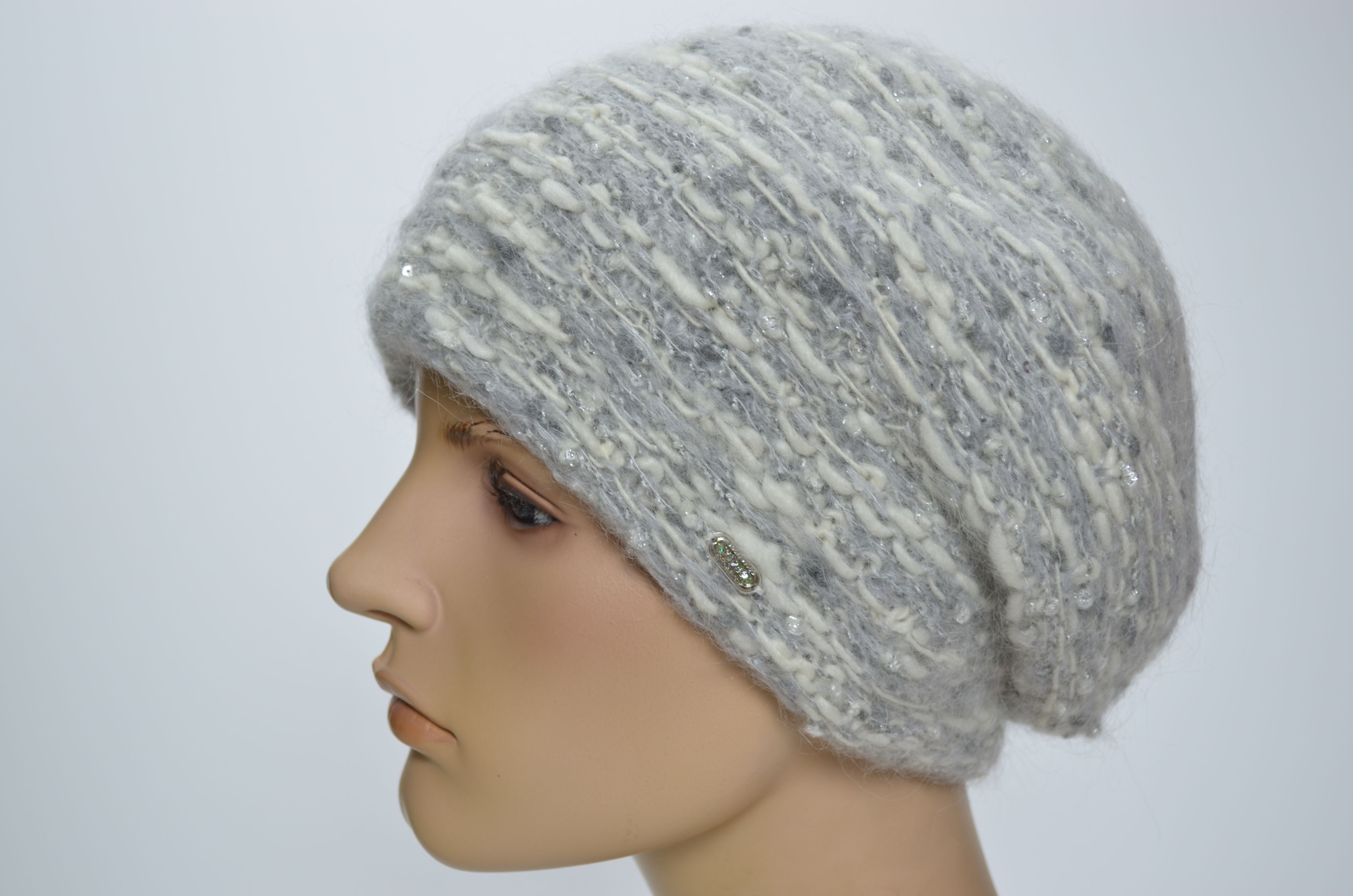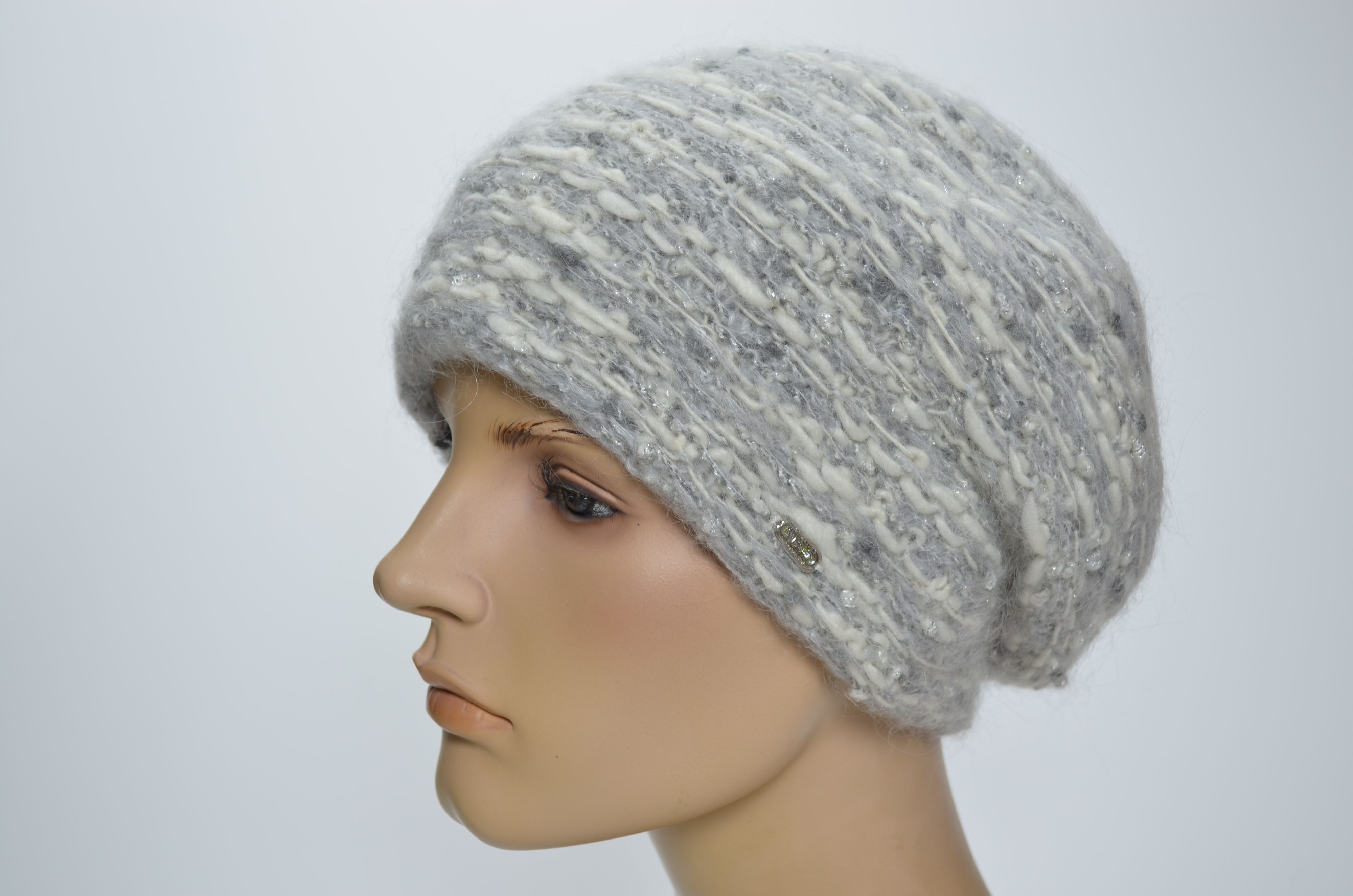 Вязаный зимний берет женский из мохера и шерсти альпака серого цвета Vizio Италия 1327 новая коллекция головных уборов Vizio Collezione 2024 - 2025 купить в интернет магазине