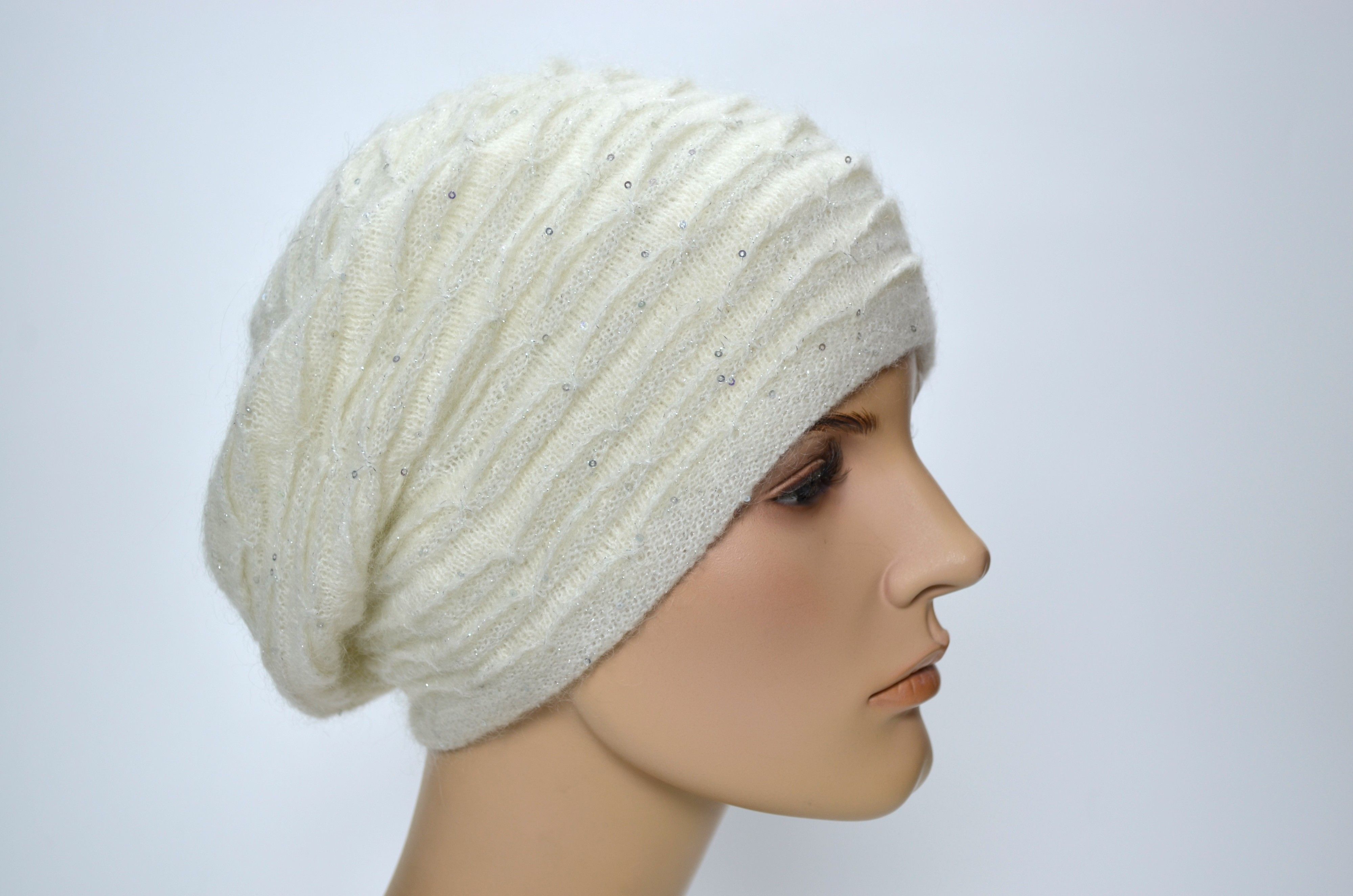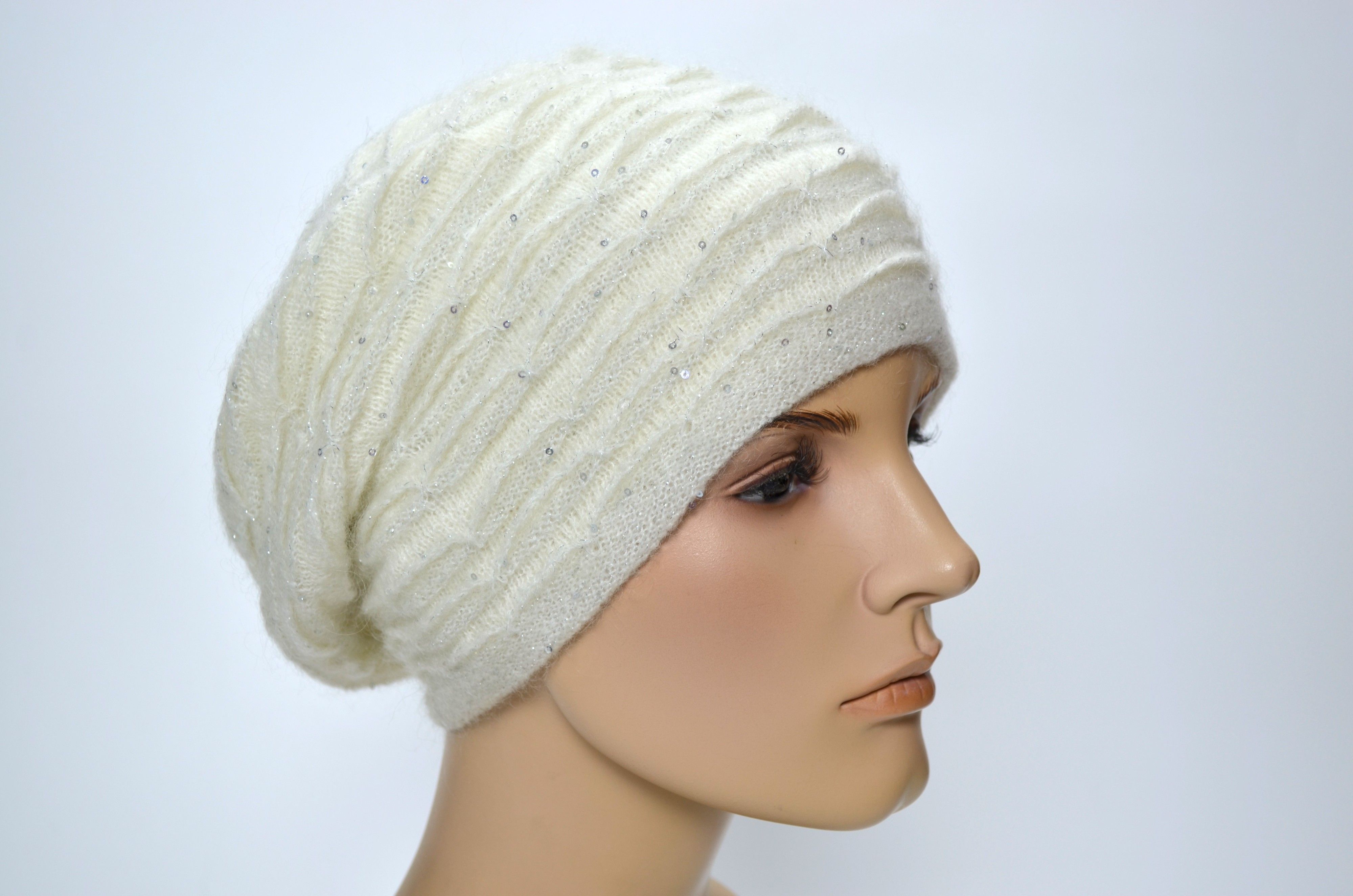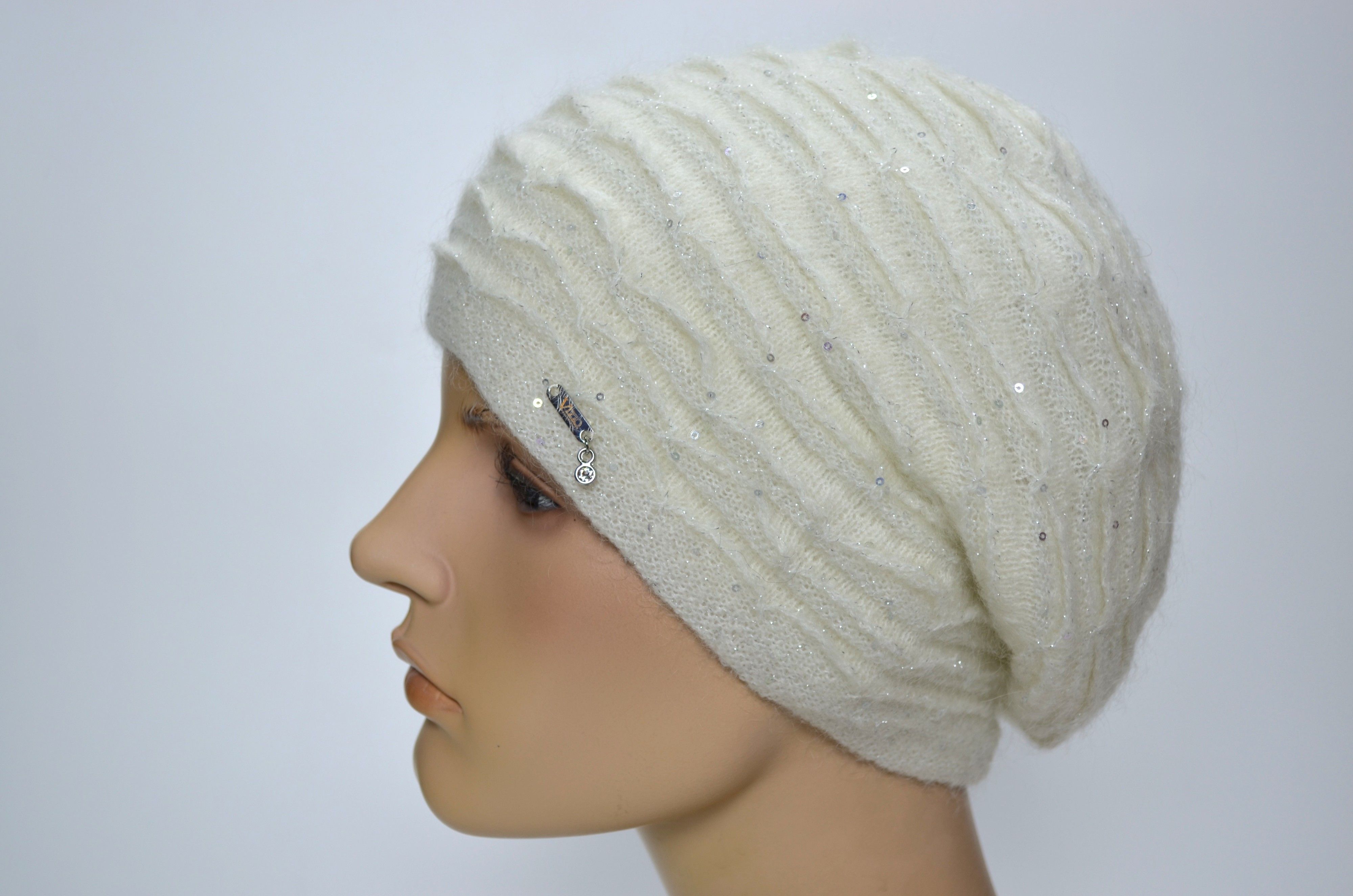 Зимний вязаный берет в полоску женский с пайетками Vizio Италия SS 1353 белого цвета купить из коллекции итальянских беретов и шапок Визио 2024 2025 в интернет магазине головных уборов, сумок и одежды Италии для женщин