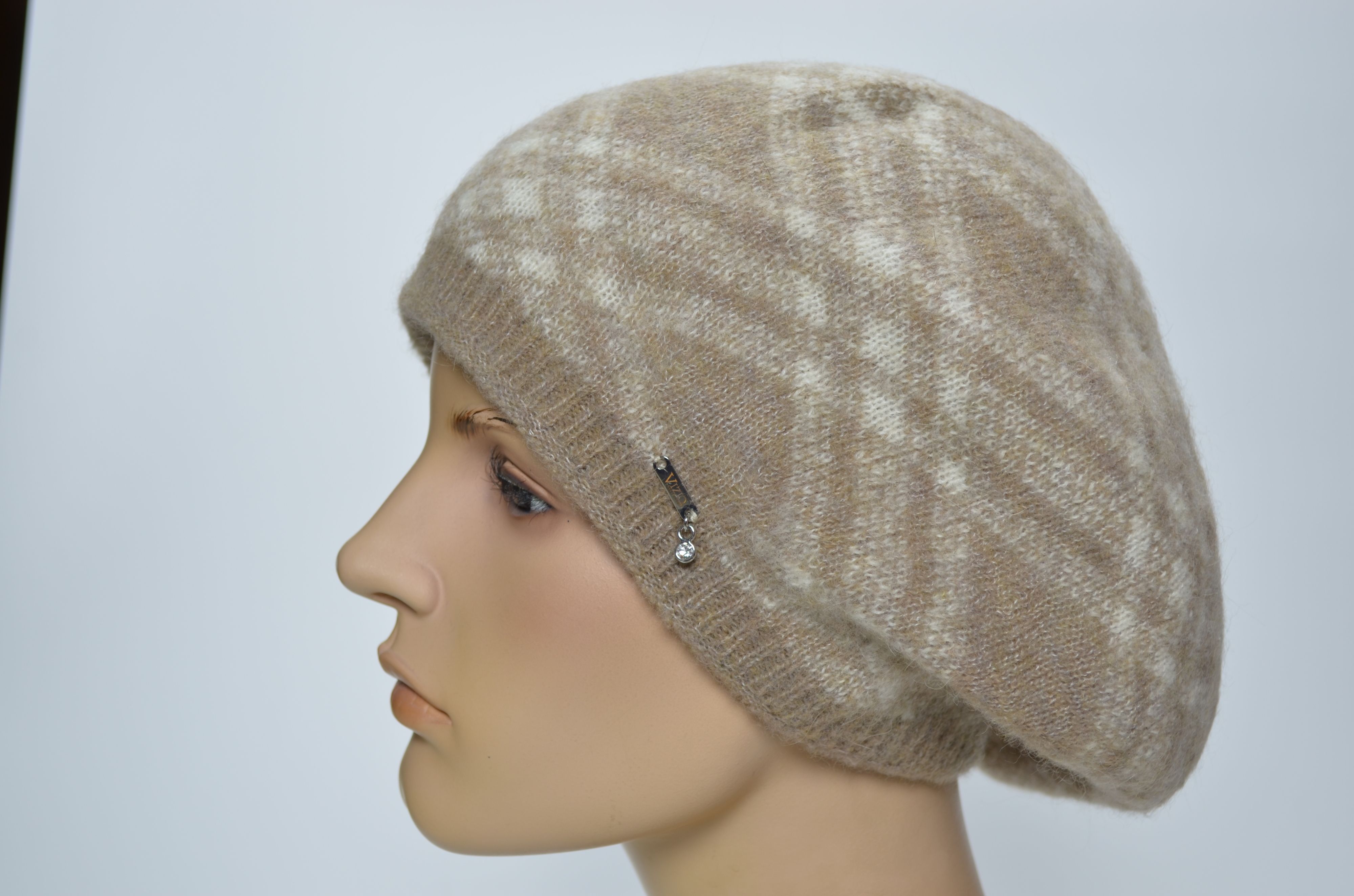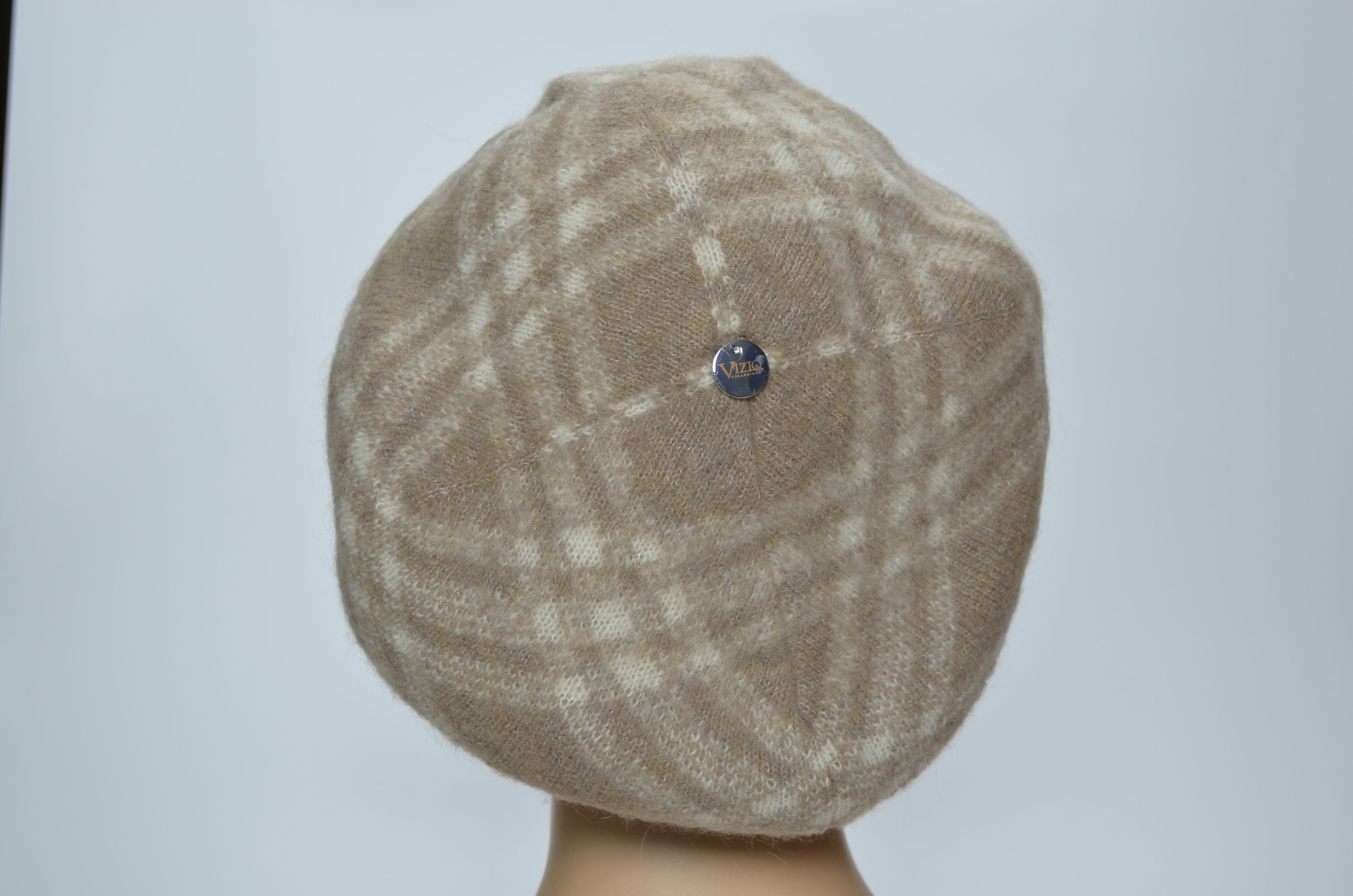 Клетчатый вязаный зимний берет из альпака осень зима 2024 2025 Vizio Италия 1420 бежевого цвета купить в интернет магазине женских головных уборов