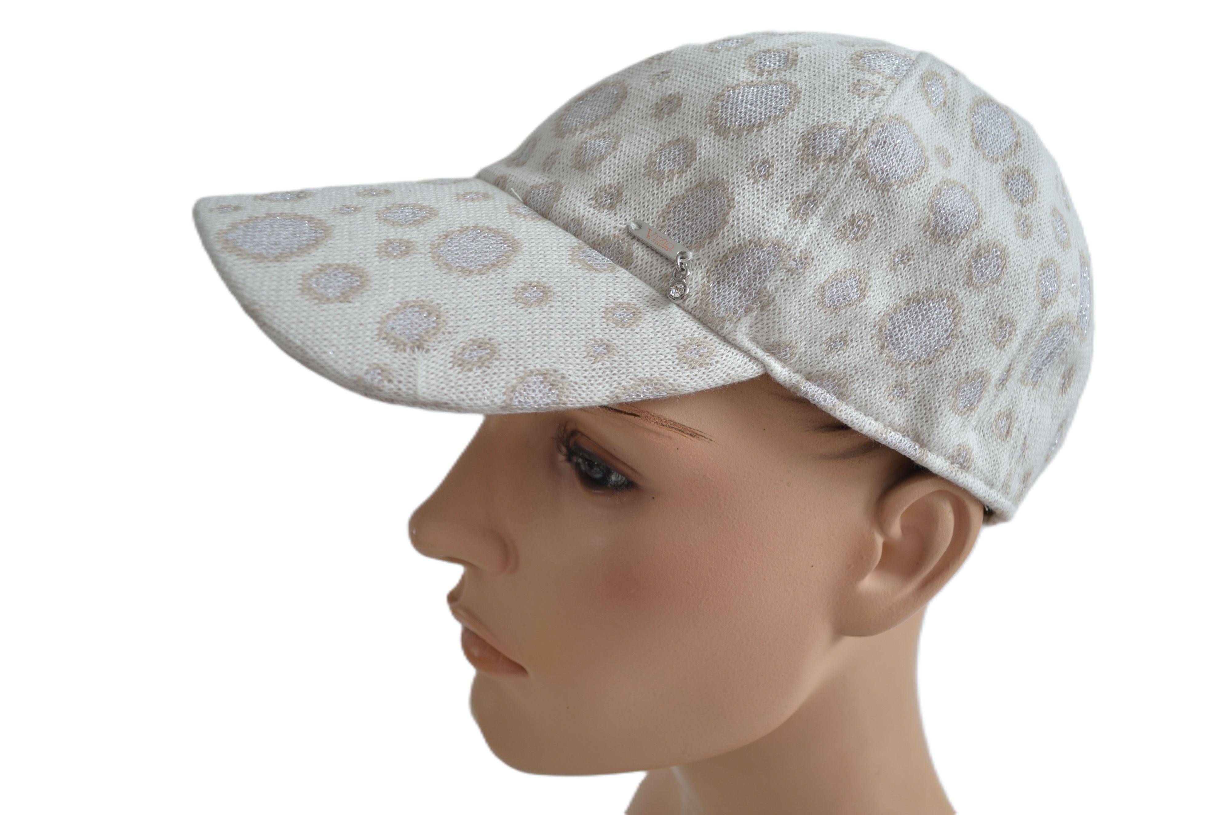 Летняя итальянская женская бейсболка вязаная весна лето осень 2025 Vizio Италия SS 1511 V белого цвета коллекция итальянского бренда вязаных бейсболок и кепок для женщин Vizio Collezione. Размер бейсболки регулируется