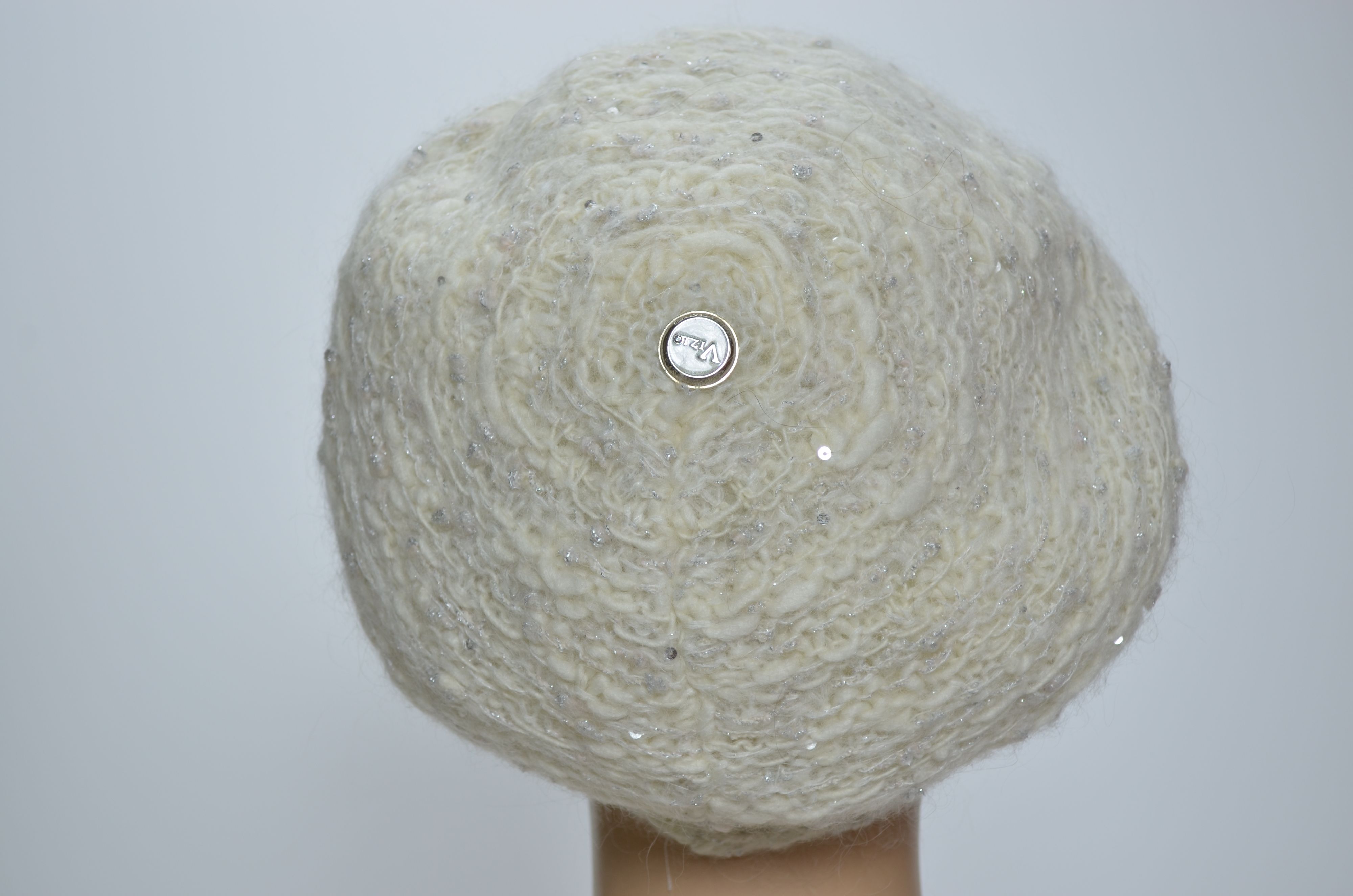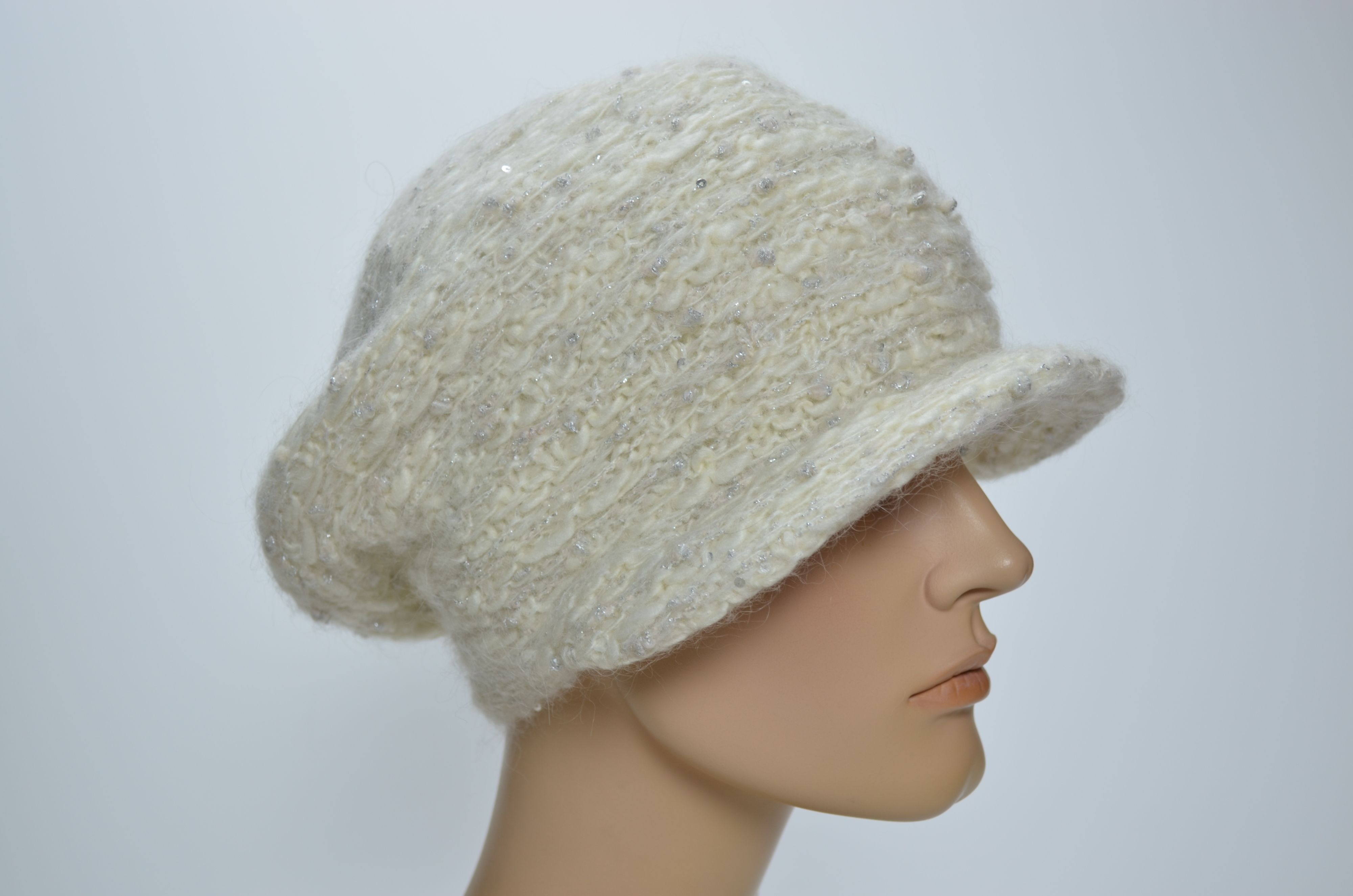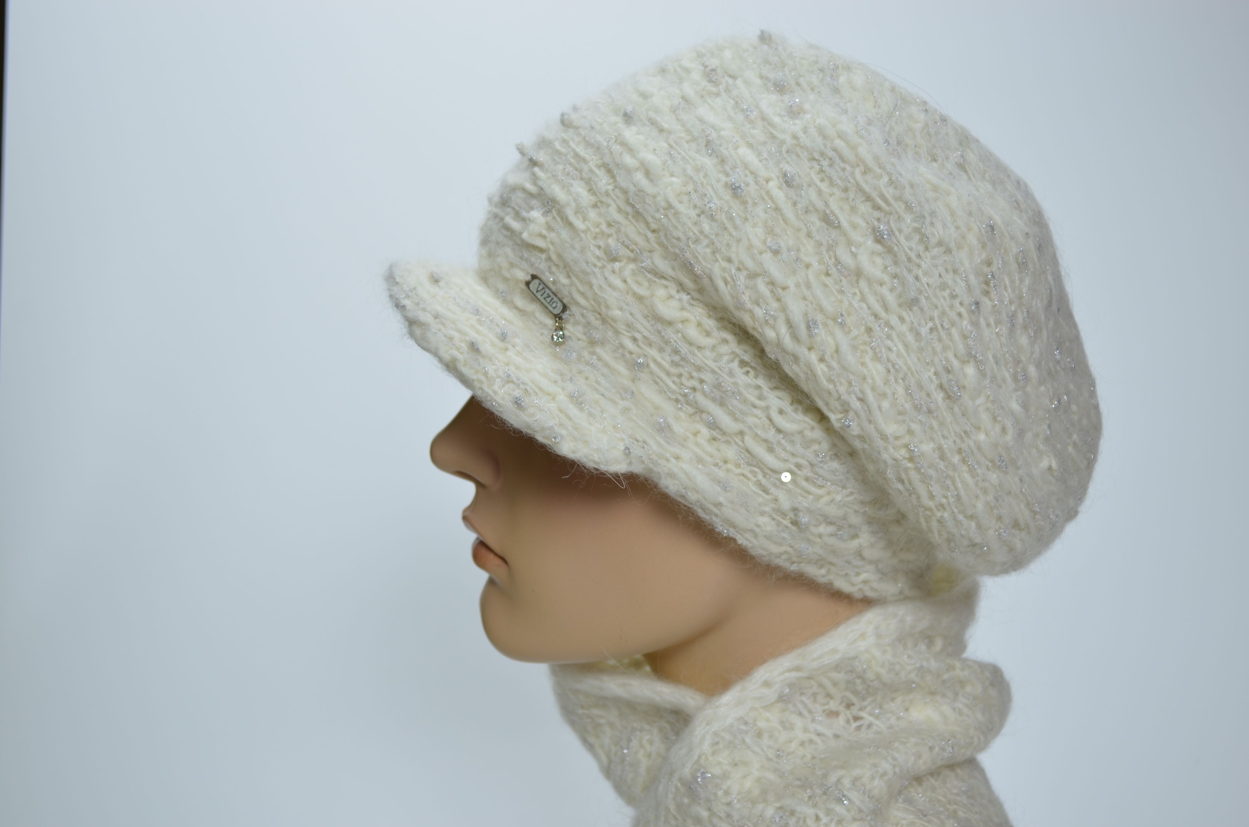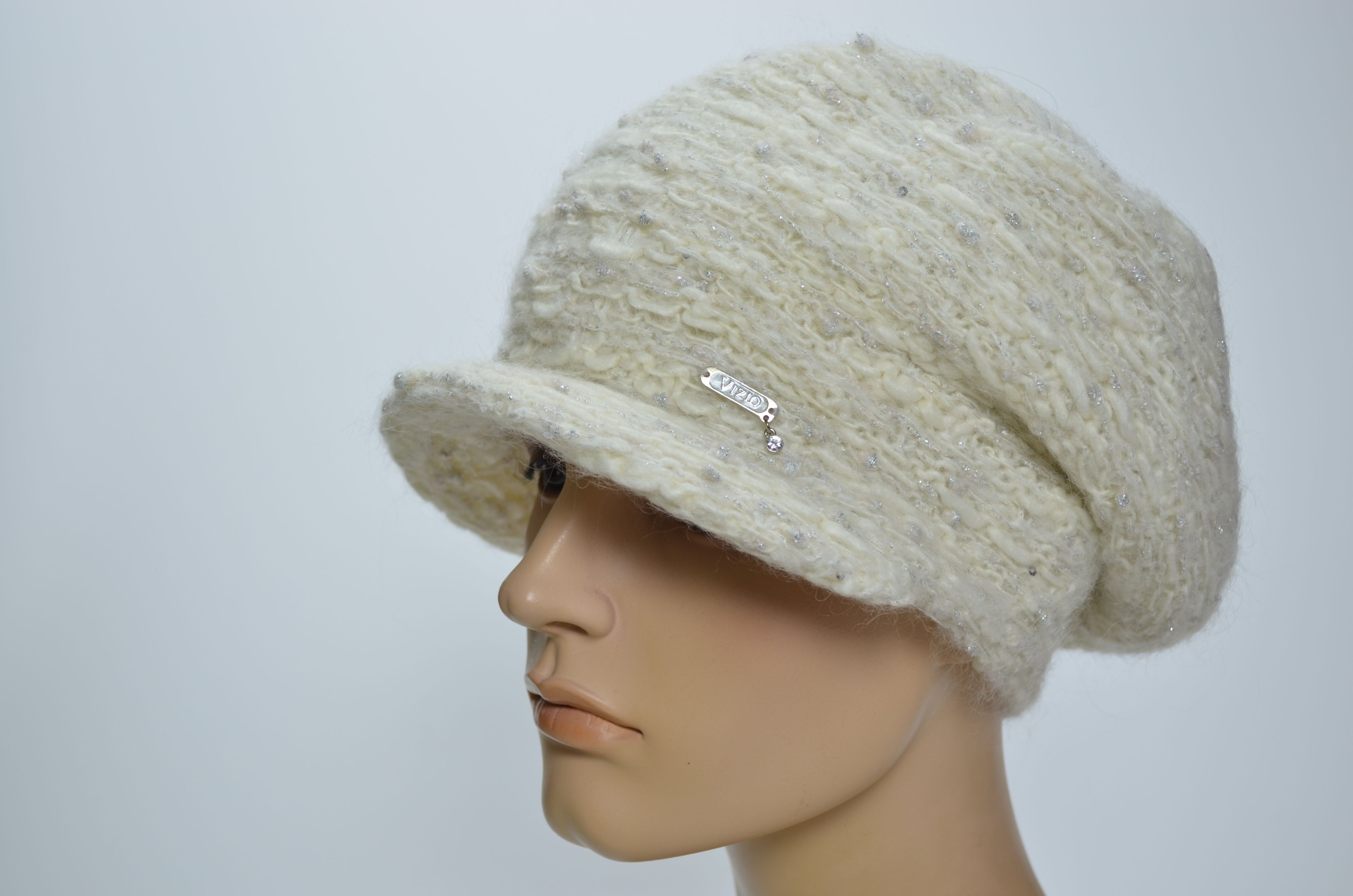 Женская кепка зимняя шерстяная вязаная из шерсти альпака и мохера осень зима 2024 2025 Vizio Италия 1327 W белого цвета купить в интернет магазине итальянских головных уборов