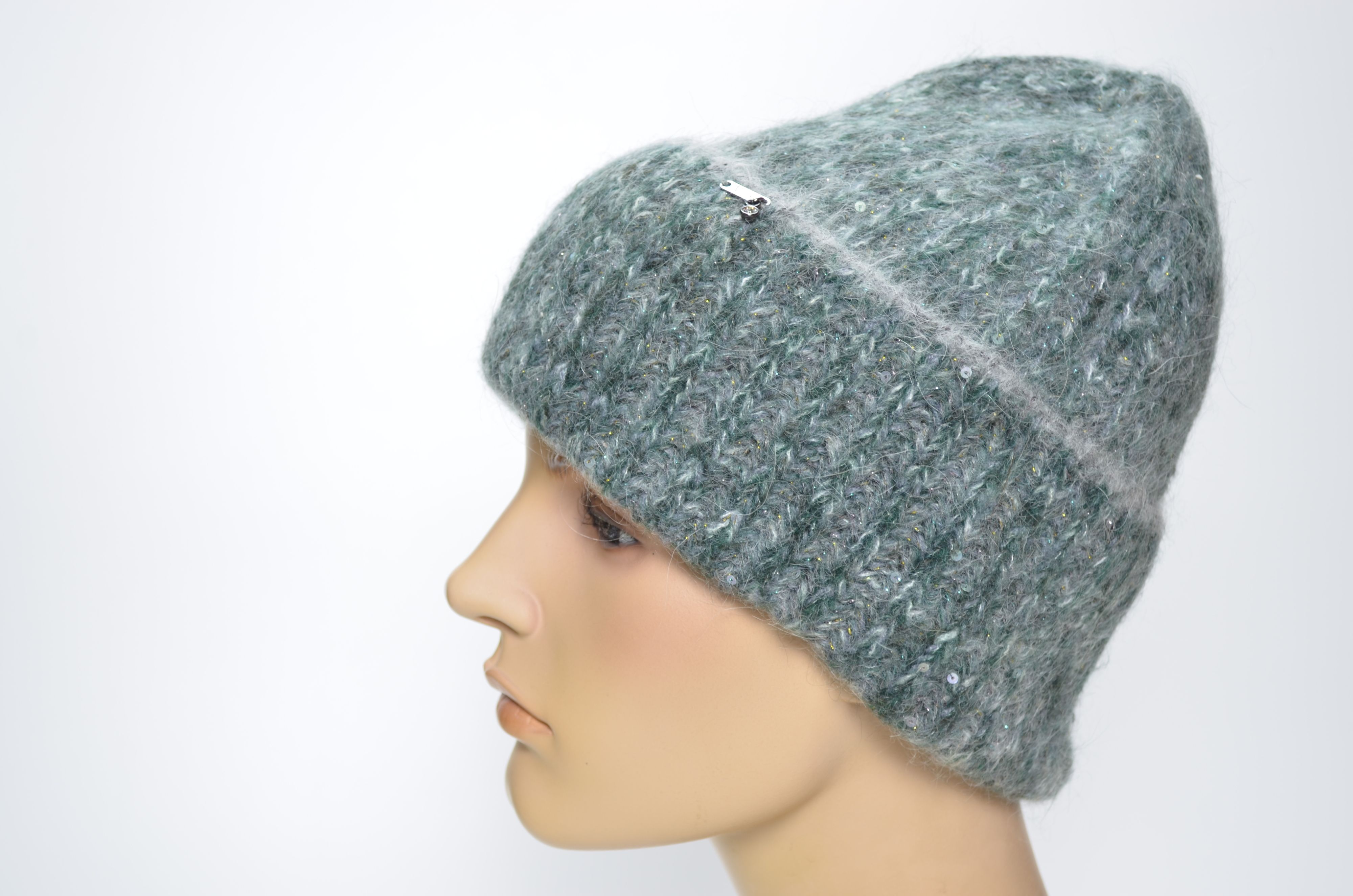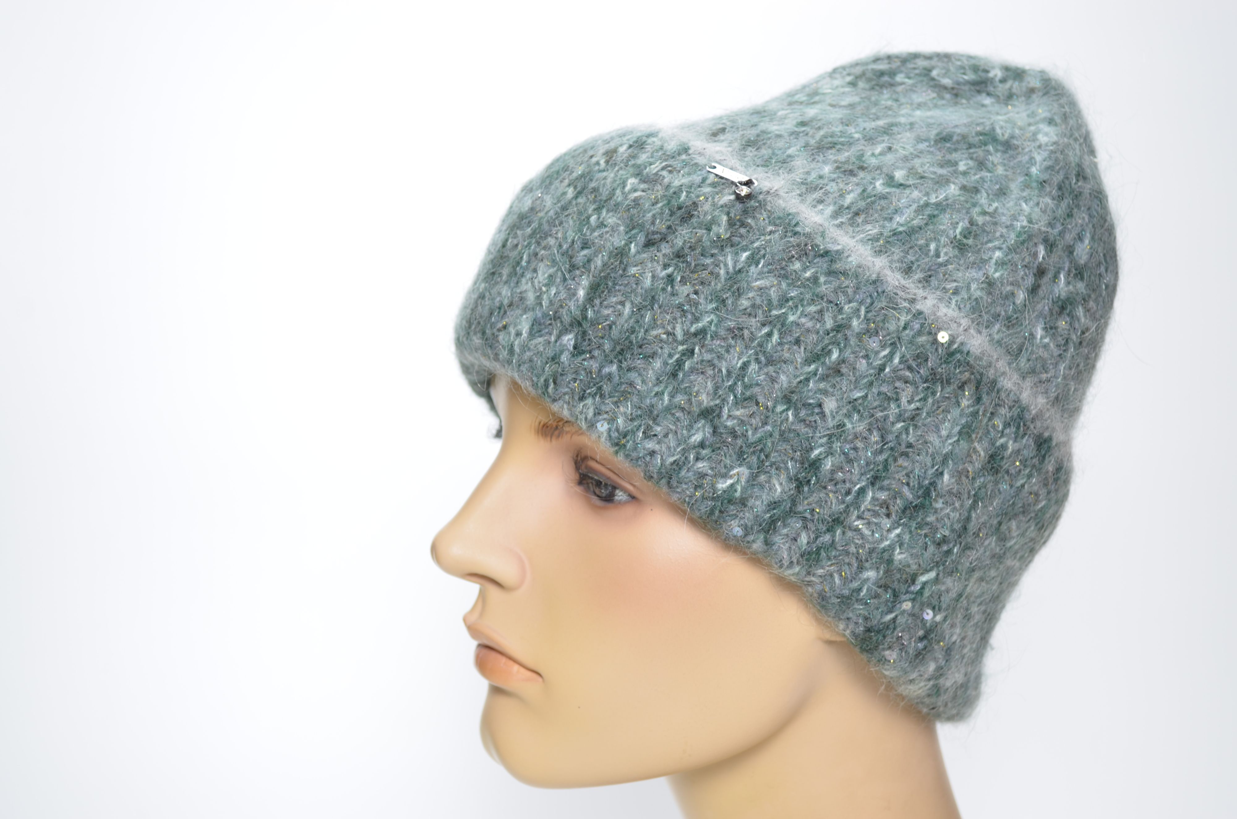 Серая женская шапка из мохера и шерсти альпака с отворотом Vizio 1326 купить из новой коллекции женских головных уборов Италии осень зима 2024 2025