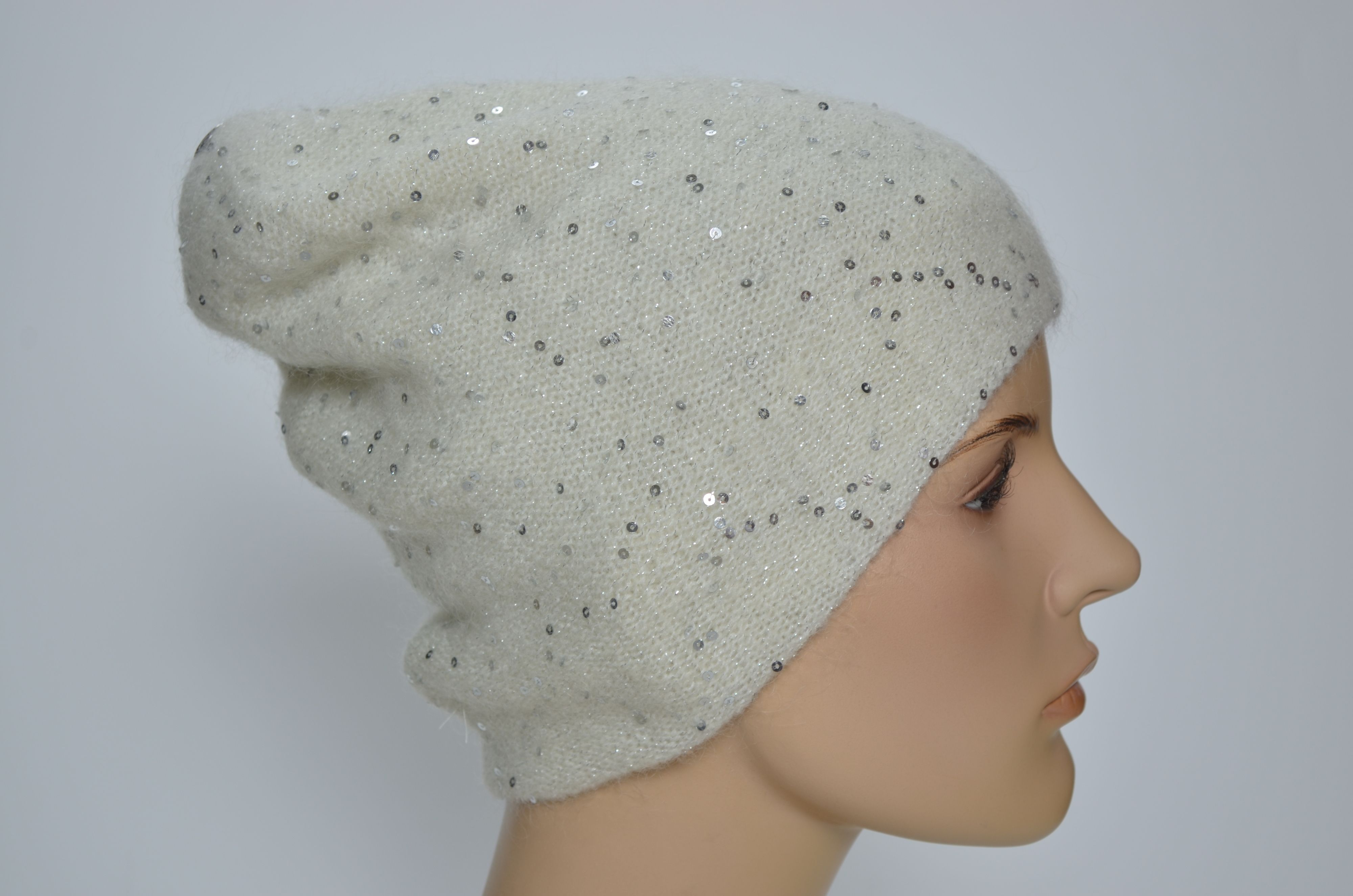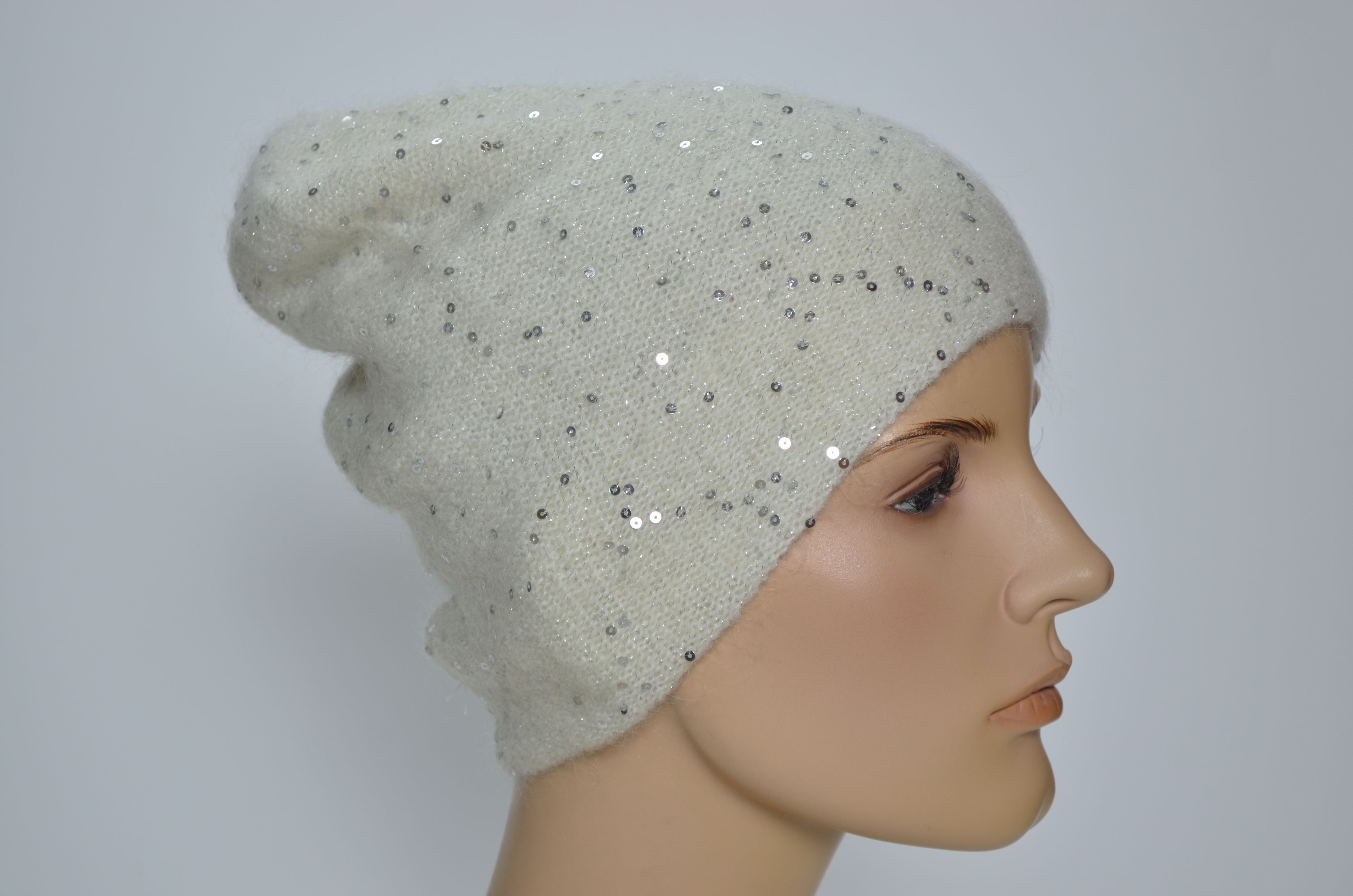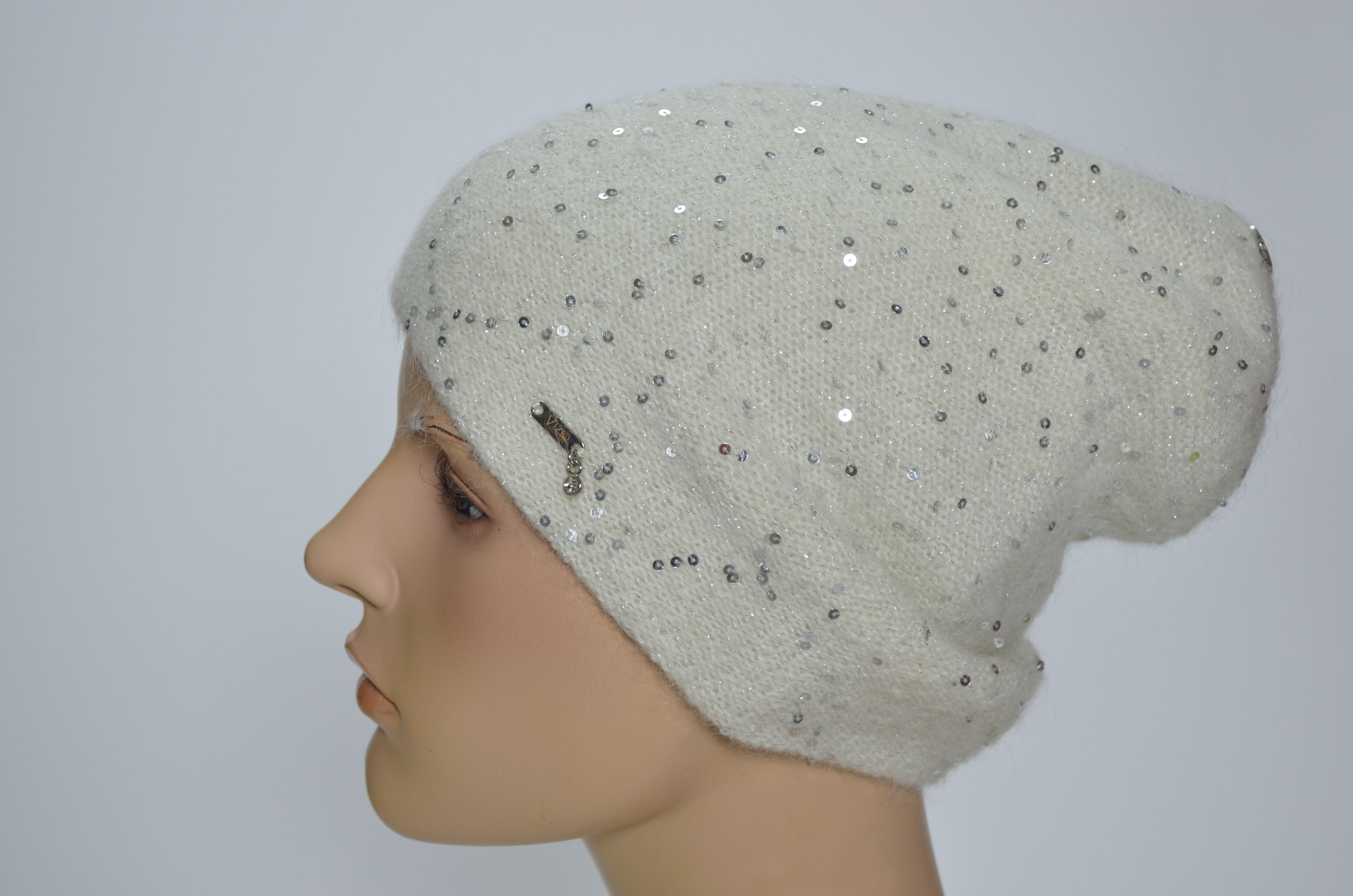 Зимняя белая шапка с пайетками осень зима 2024 2025